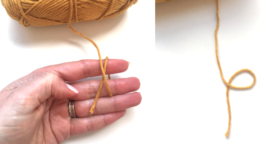 7) Pull tail end of yarn to tighten ring