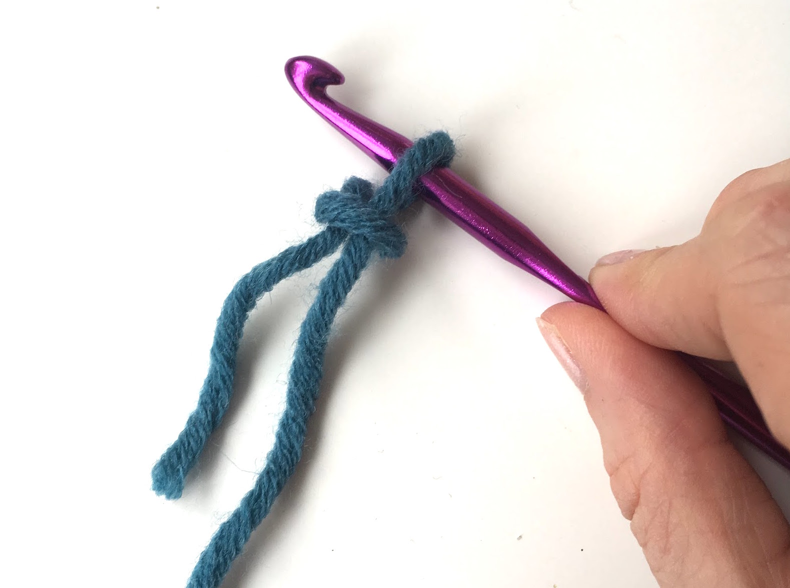 Once you have worked out how to hold your hook and yarn, you are ready to start to crochet! A slip knot is the starting point for most crochet projects, there are many ways to create a slip knot, here is an easy method: