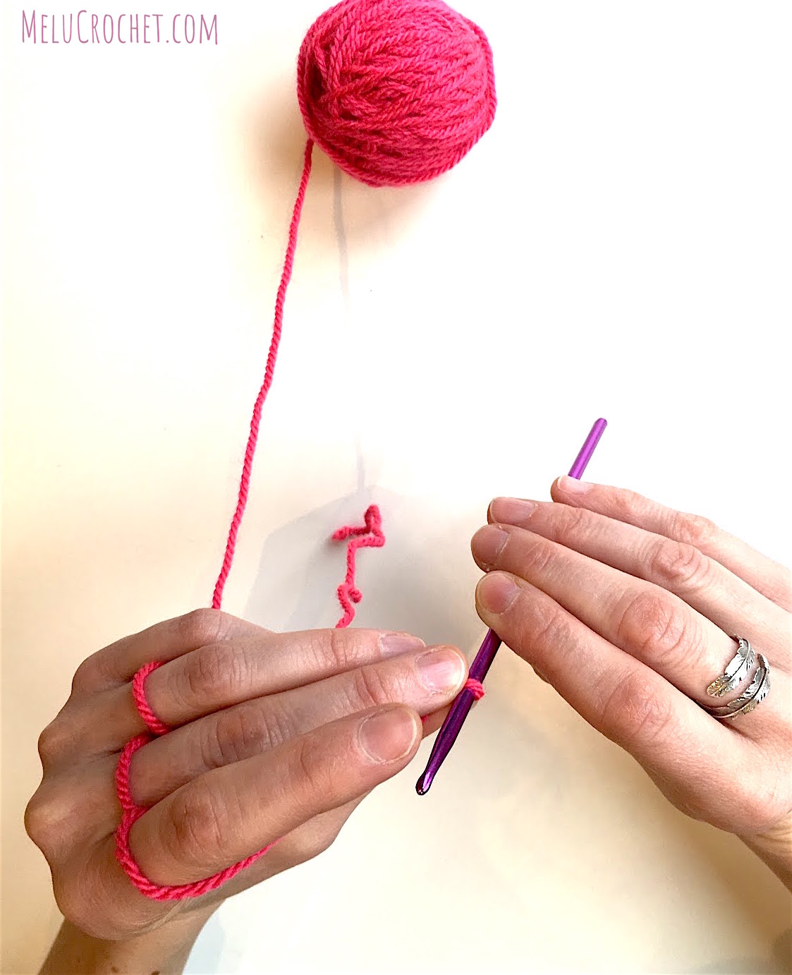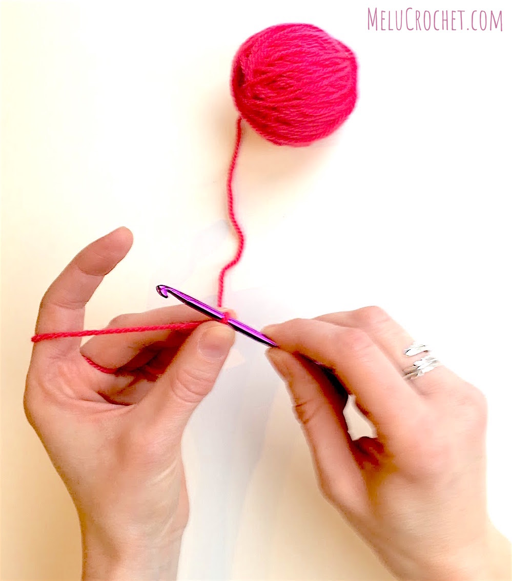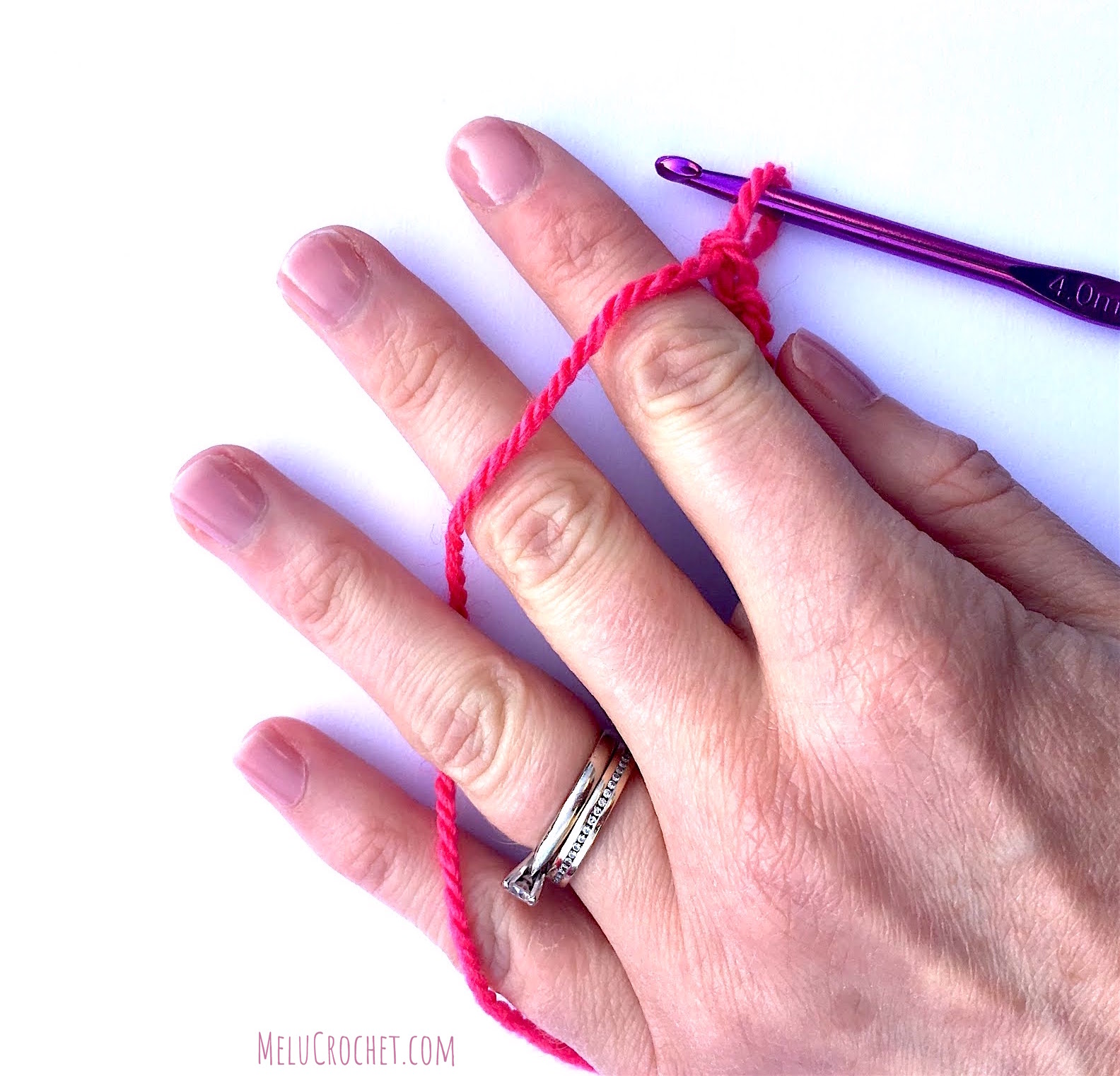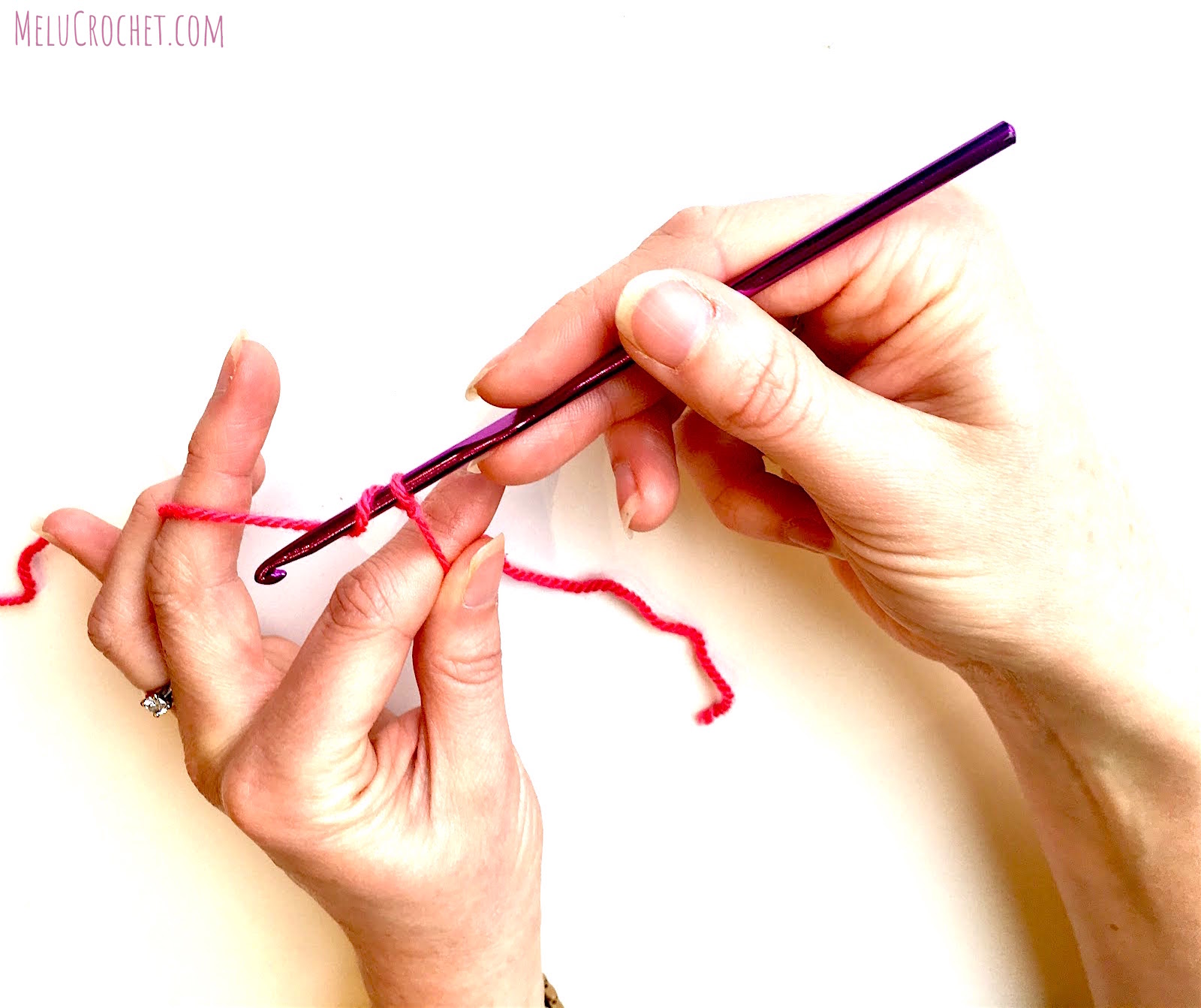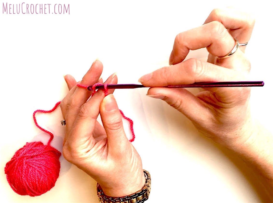 There are lots of ways to hold your hook: usually the predominant hand holds the hook while the other hand holds the slip knot