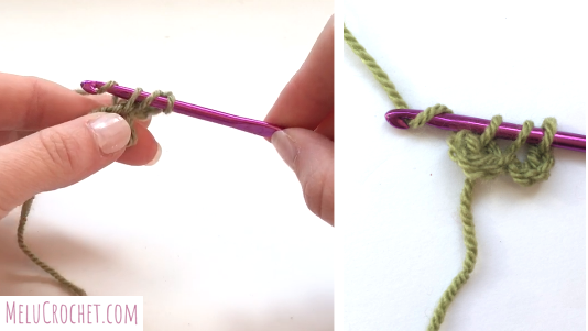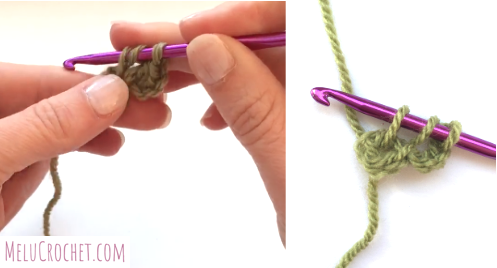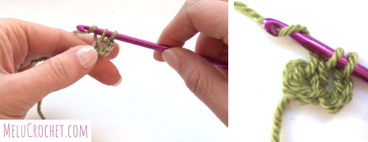 The Melu crochet guide has lots of help and photo tutorials to help you with your crochet including: treble crochet in rows, double treble crochet and how to crab stitch