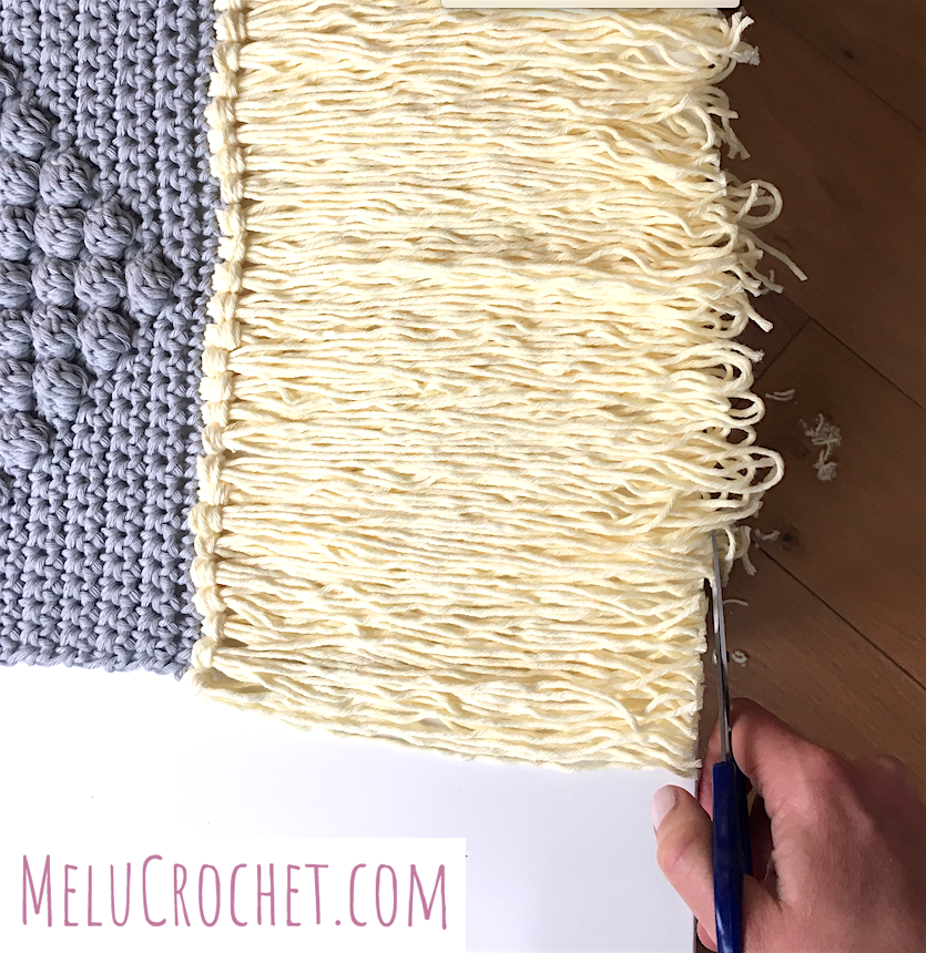trim the edges so that the tassels are the same length and so that the ends of all the loops are cut through