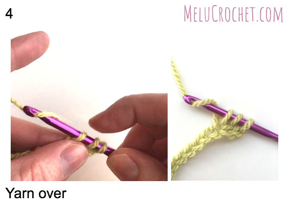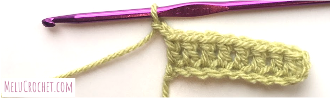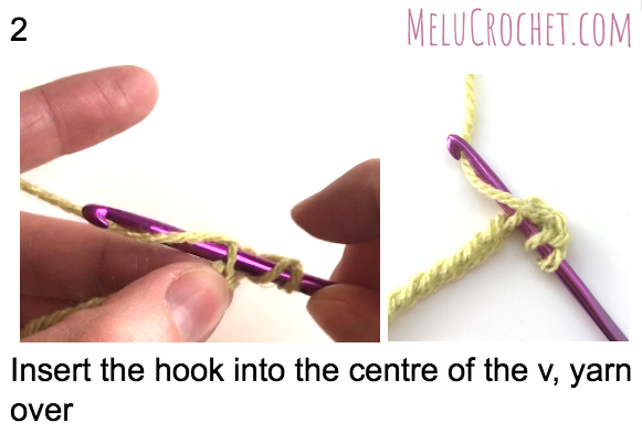 Complete your chain with the number of stitches given in your pattern, hold your chain on its side with the v’s facing you: