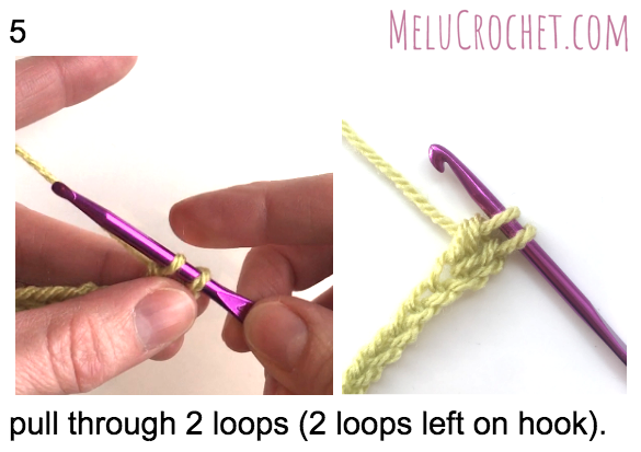When working your next and subsequent rows of tr, you will be inserting the hook into the space under the v’s: