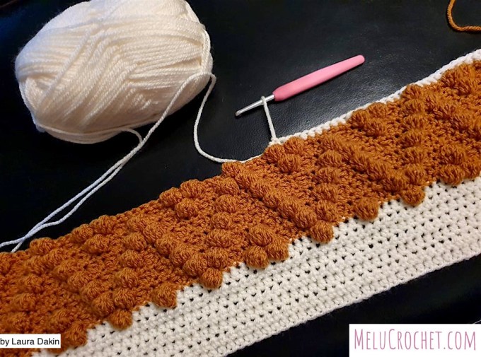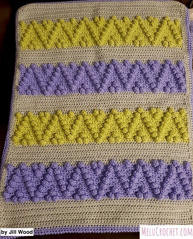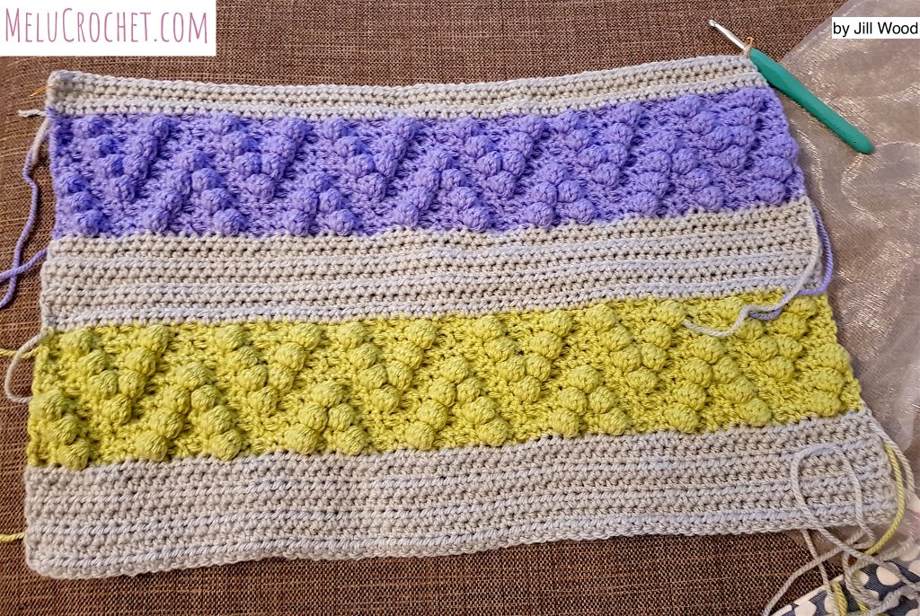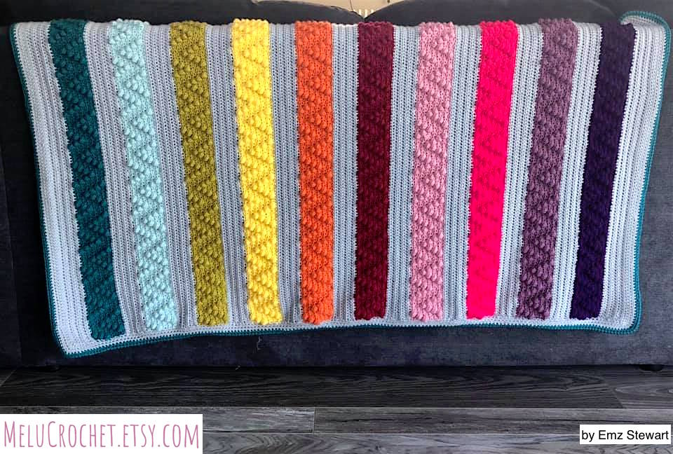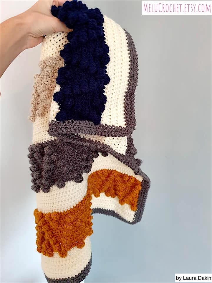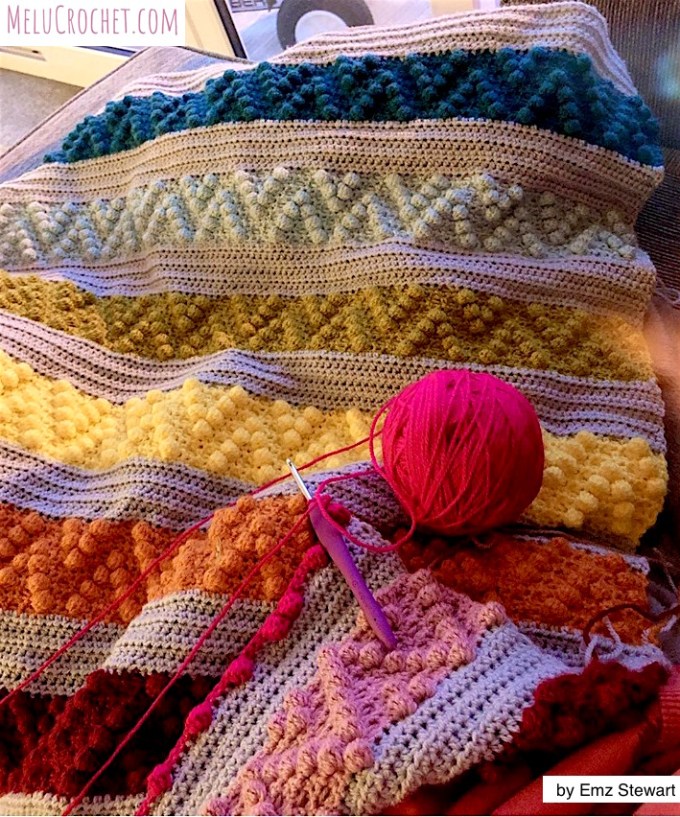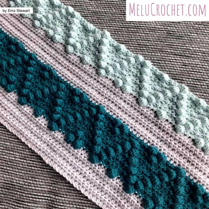 The #chevronbobbleblock pattern is unique because it uses my new DOUBLE SIDED bobble stitch method. Allowing you to create a different pattern on each side of your blanket (unlike when using the traditional method where you make a single sided blanket).