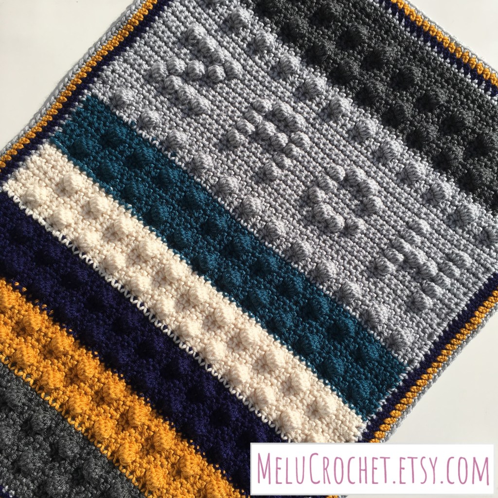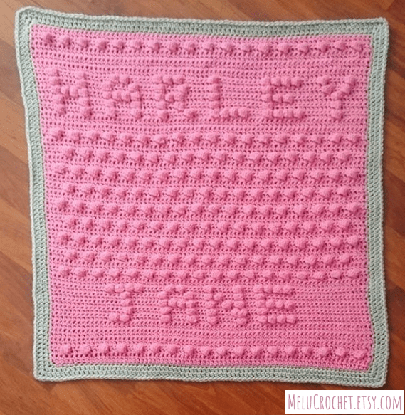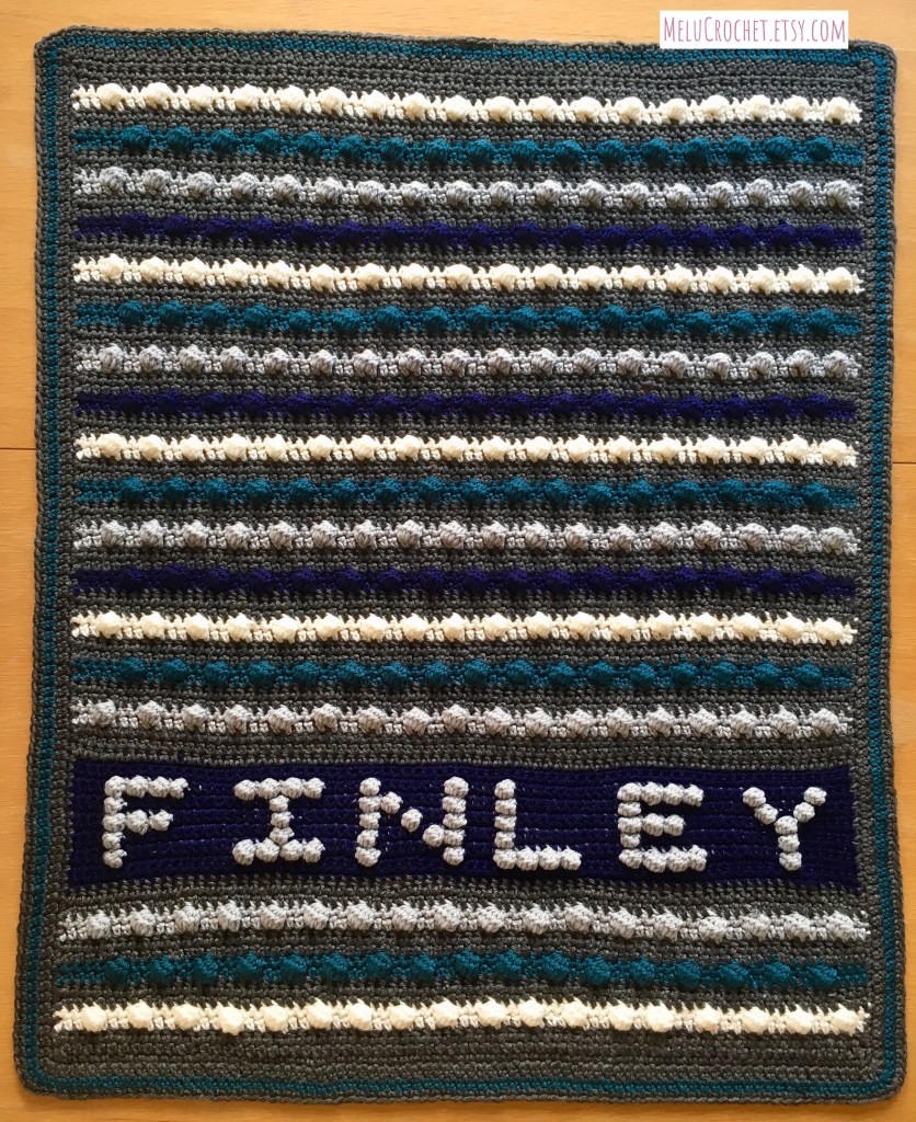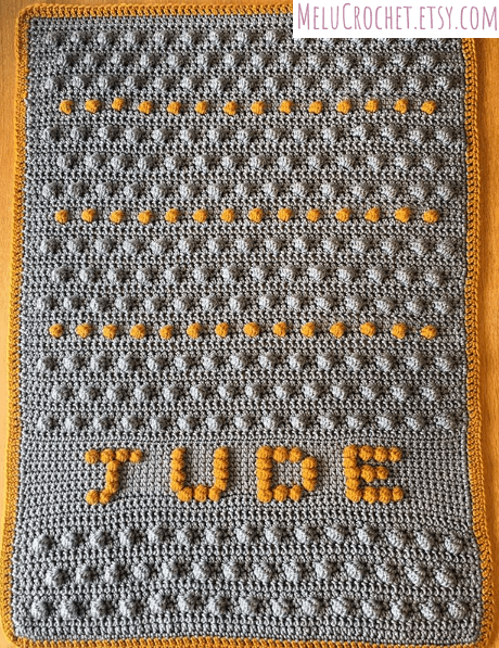 then you will follow the bobble stitch chart (with your added letters) to create the name part of your blanket.