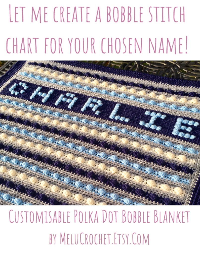 If you want me to create a bobble stitch chart for your chosen name please choose this version: https://melucrochet.etsy.com/listing/685044188 You will be able to download a bobble stitch guide as soon as you check out, but I will email your personalised pattern out to you as soon as I have made it, thanks!