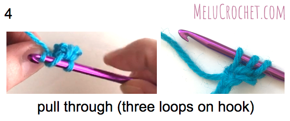In this stitch you will follow the steps for making a regular htr, but at step 2, you will insert your hook into the third loop: