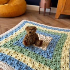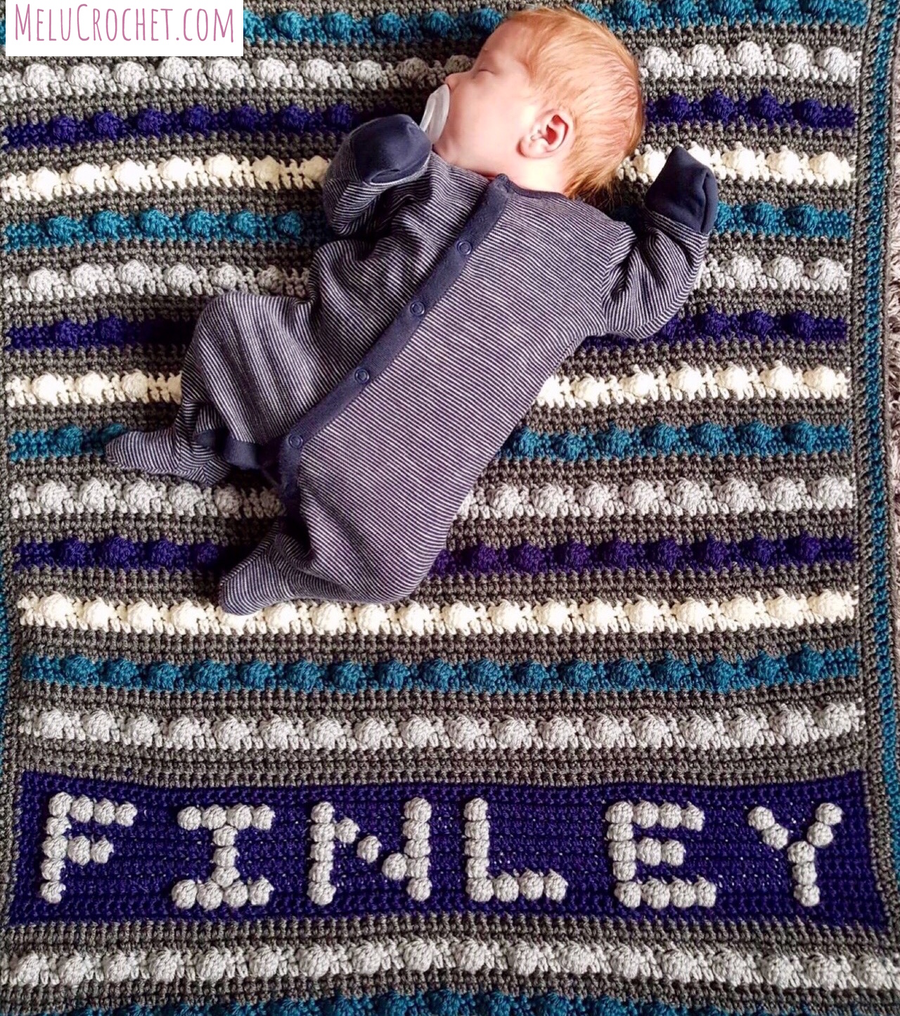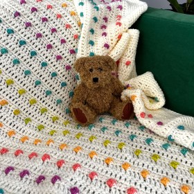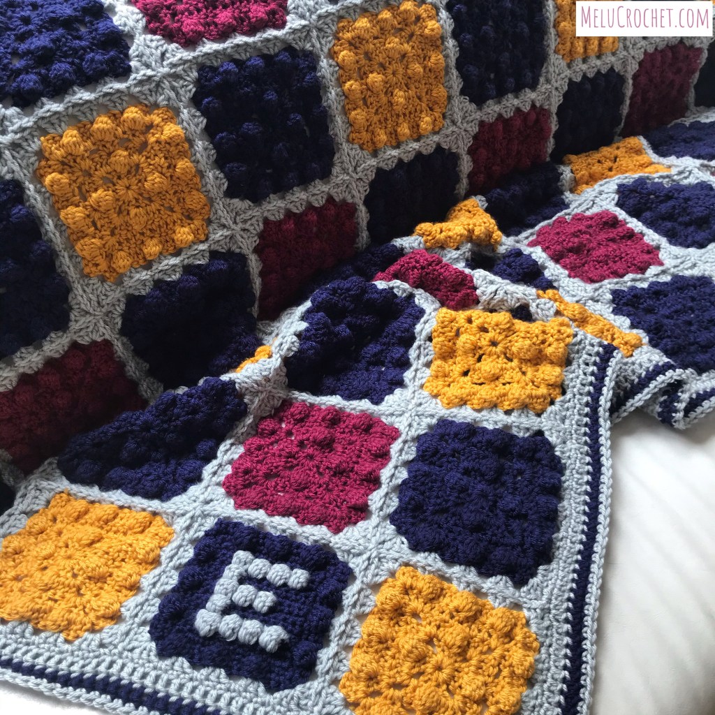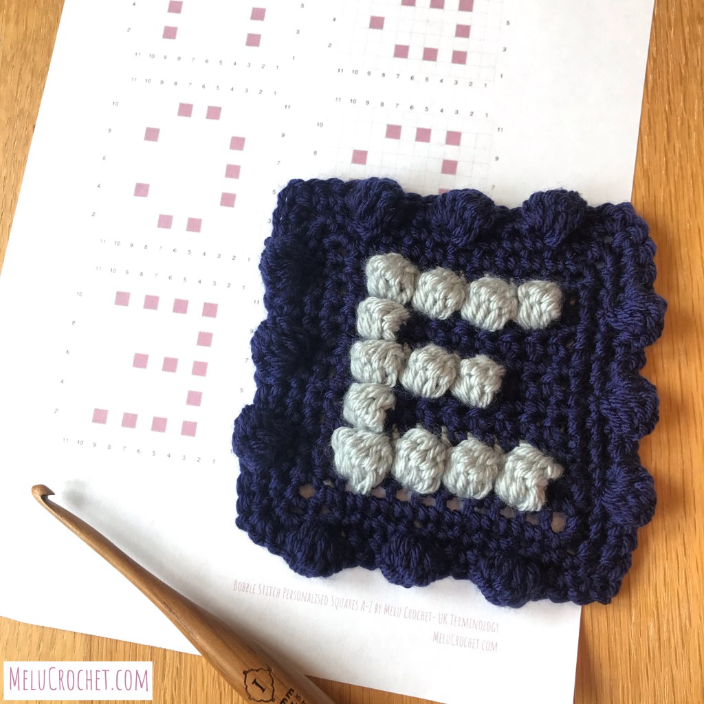 Just before I finished the blanket he asked me to personalise it for him. I adapted the ‘E’ from my A-Z Bobble Stitch Personalised Squares pattern and added it at the bottom of the blanket.
