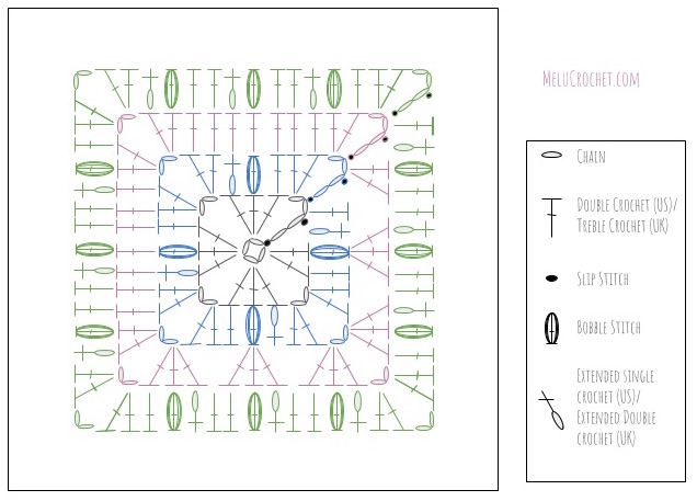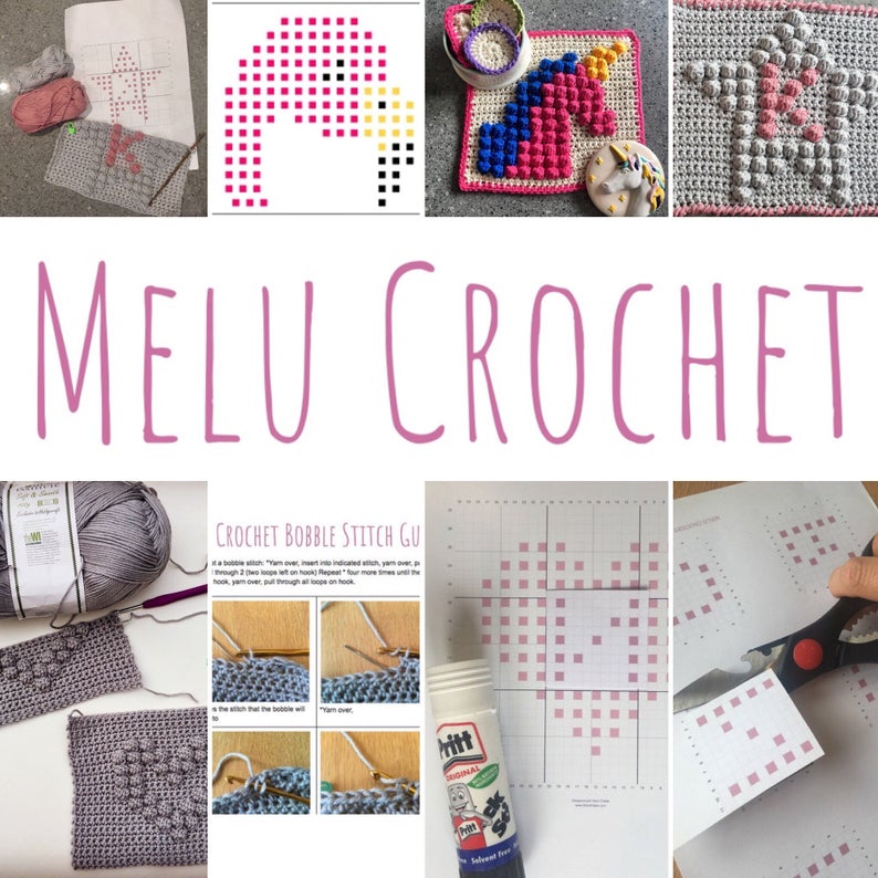 If you’d like to see more of my bobble stitch patterns, take a look at the Bobble Stitch Squares Set by Melu Crochet on etsy.