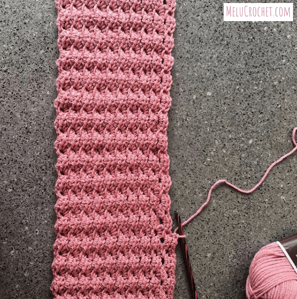Then Louisa decided she wanted to make a scarf with it as she loved the texture. I give instructions to change the width of the blanket in the pattern so she did this by simply changing the length of her starting chain.