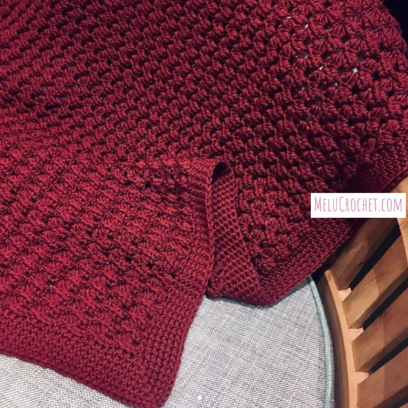 This cosy, warm blanket is ideal for adding modern texture and style to your home. It is soft and squishy so is ideal for cuddling up! The most wonderful thing about it though is how easy it is- even though it looks so intricate. It is a simple, repeating pattern so that you can relax, unwind and enjoy it as there is no need to count once you’ve got going- hooray!