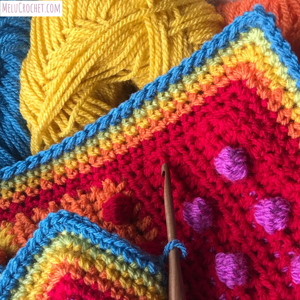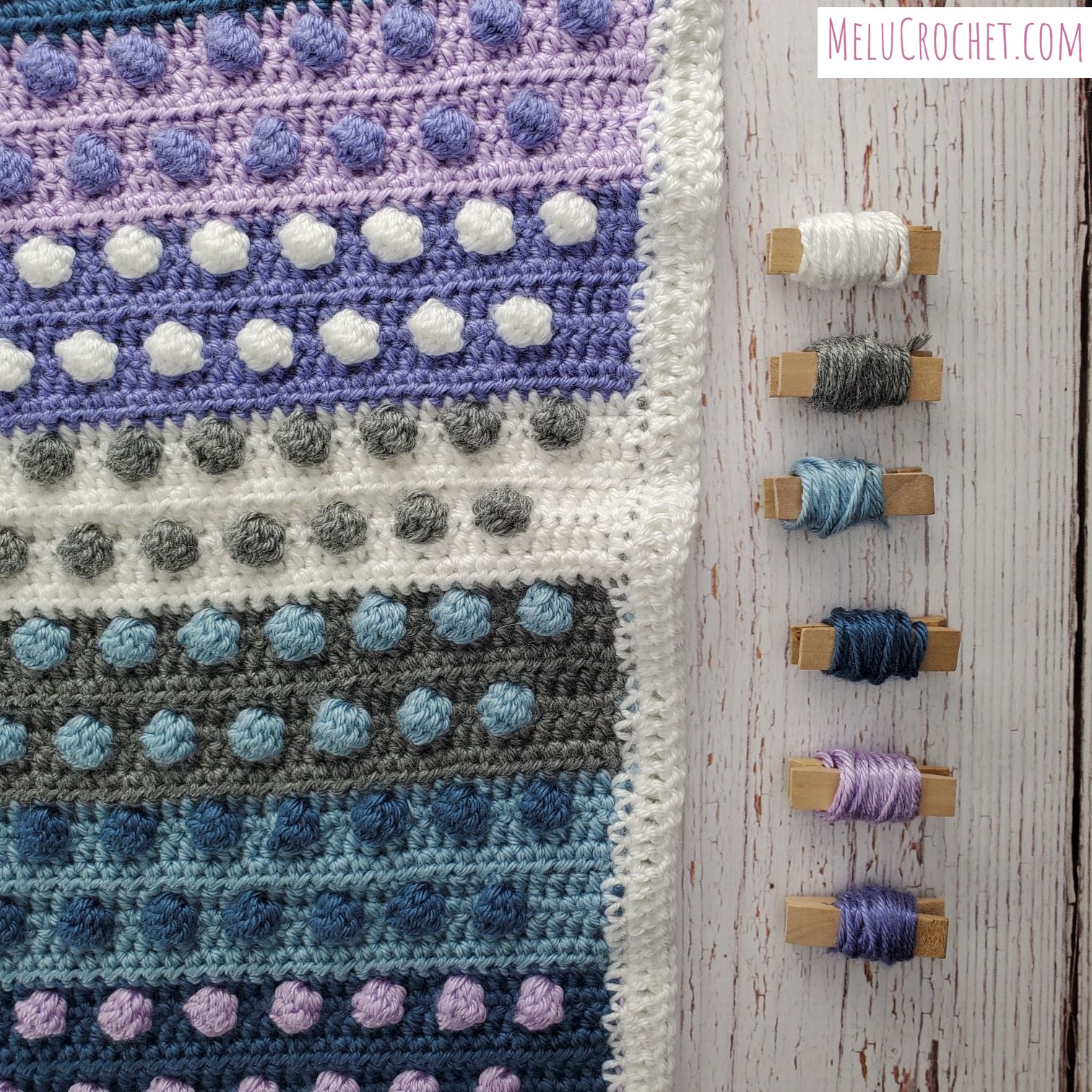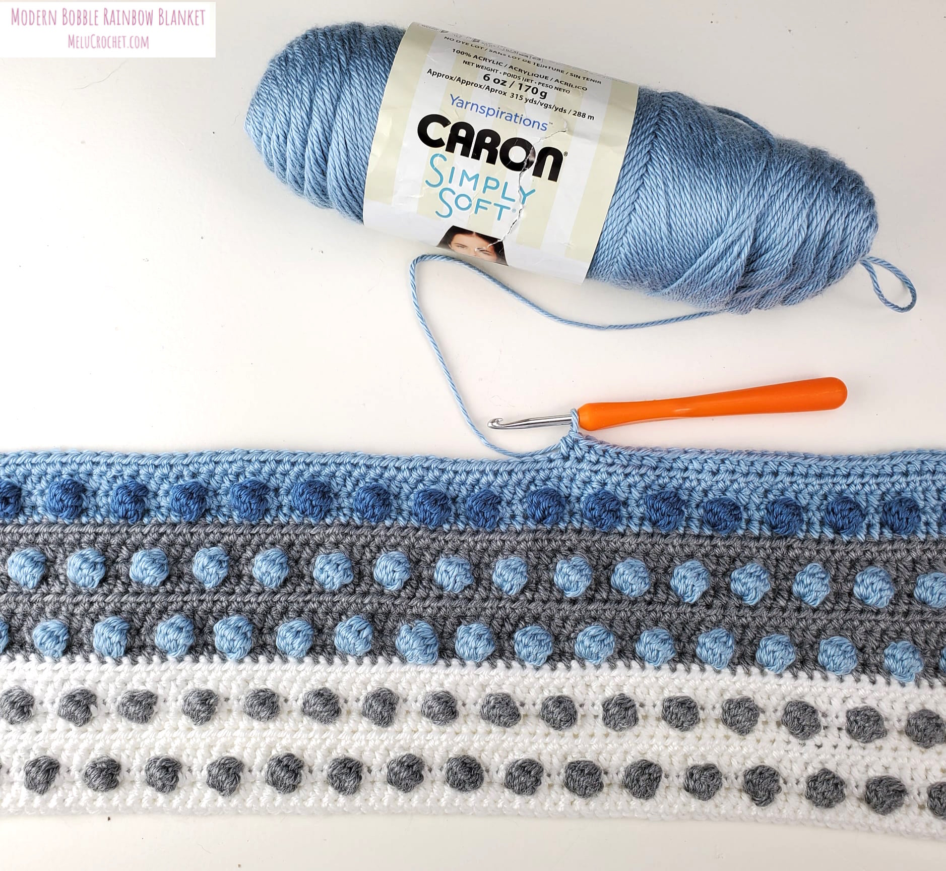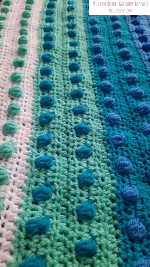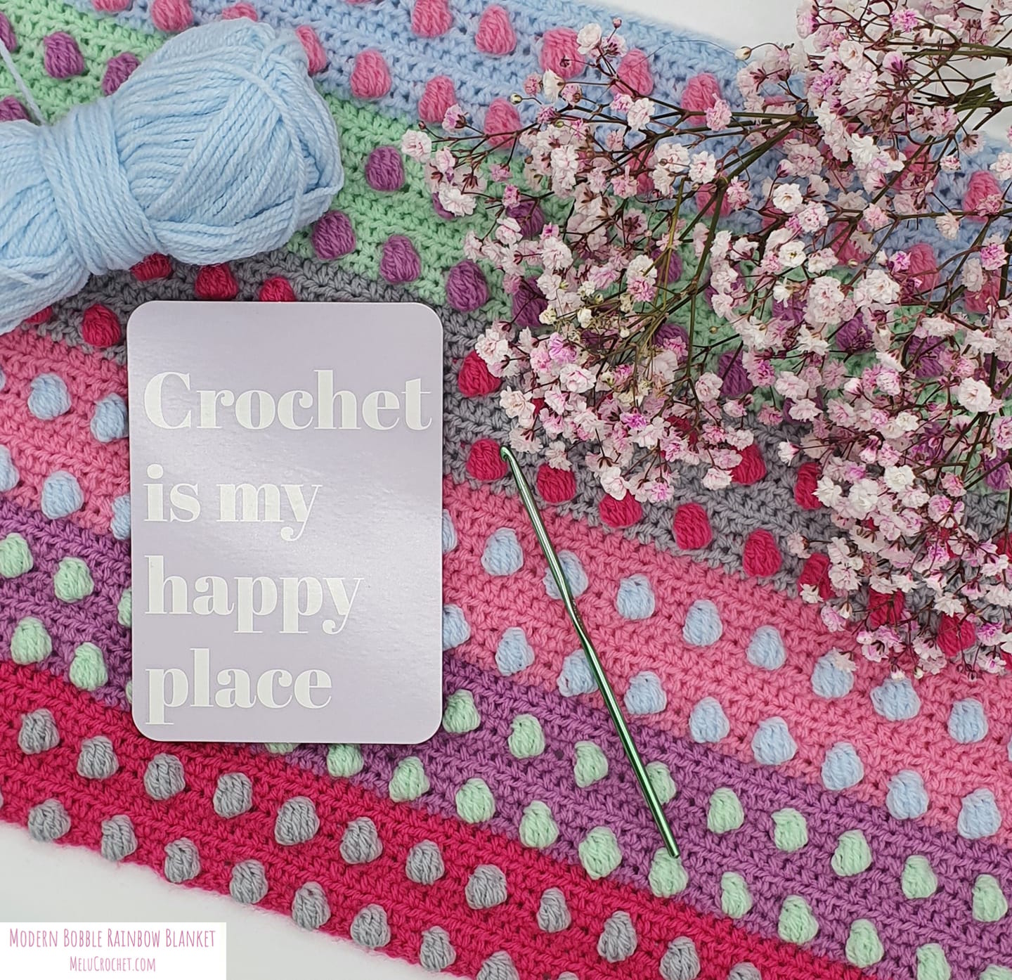 In this Modern Bobble Rainbow pattern I give you instructions with a colour recipe and photo tutorial to help you make the bobbles pop with a different colour than your working yarn, therefore previous knowledge of how to make a bobble stitch and carry yarn will be helpful.