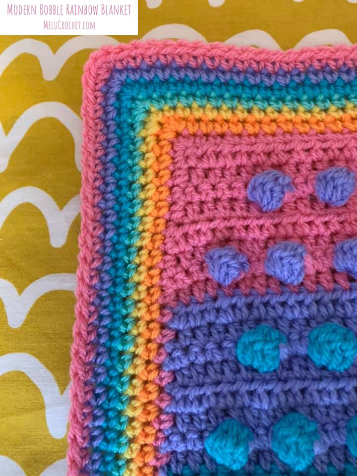 This is a rainbow version of my easy and quick modern bobble blanket which was designed for beginners in just one colour.