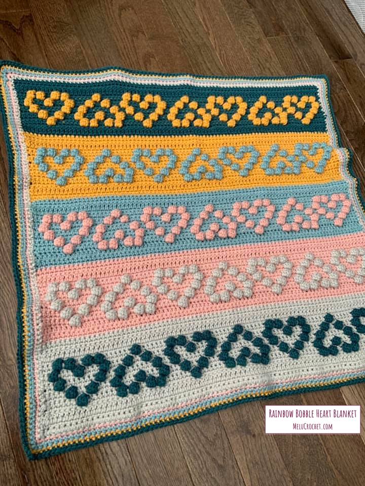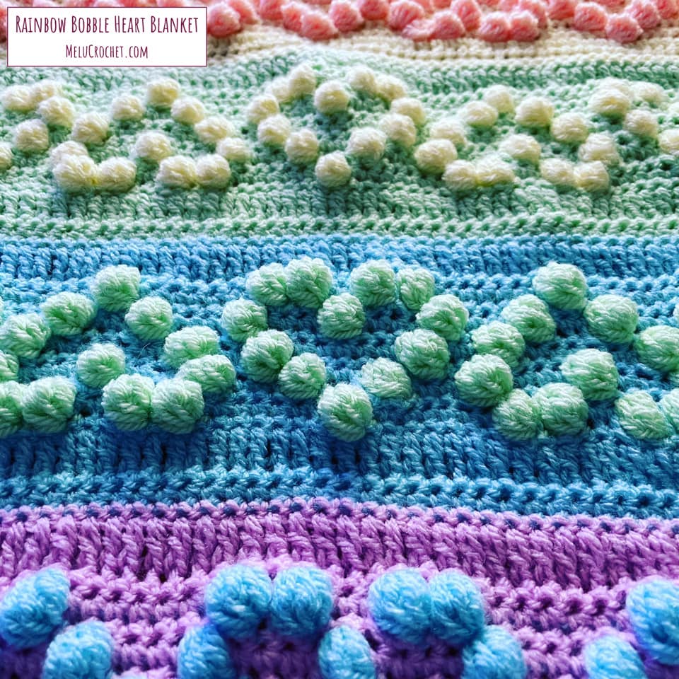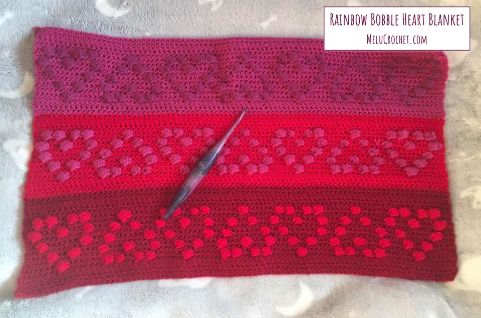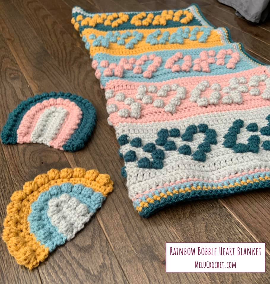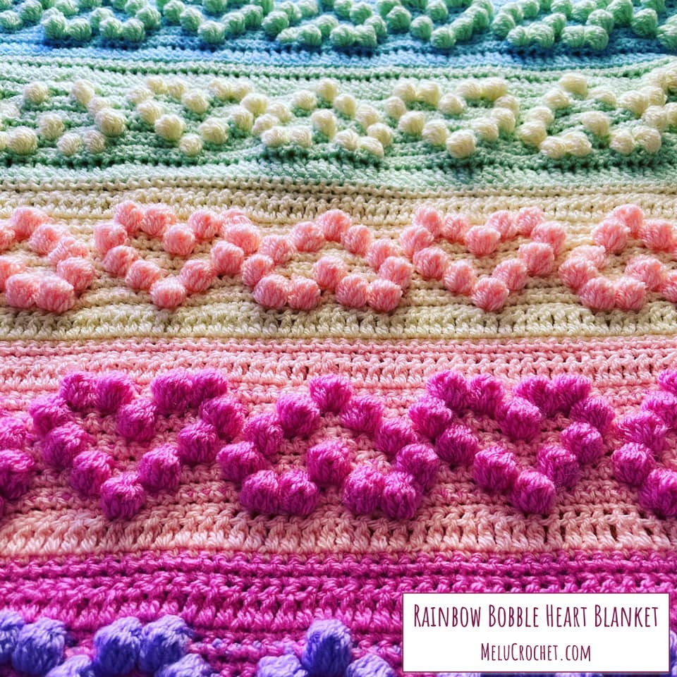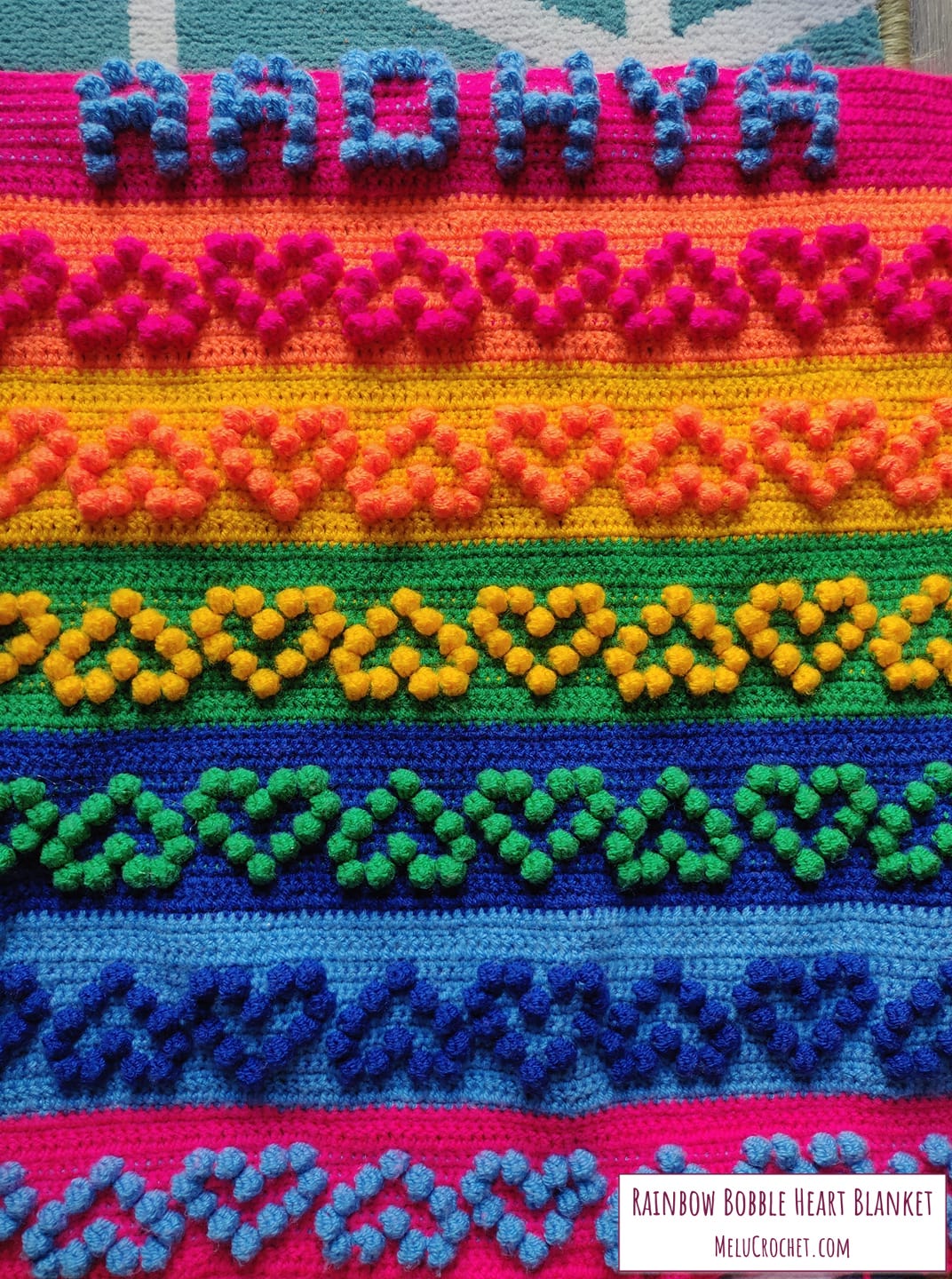The Rainbow Bobble Heart Blanket by Melu Crochet is available in my Etsy shop, my Lovecrafts shop, Ribblr and buy now on Ravelry!