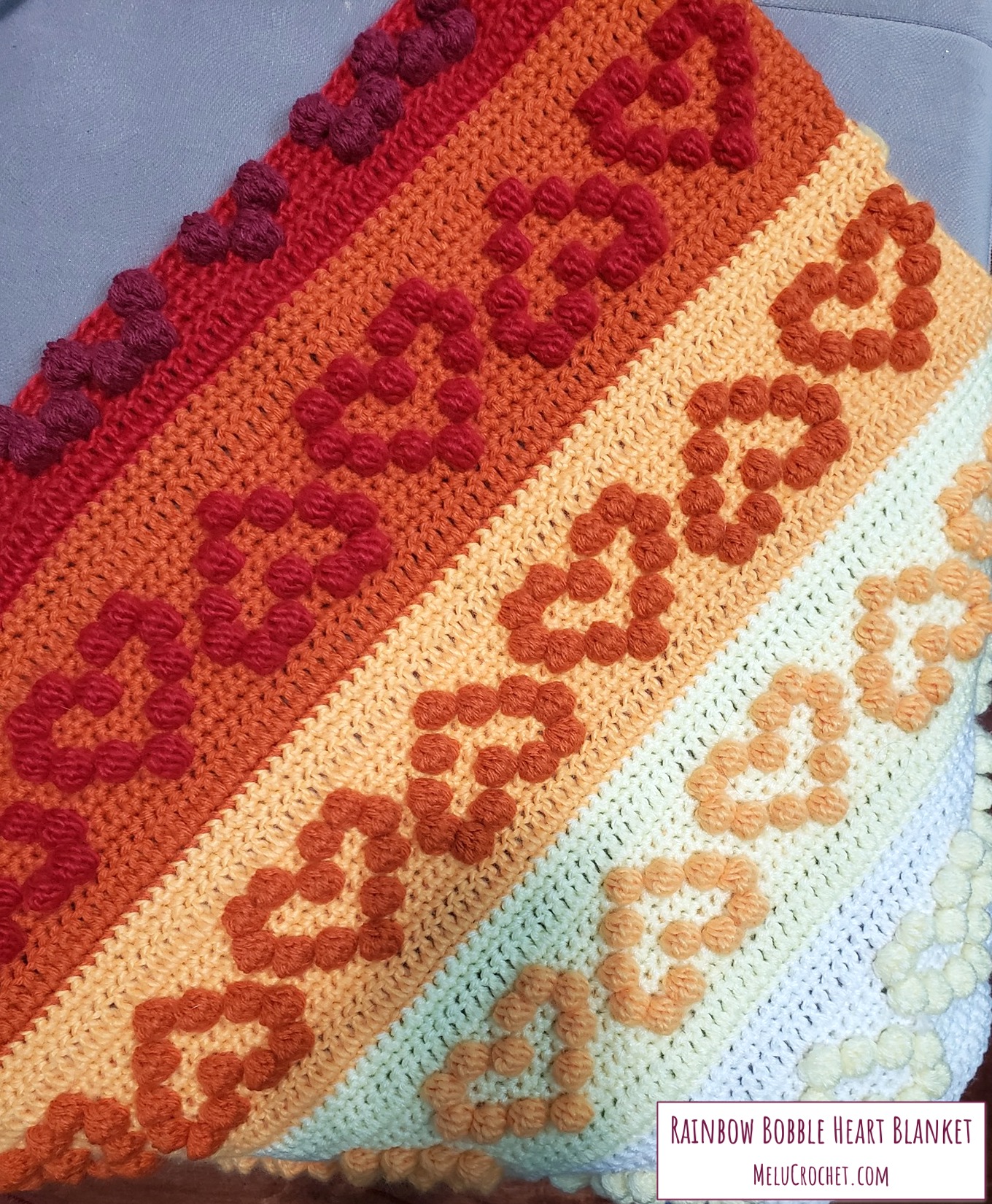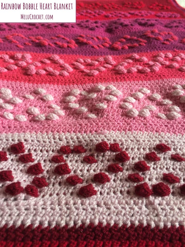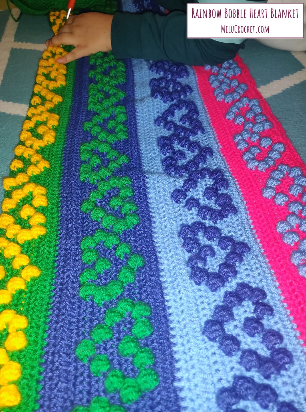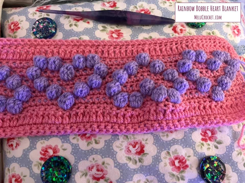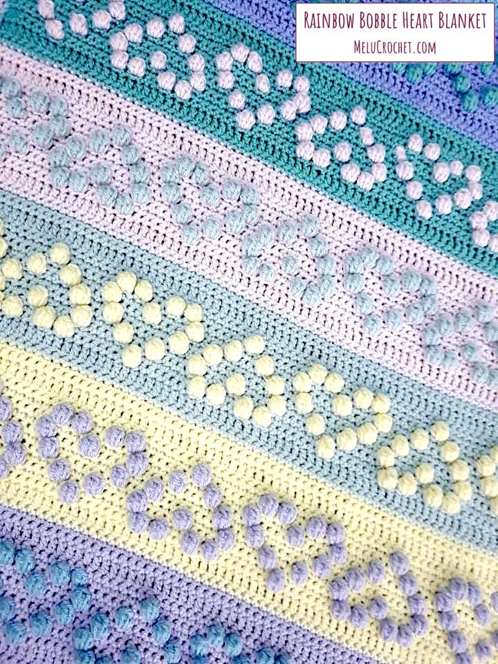 The Rainbow Bobble Heart Blanket by Melu Crochet is available in my Etsy shop, my Lovecrafts shop, Ribblr and buy now on Ravelry!