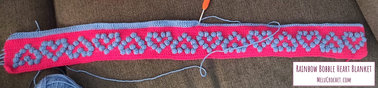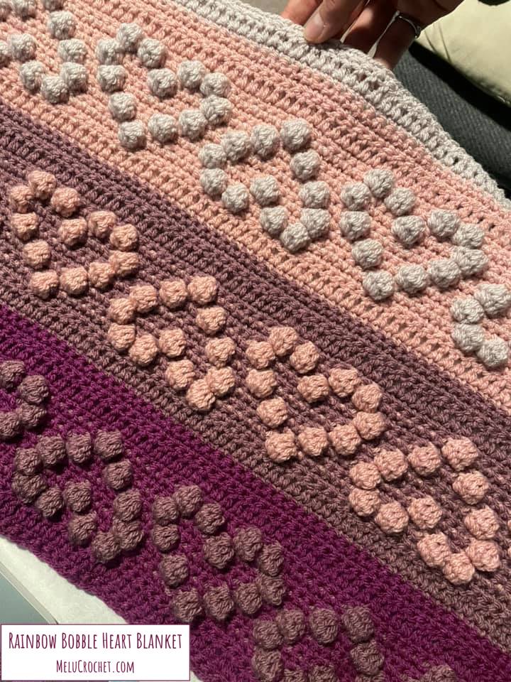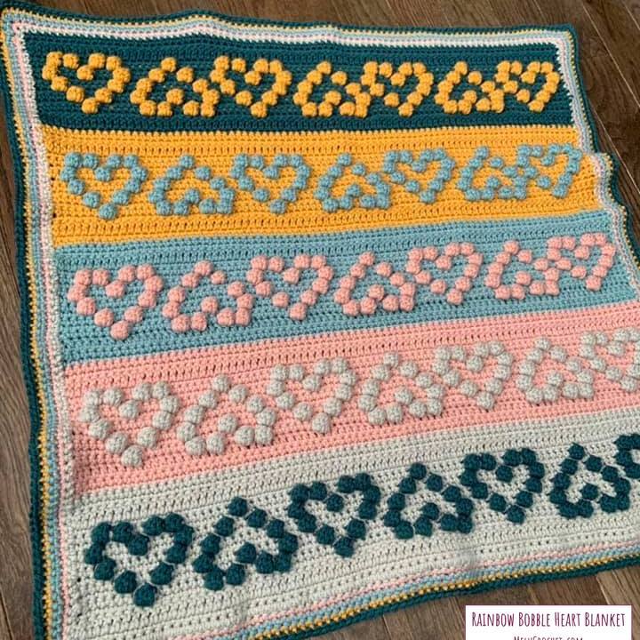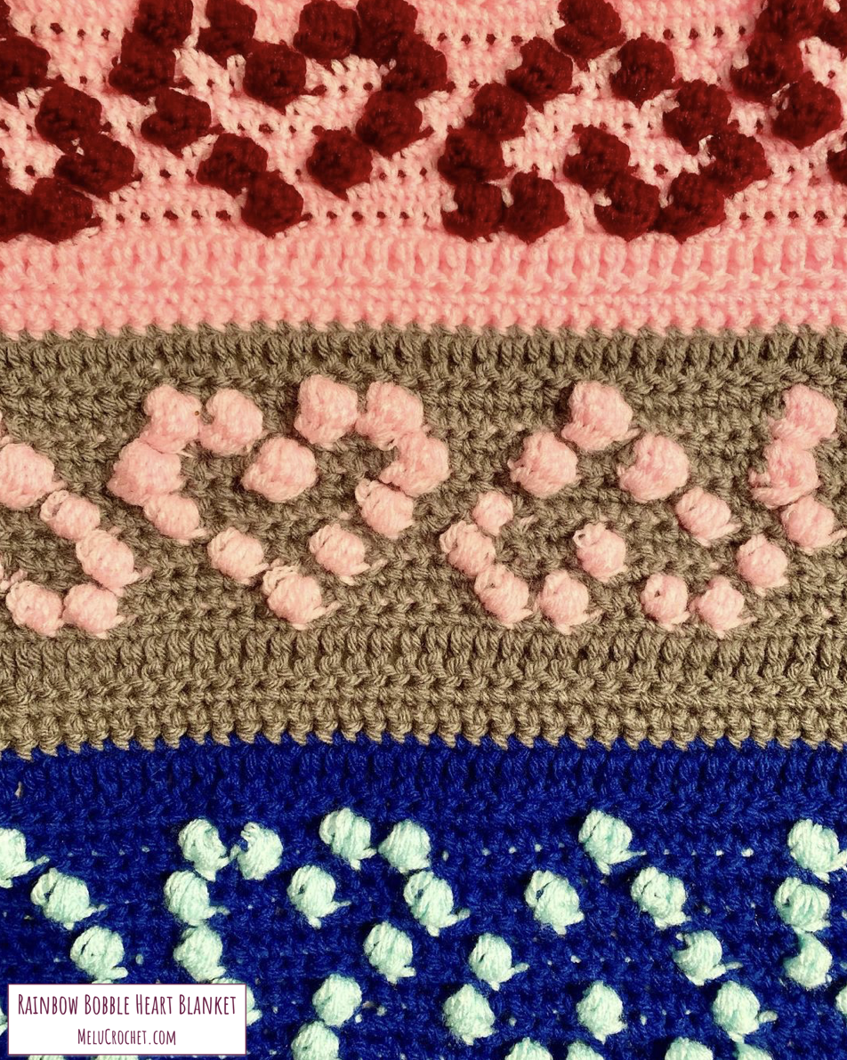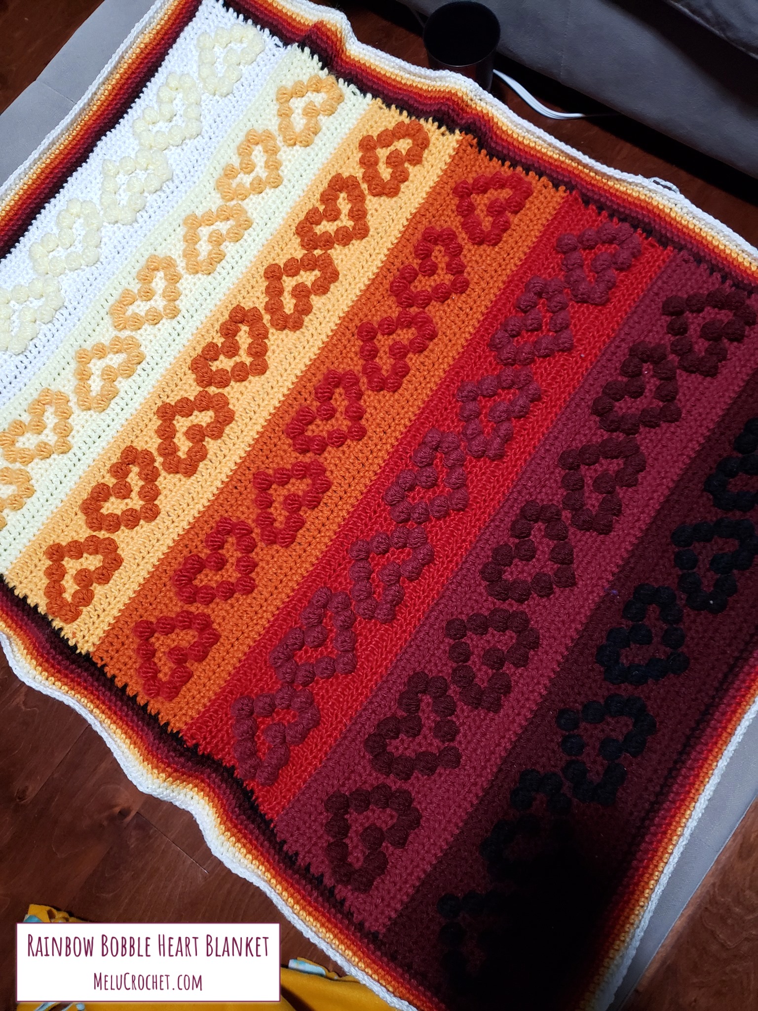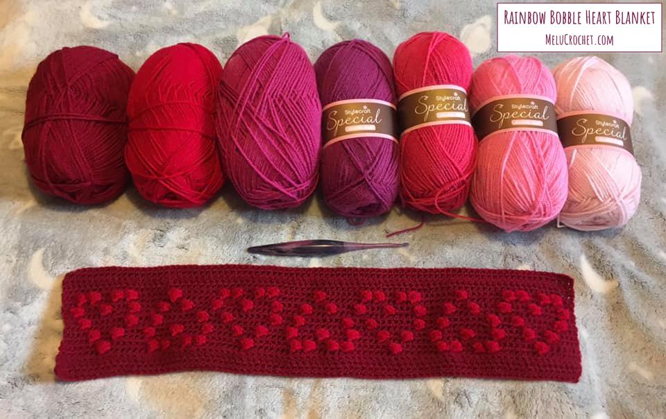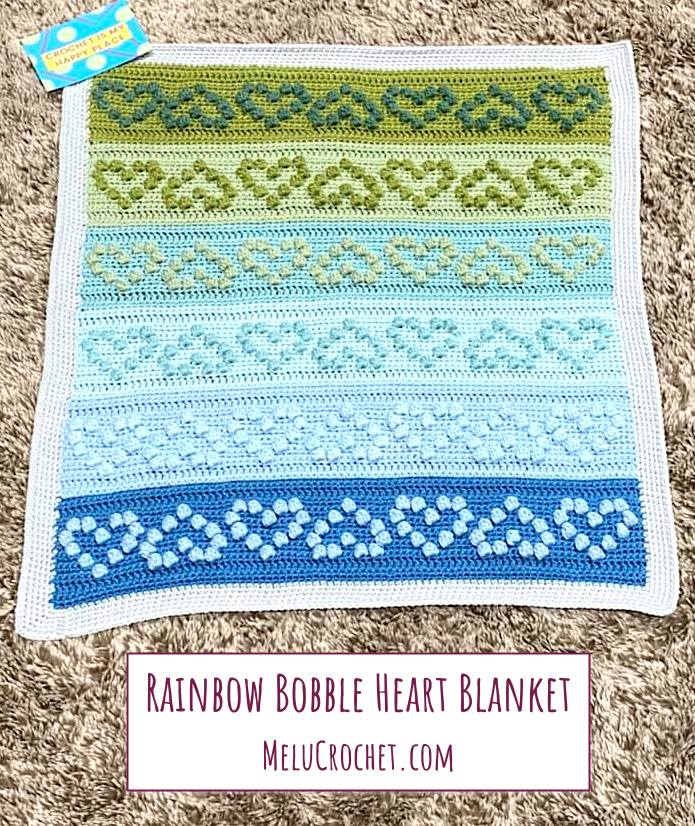 The Rainbow Bobble Heart Blanket by Melu Crochet is available in my Etsy shop, my Lovecrafts shop, Ribblr and buy now on Ravelry!
