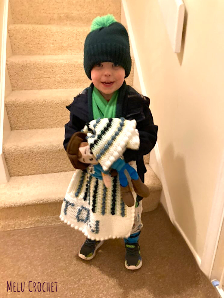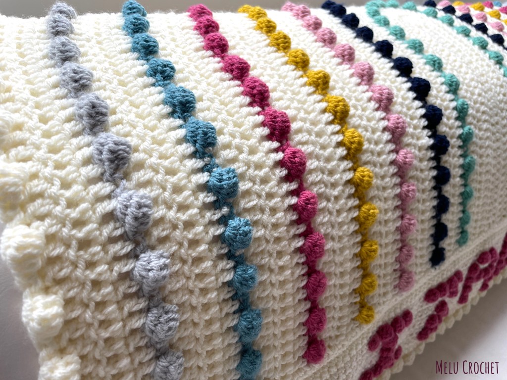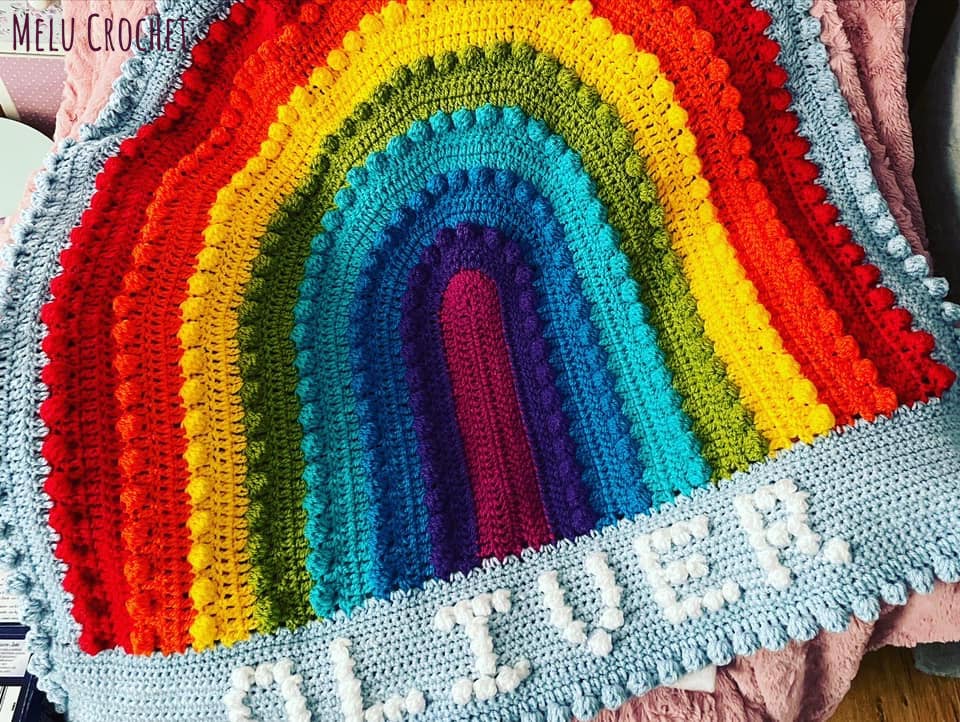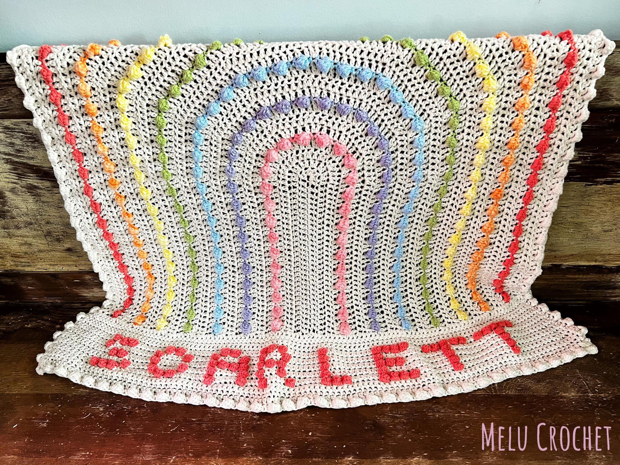 The bobbles not only show the name, but they’re also a fantastic tactile element for both babies and children. You’ll be provided with full instructions on how to make the bobble stitches, as well as full instructions on how to create the rainbow part of the blanket.