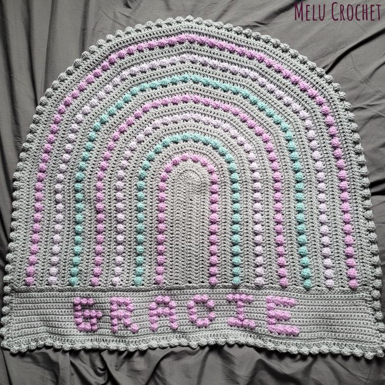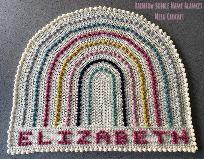 Here are the Rainbow Bobble Name blankets that my amazing testers made. Please take a look at their profiles and shops by clicking their names and giving them a like and a follow! (you might even be able to commission your own blanket!)