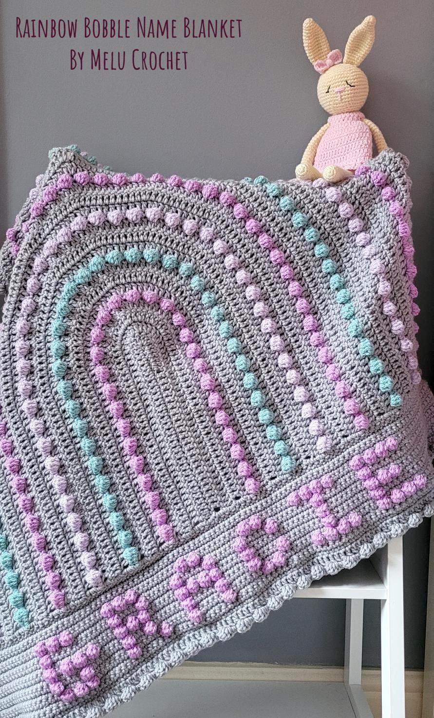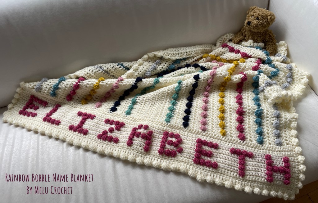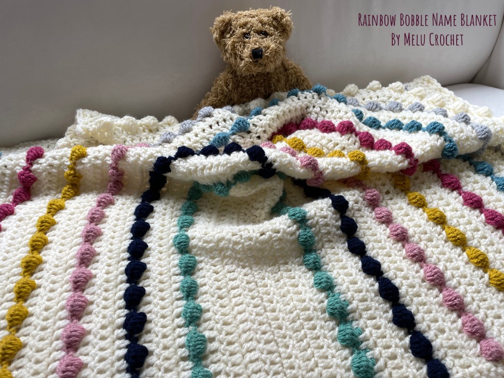 My Rainbow Bobble Name Blanket is now available in my Etsy shop, Payhip, my LoveCrafts shop, and buy now on Ravelry