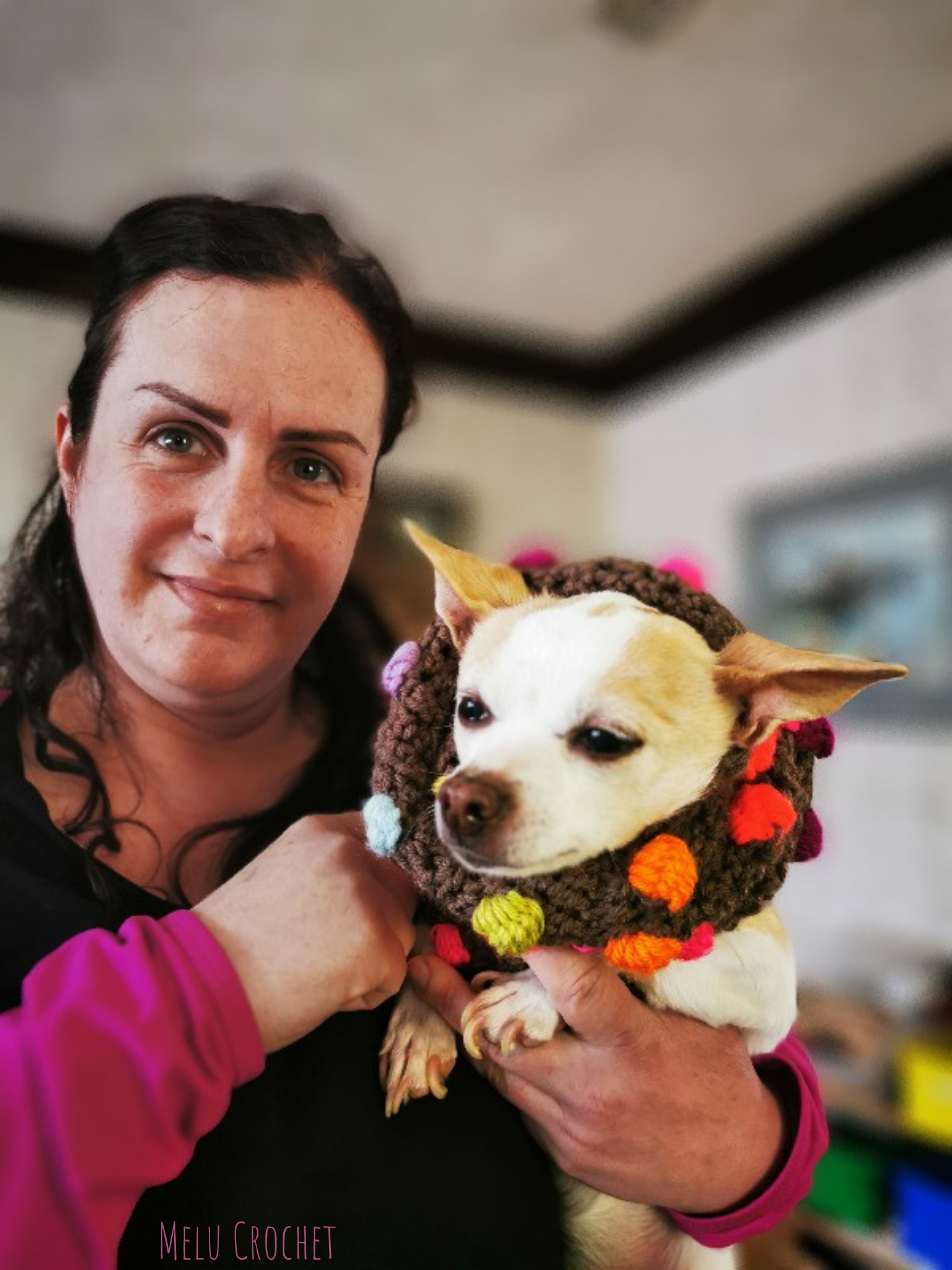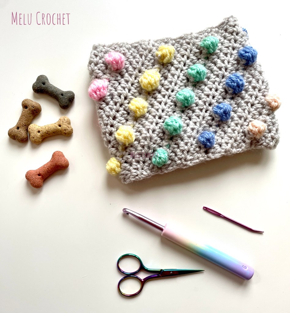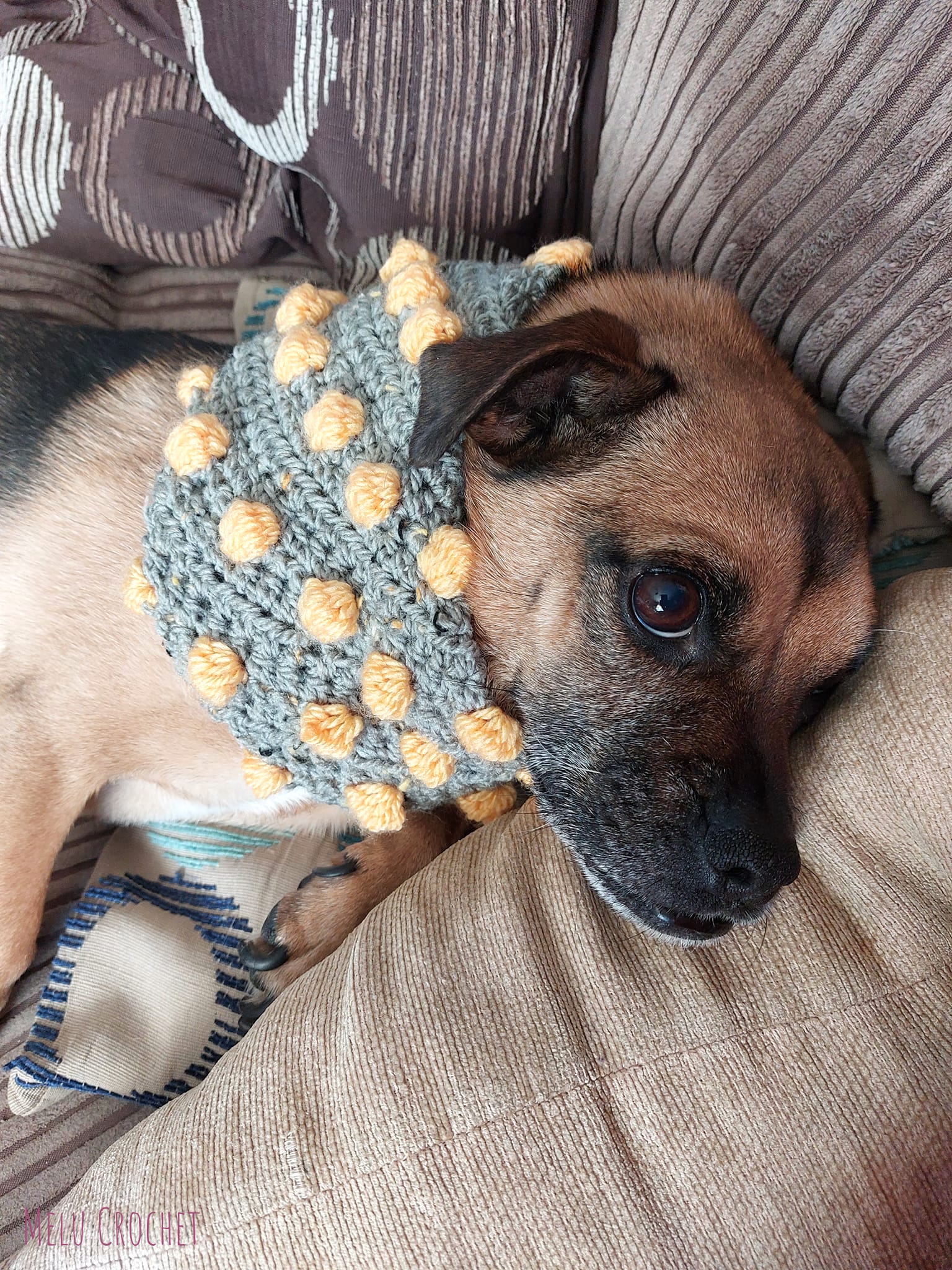 I have designed this cute crochet Rainbow Bobble Snood pattern to keep your doggy warm and stylish during the colder weather. It uses diagonal half trebles, dc and bobble stitches in a simple repeating pattern. Tried and tested by Ernie, Skye and a few cat friends too!!