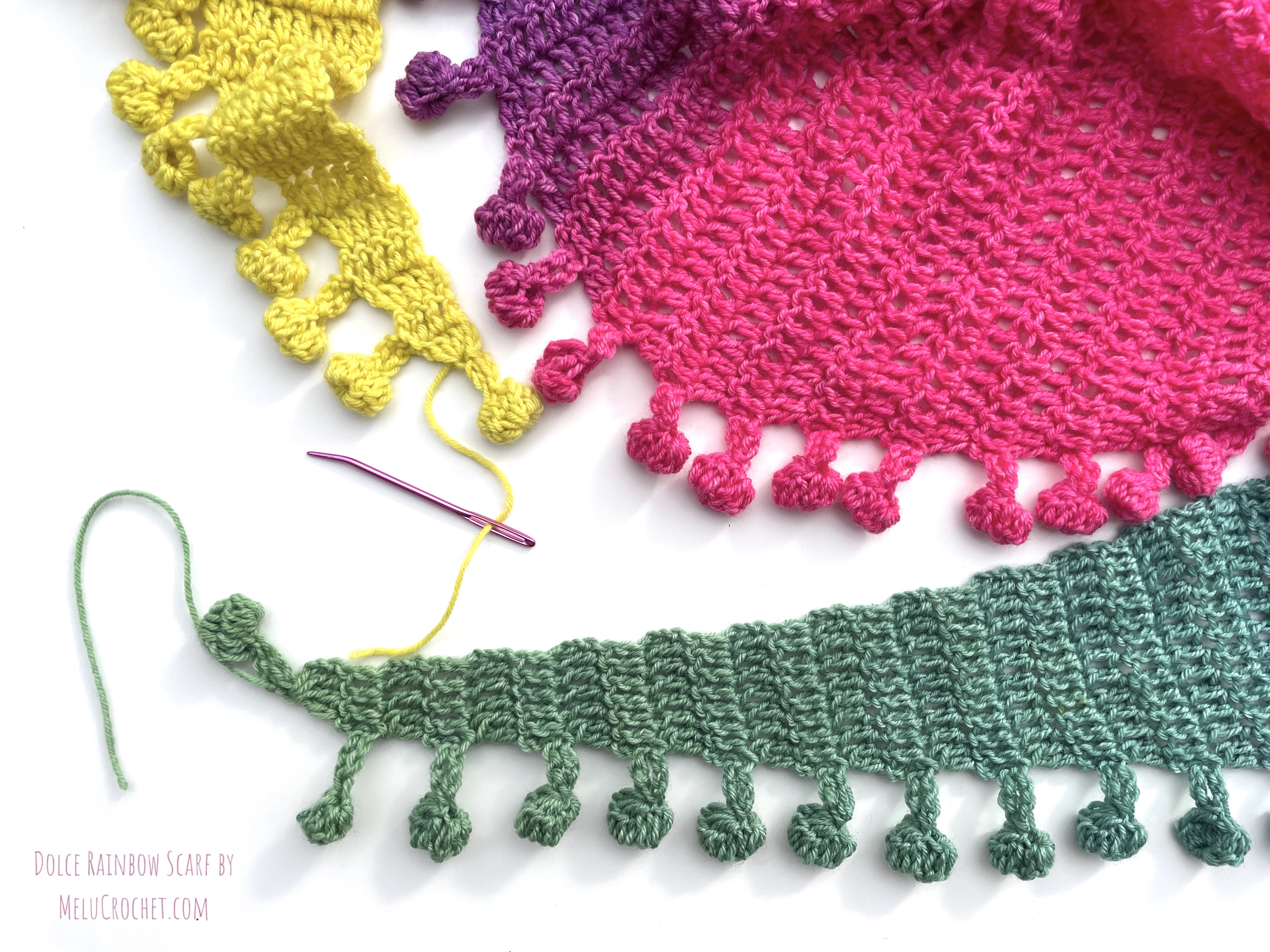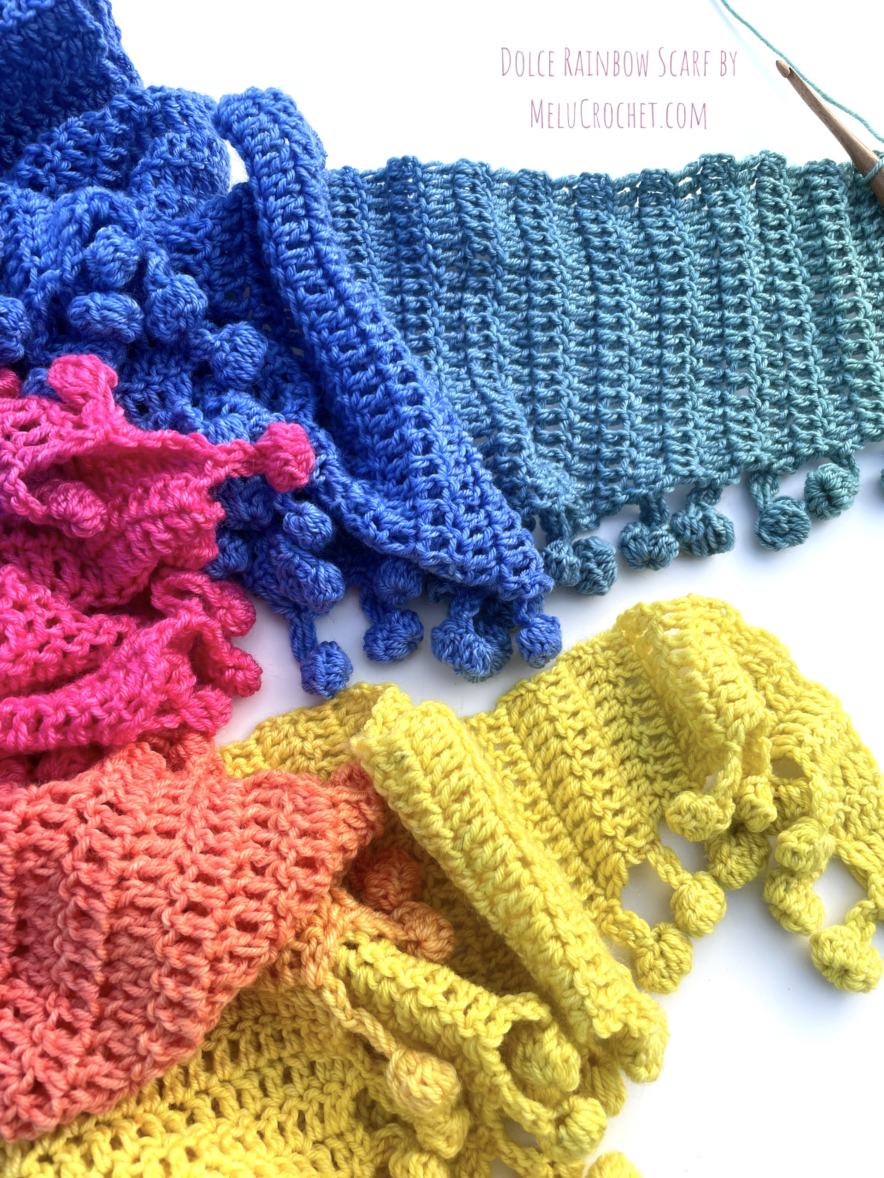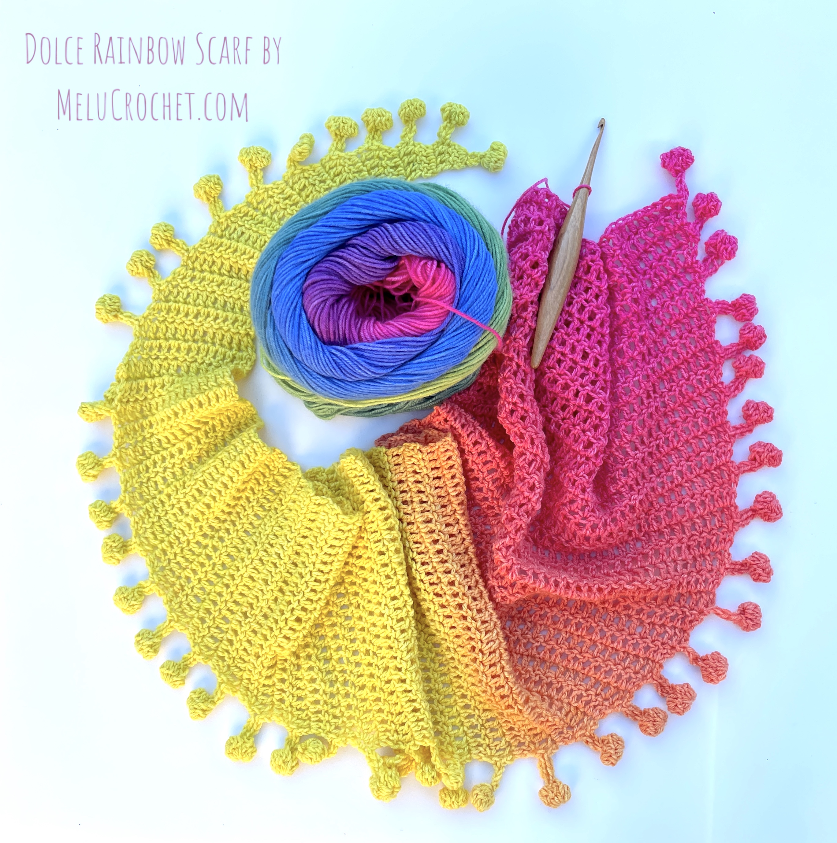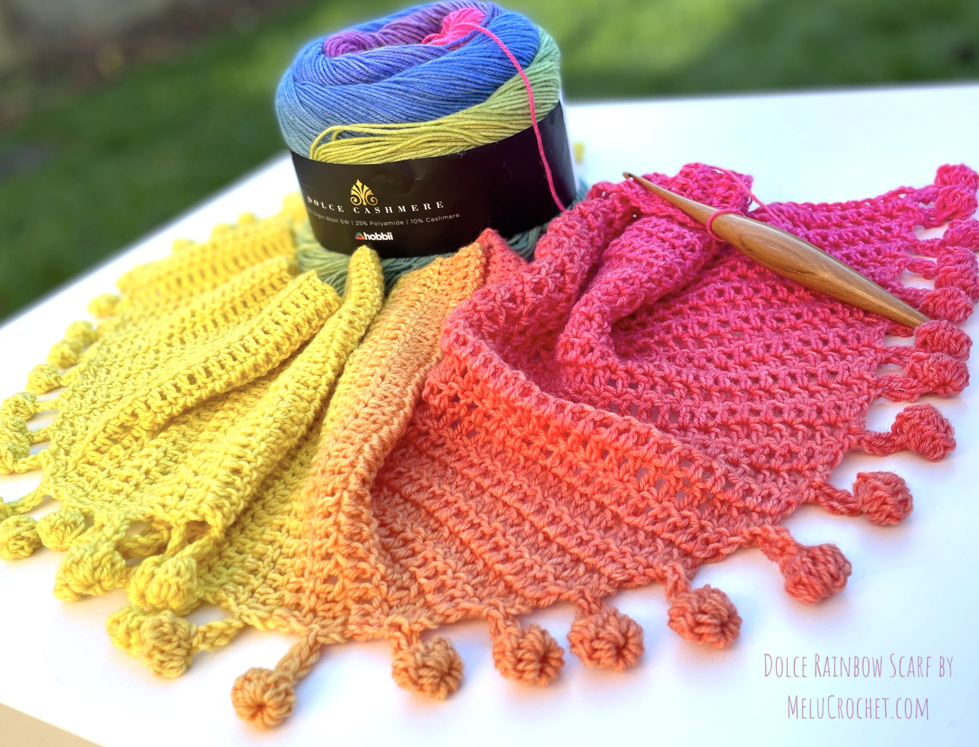 My Dolce Rainbow Scarf is now available in my Etsy shop, LoveCrafts shop, Ribblr, on Hobbii.com and Buy now on Ravelry