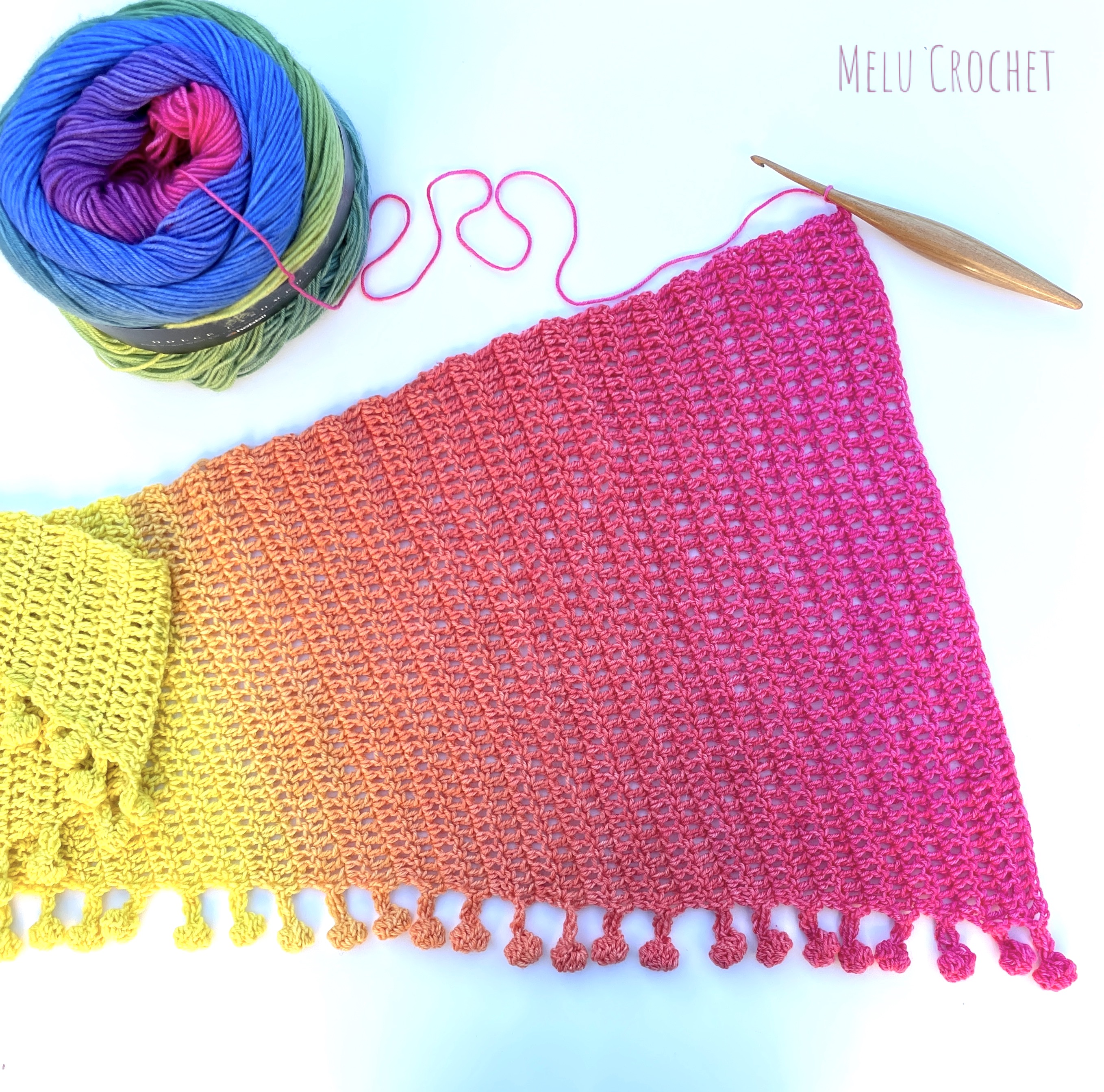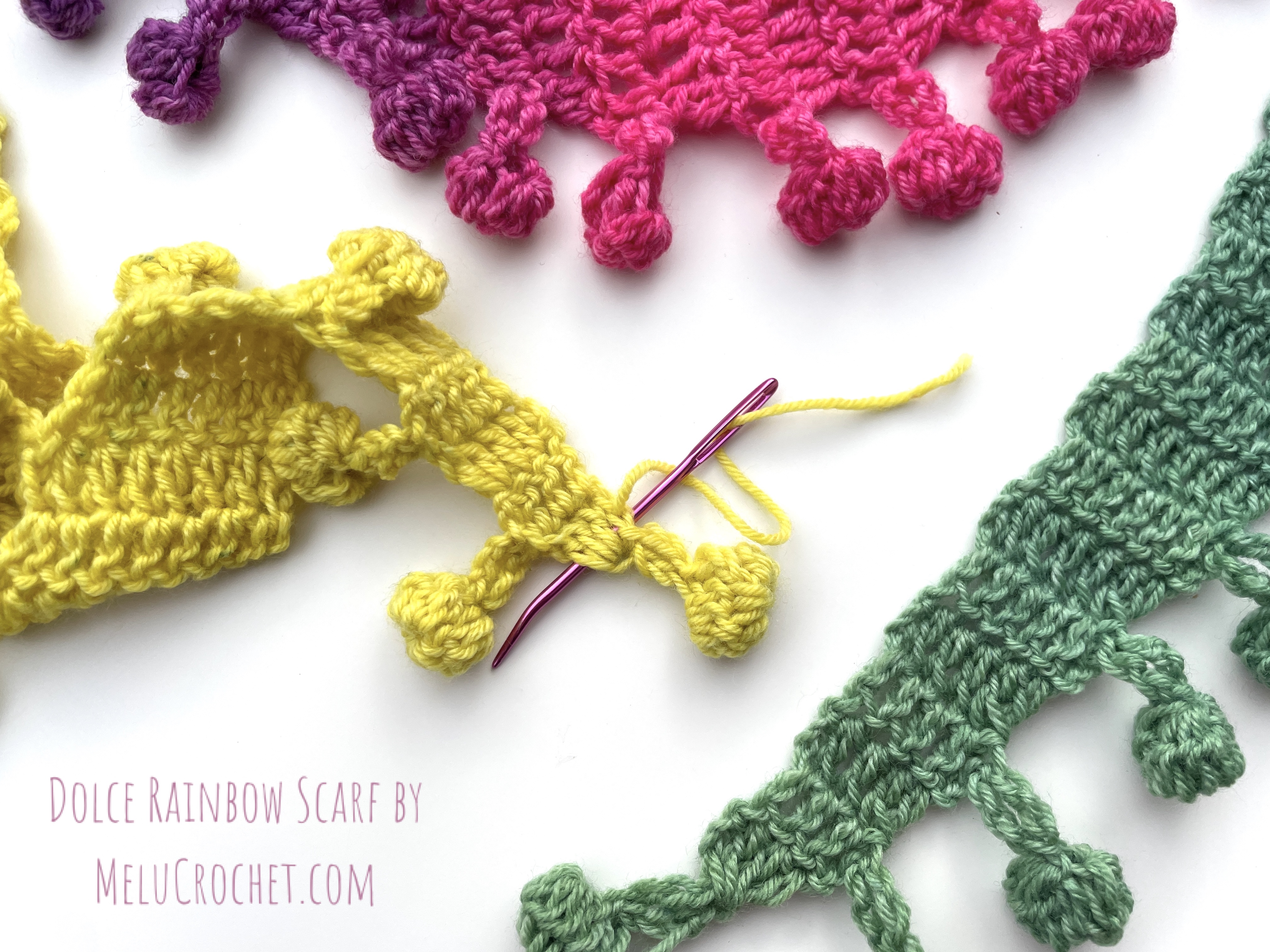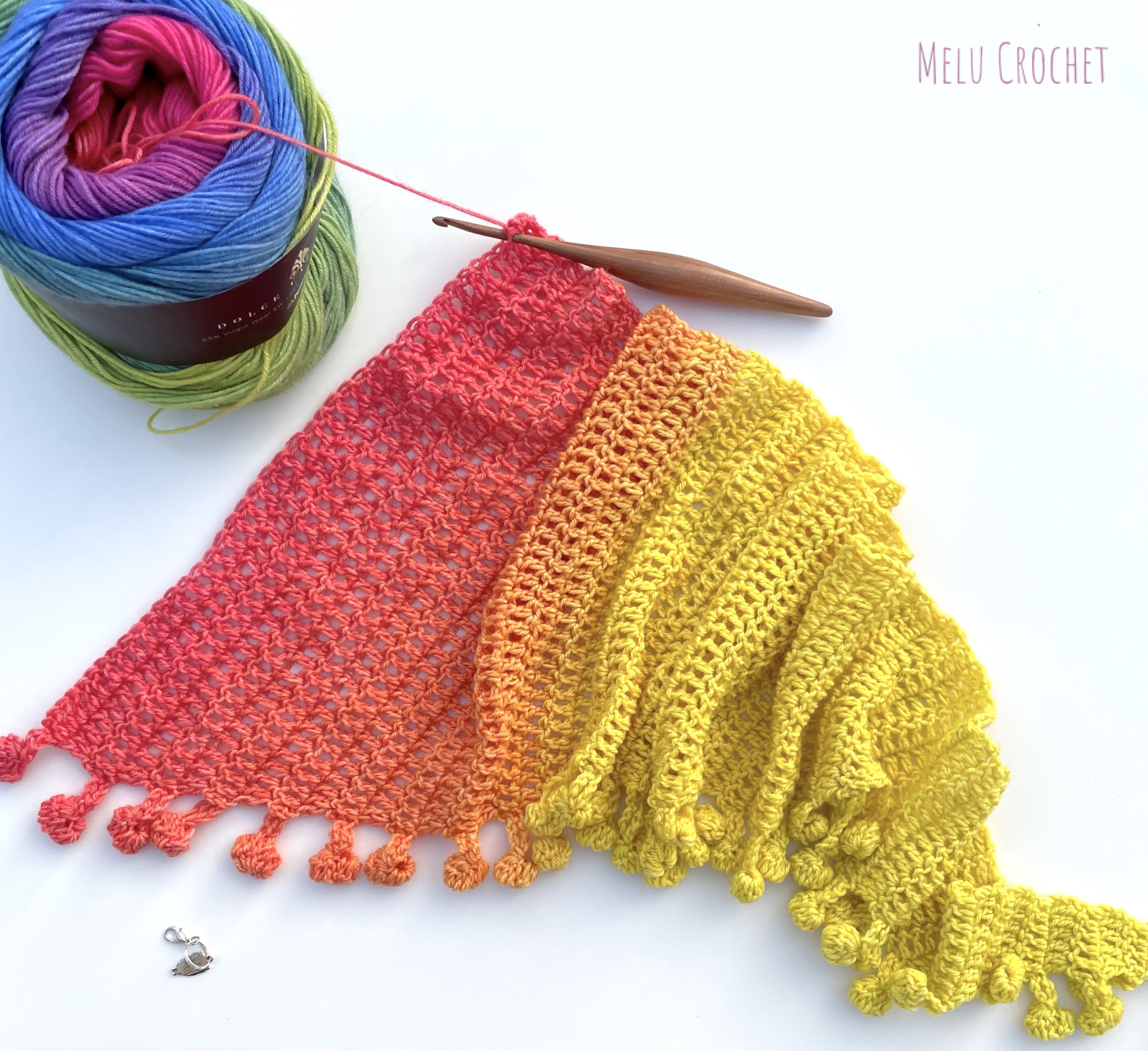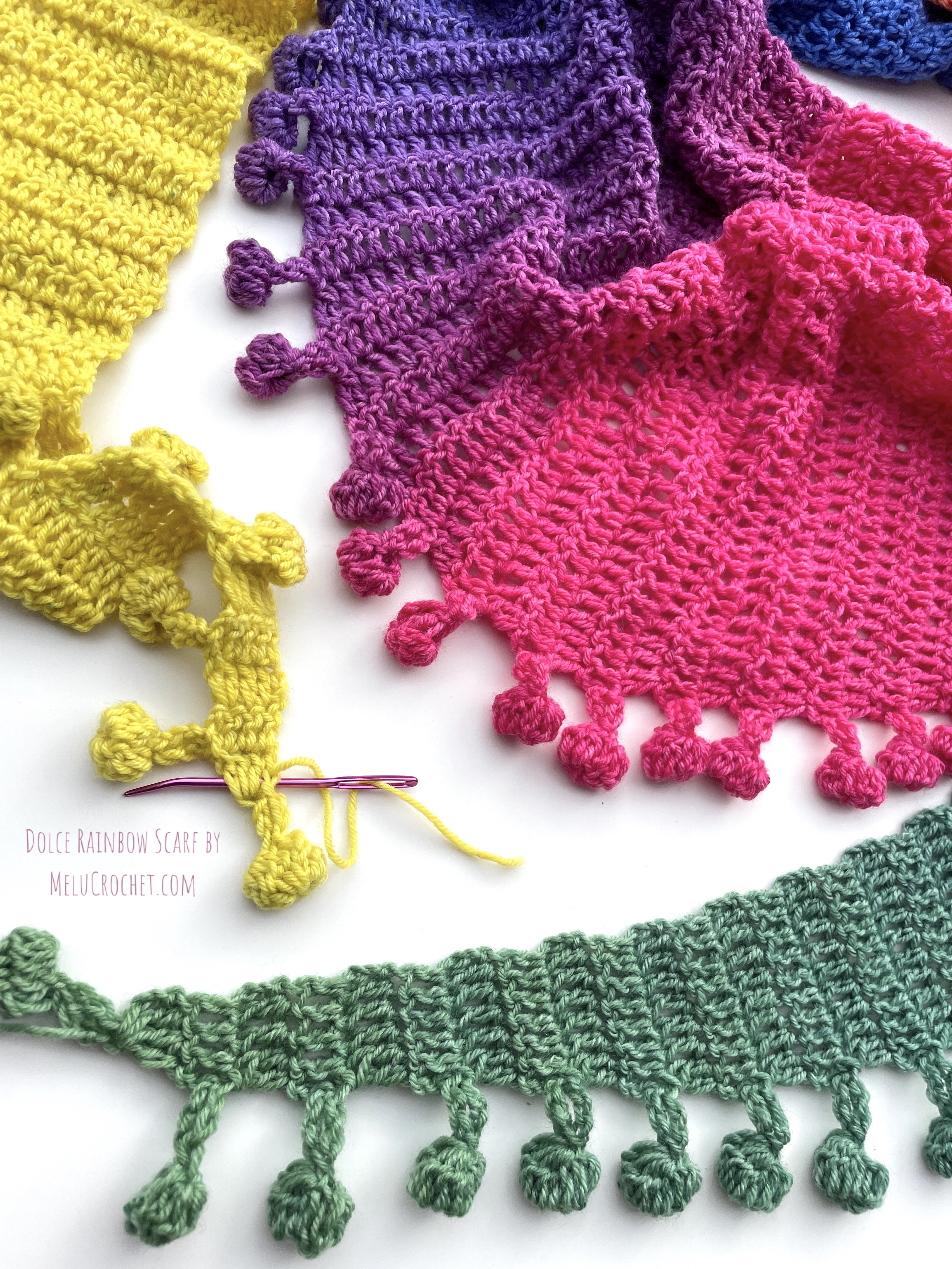 My Dolce Rainbow Scarf is now available in my Etsy shop, LoveCrafts shop, Ribblr, on Hobbii.com and Buy now on Ravelry