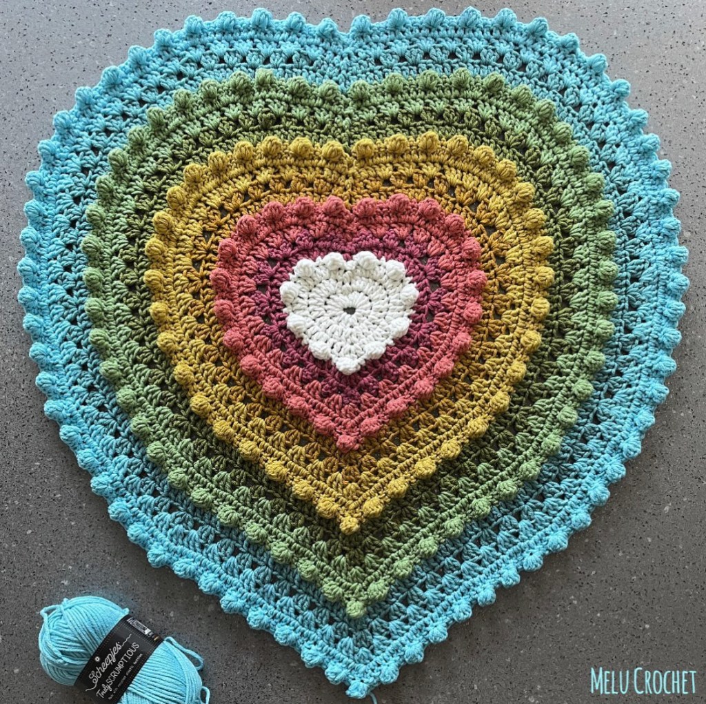 As I promised I am posting to let you know that my Bobblina Heart blanket is now ready for testing! I have been working on this large heart blanket for some time, getting the shape just right!
