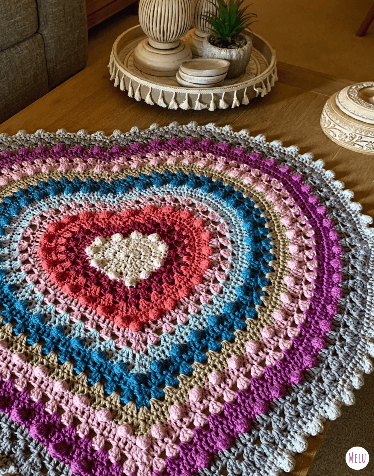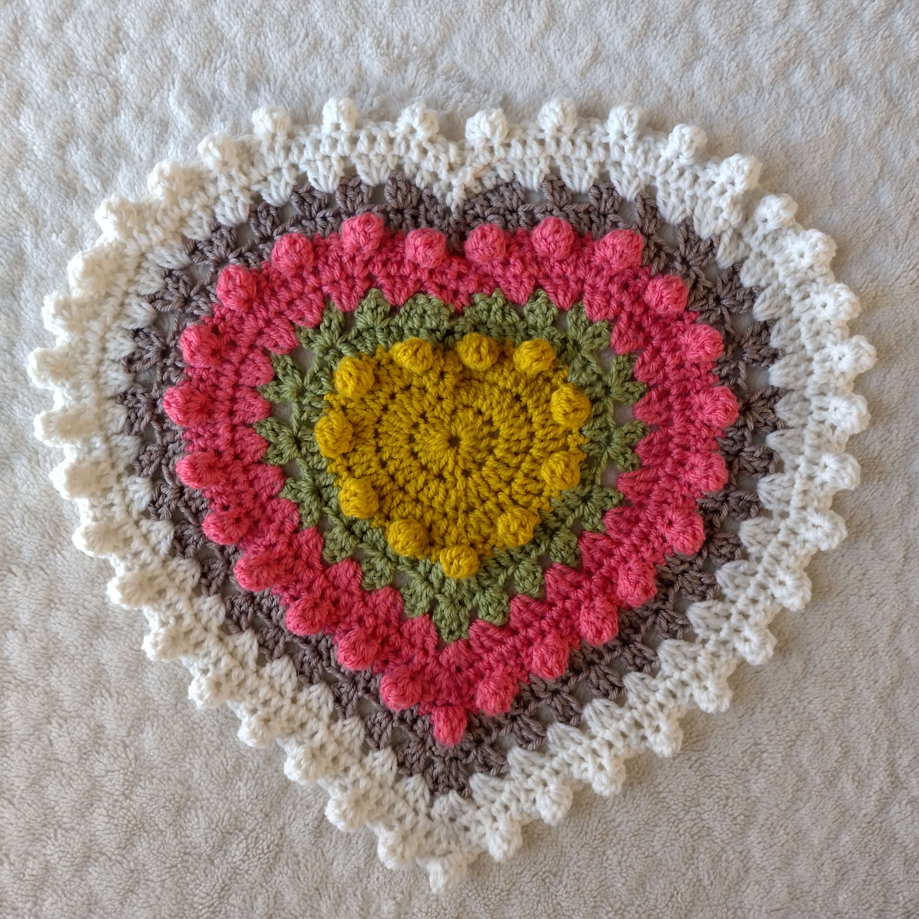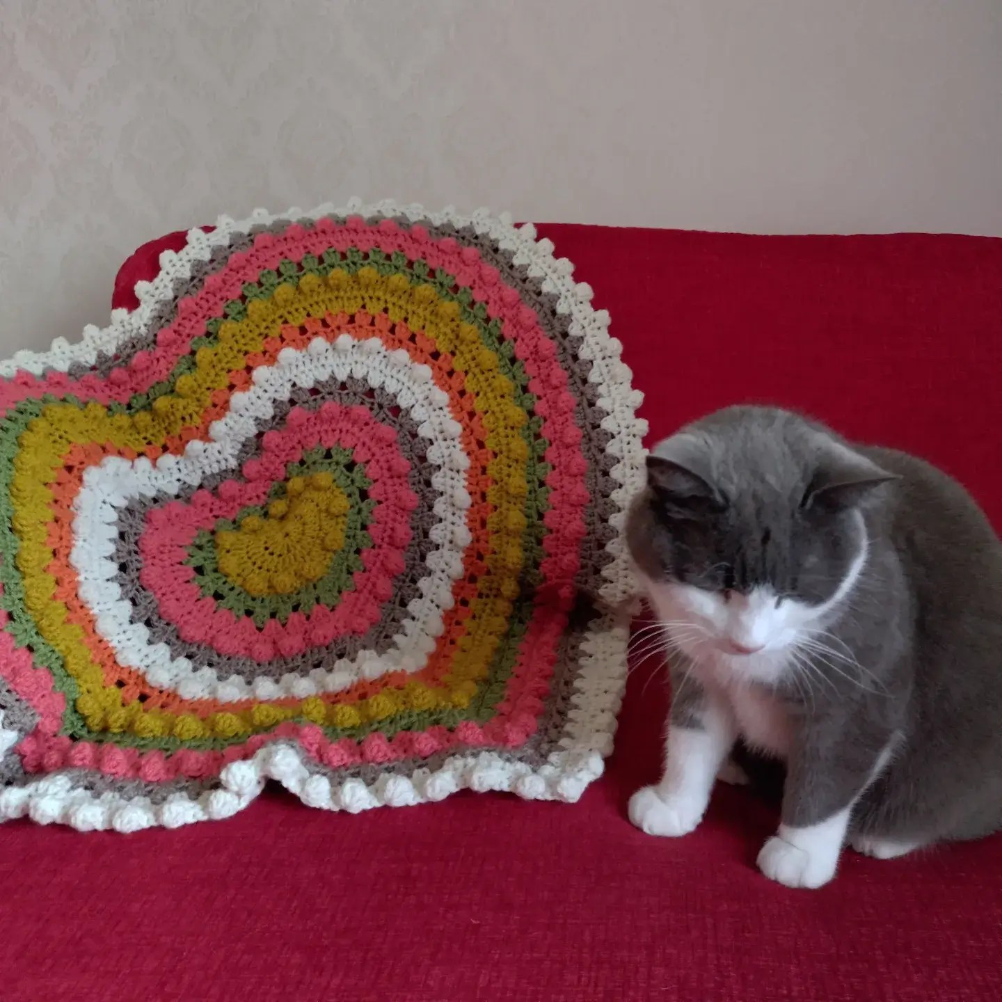 Create a stunning heart-shaped blanket with this intermediate-level crochet pattern! Designed with care to achieve the perfect shape, this cozy and stylish blanket features granny clusters and bobble stitches arranged in concentric hearts, bringing texture and warmth to any space.