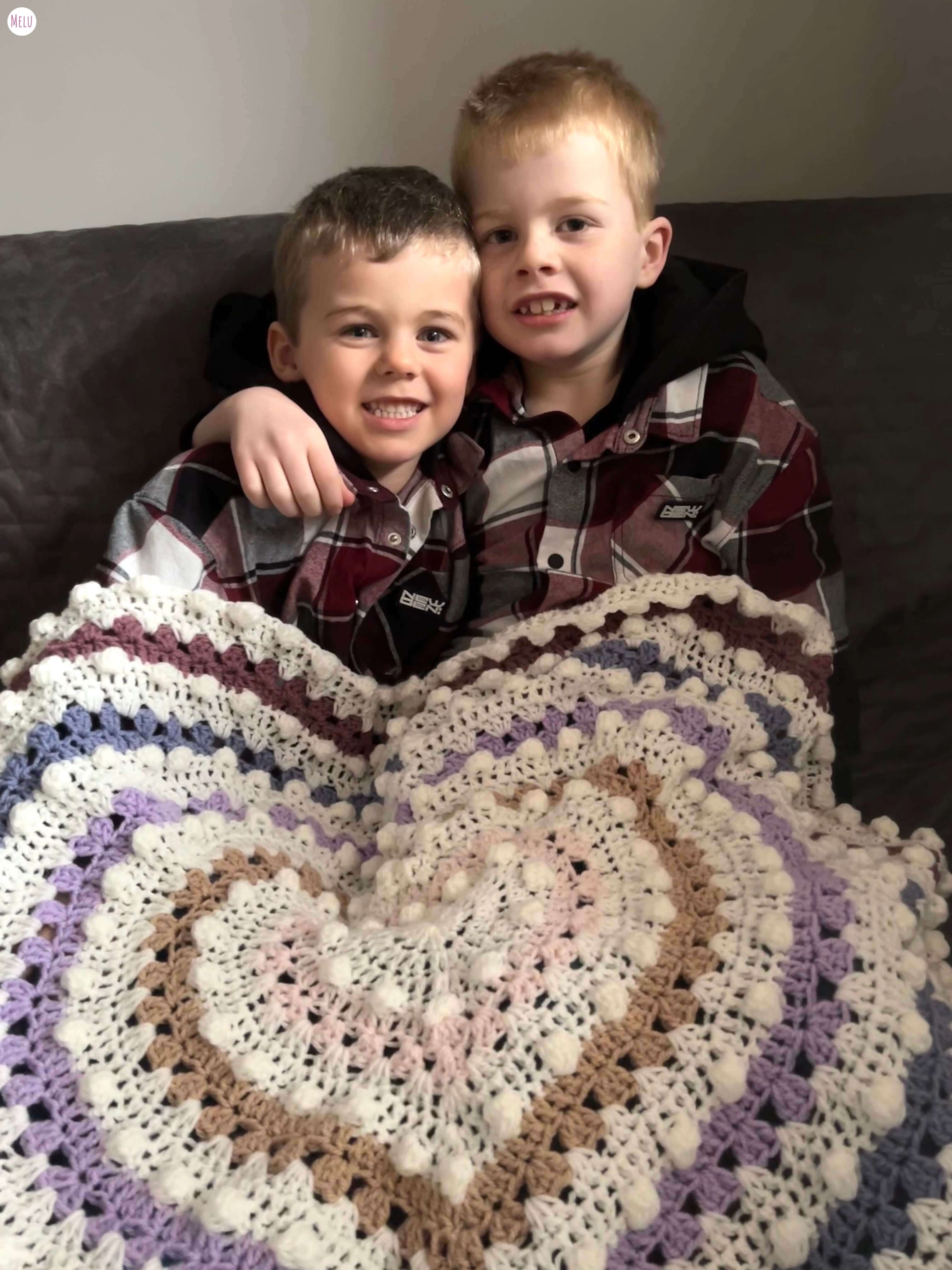 Leanne @Hooked.by.leanne has used up some of her yarn stash for this amazing blanket! I love the colour combination and your lovely models too