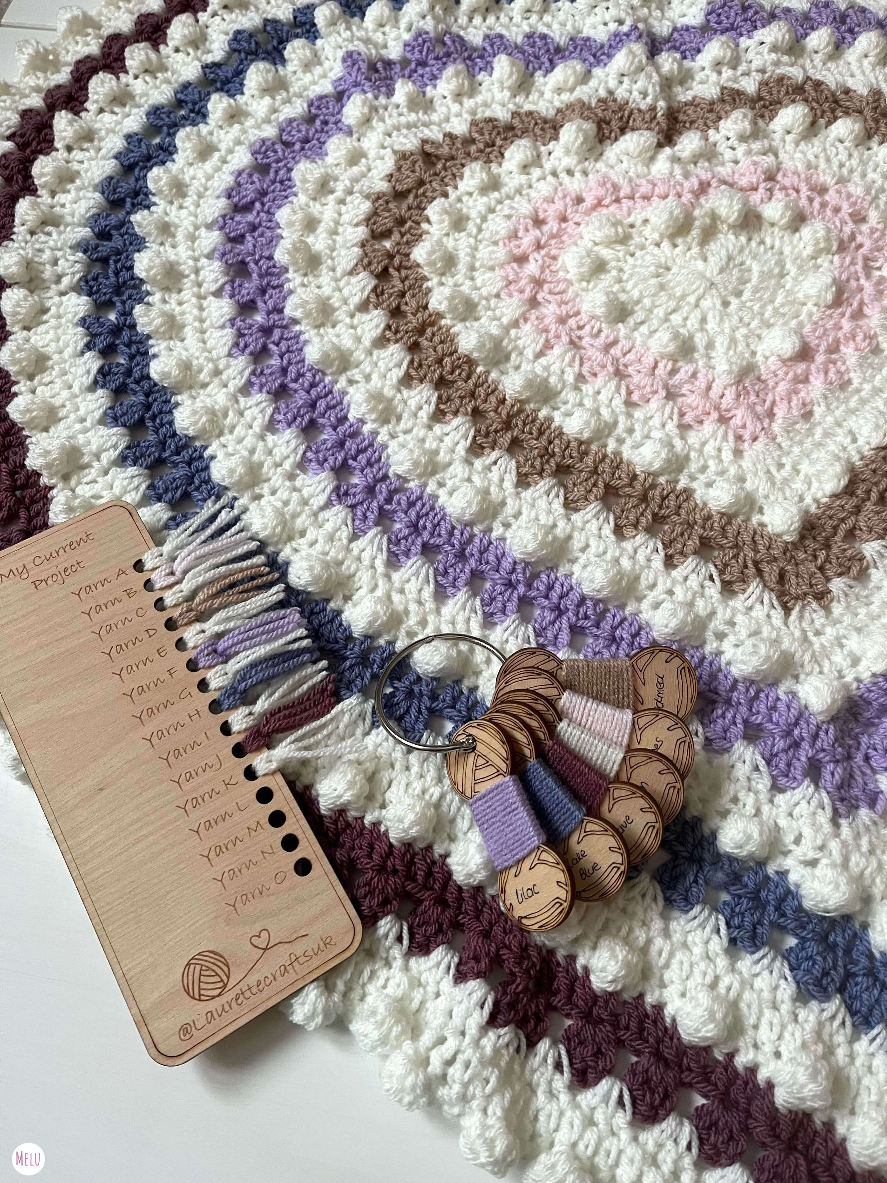 Lydia @laurettecraftsuk has used @knitsirdar Hayfield aran for this lovely blanket. Notice too her brilliant laser cut accessories, I bought my shade card from here and I love it!