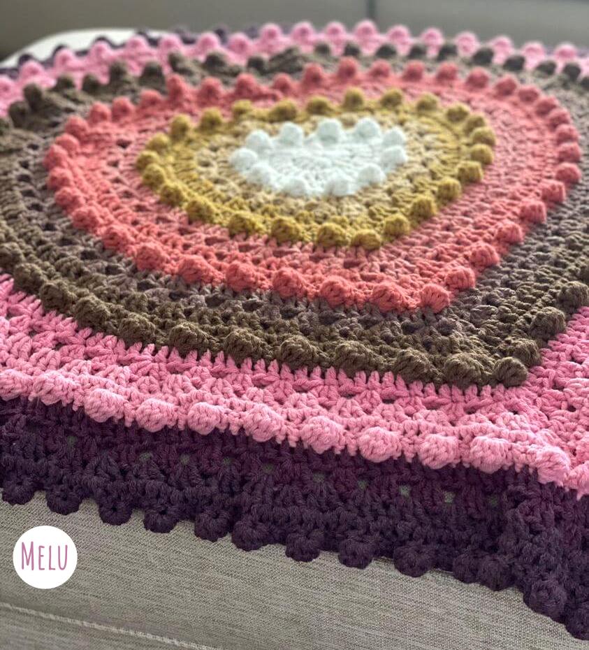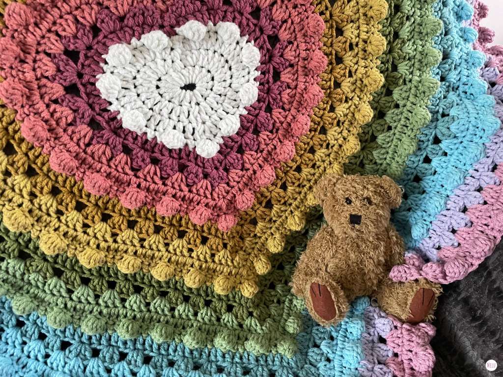 This pattern includes a step-by-step photo tutorial for the bobble stitch, ensuring clear guidance as you crochet. The bobbles are worked directly into the blanket, meaning they won’t shed or fall off over time.