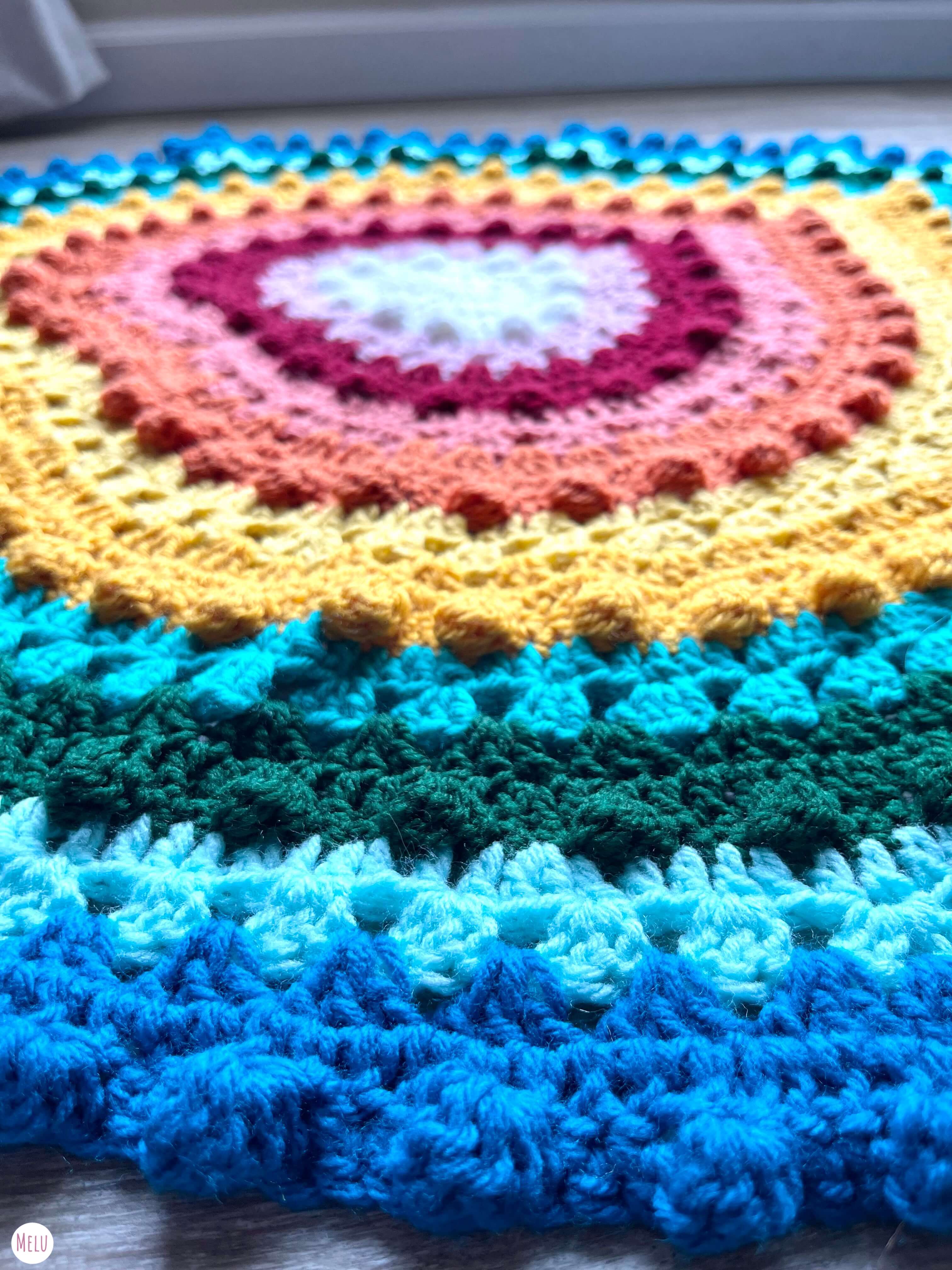 Helen @snapdragoncrochet83 has used classic bright rainbow colours in blocks, stunning!