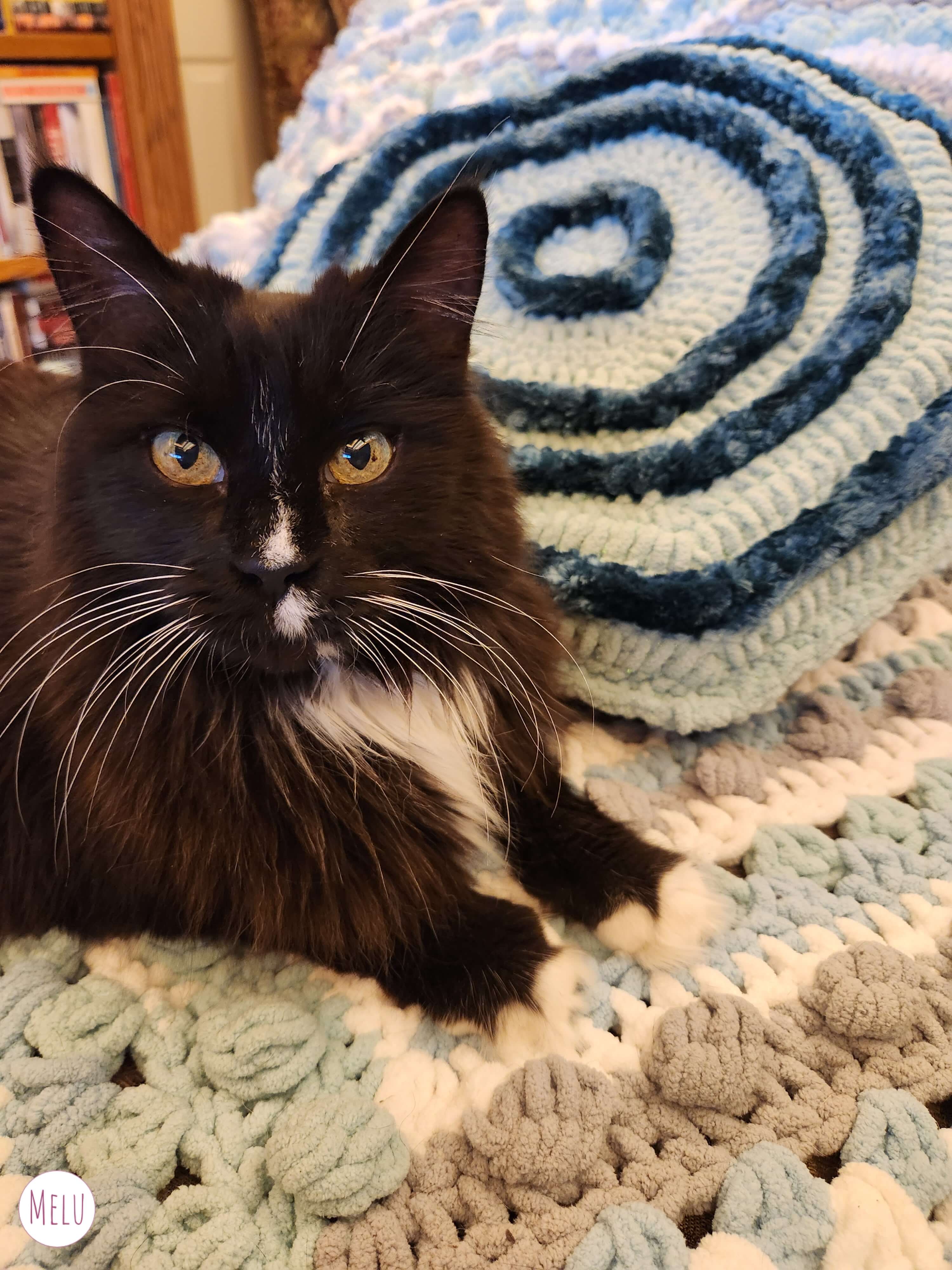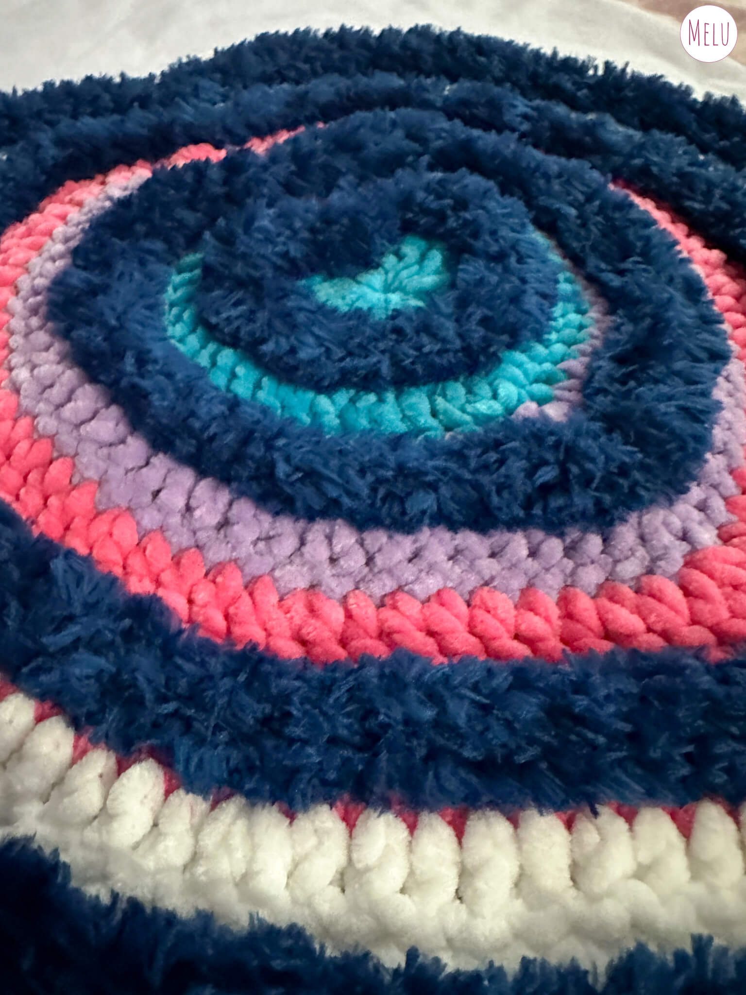 Alexandra @andromedariddle has made this lovely pillow using Malabrigo Rasta, Lion Brand Fun Fur, and Loops&Thread Chenille Slim. The variegated fluff looks so good!