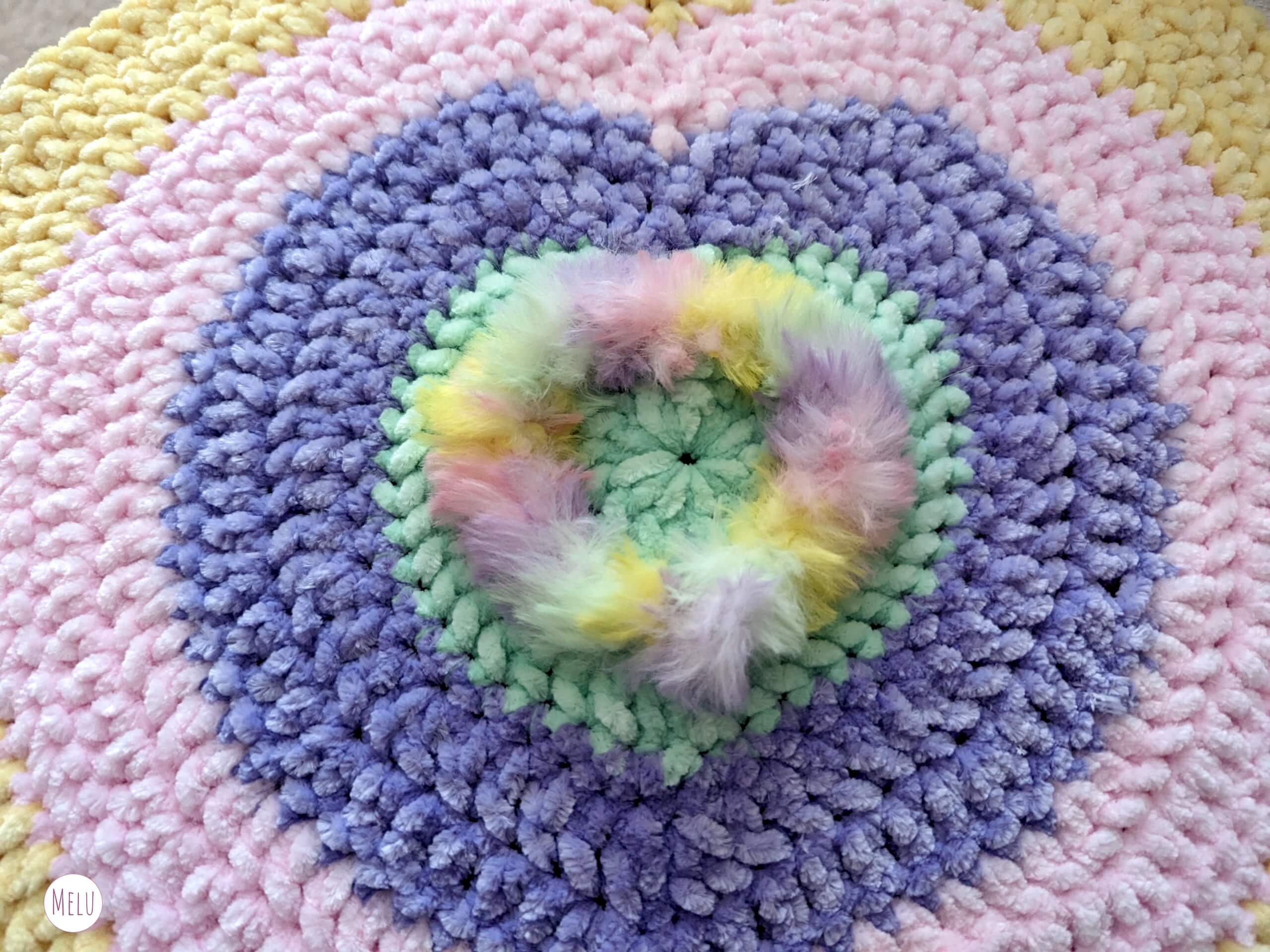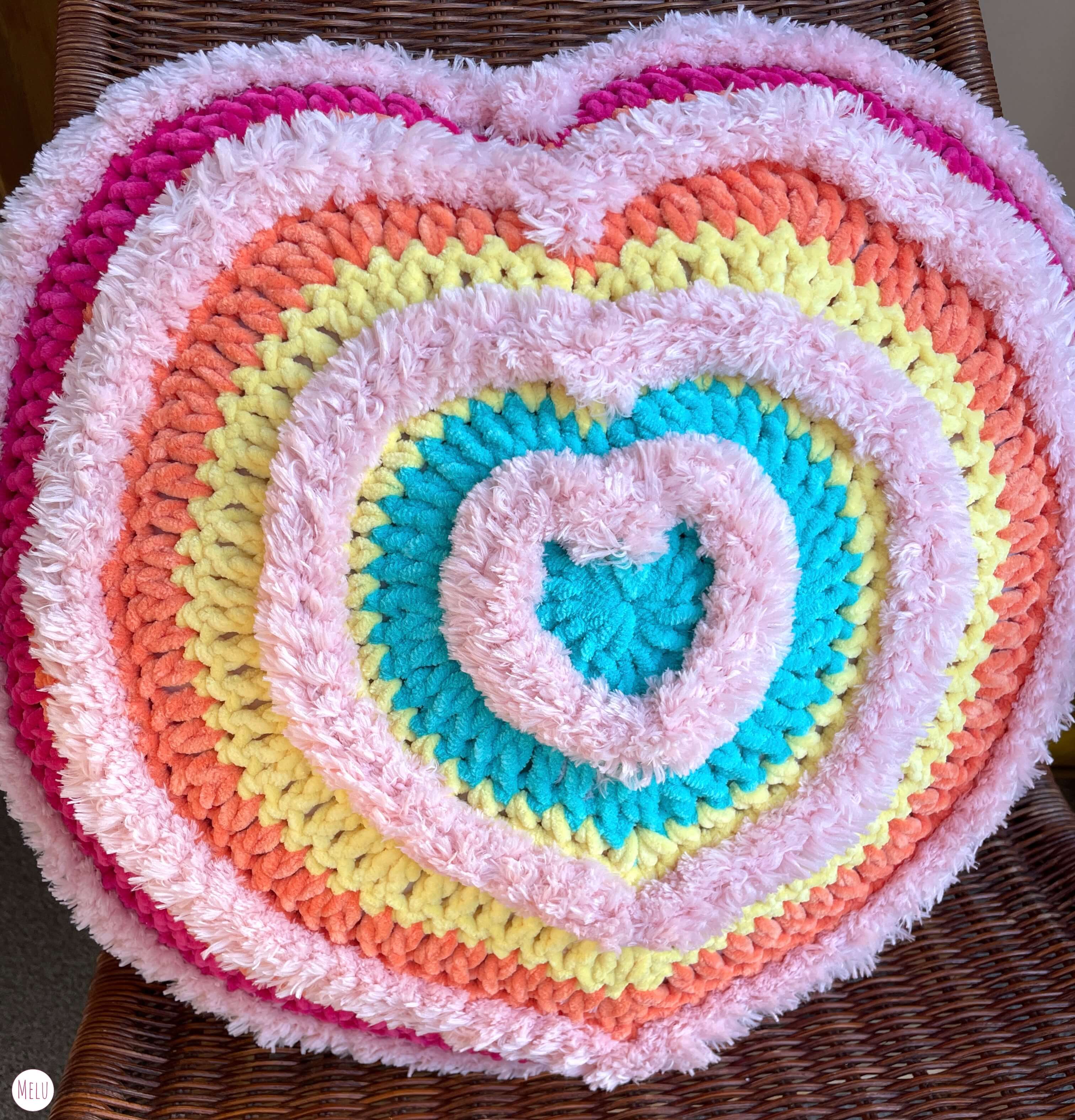 Full photo guide is included for the techniques used, you’ll soon have a stunning Heart Fluff Pillow to cherish!