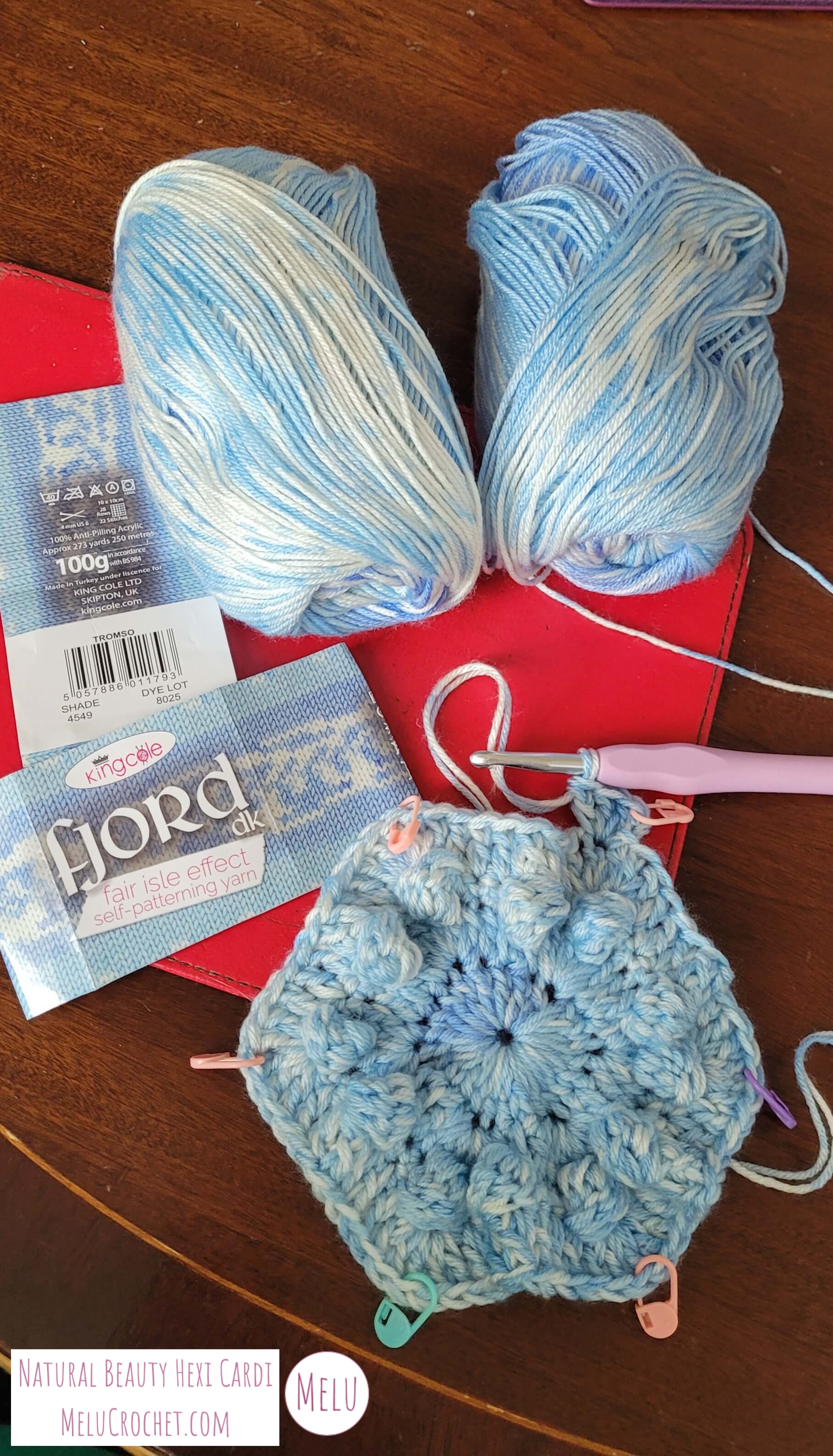 King Cole Fjord DK – Tromso (4549) – 100g DK yarn and was using double strand and 6.5 mm hook