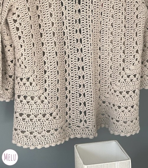 The pattern was easy and fun to follow, pictures for every step and what I really appreciated was the colour coding for sizes but also for stitch markers. Beautiful job creating this light cardigan!