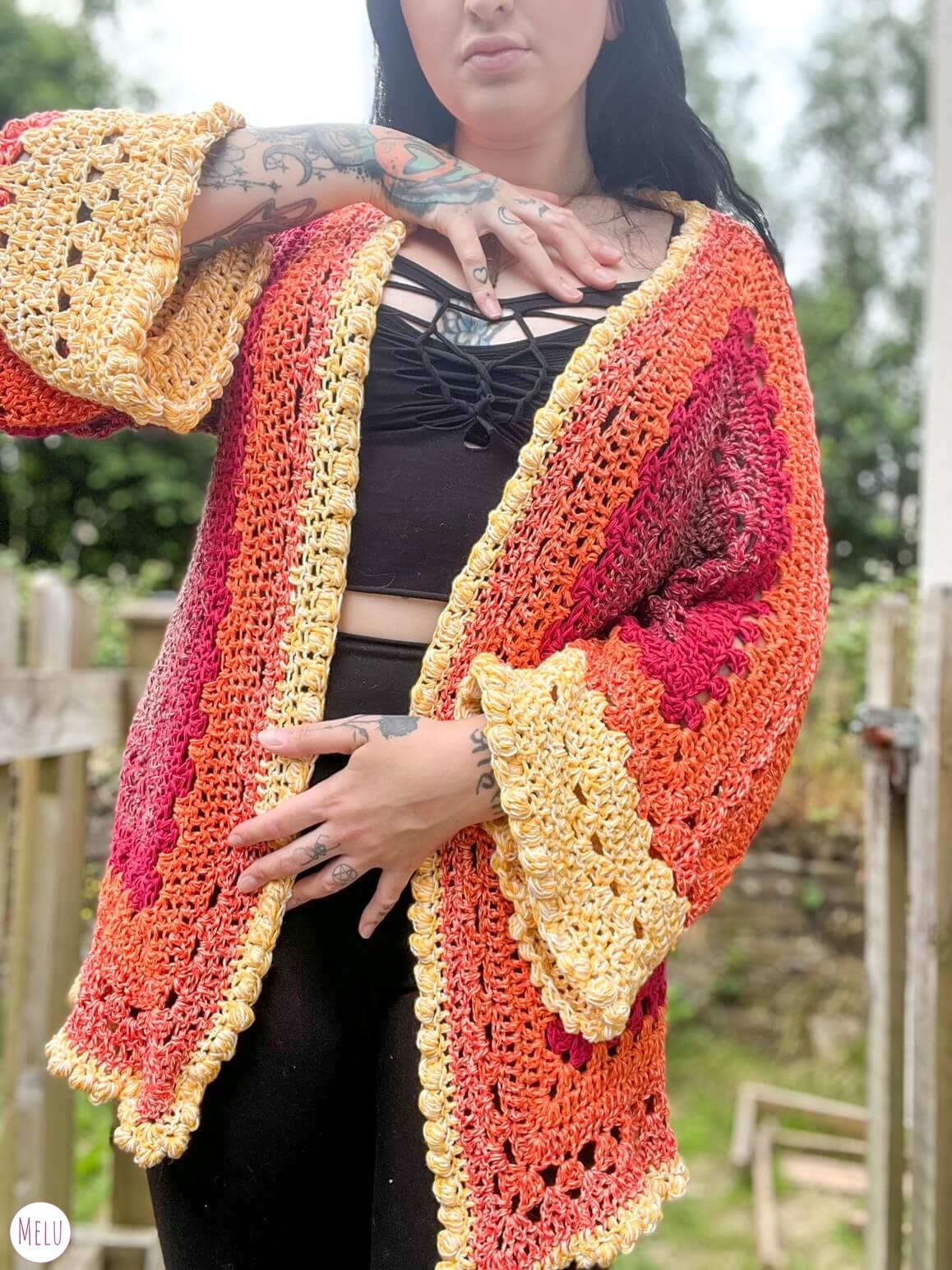 Crazy Hexi Cool Cardi Pattern by Melu Crochet