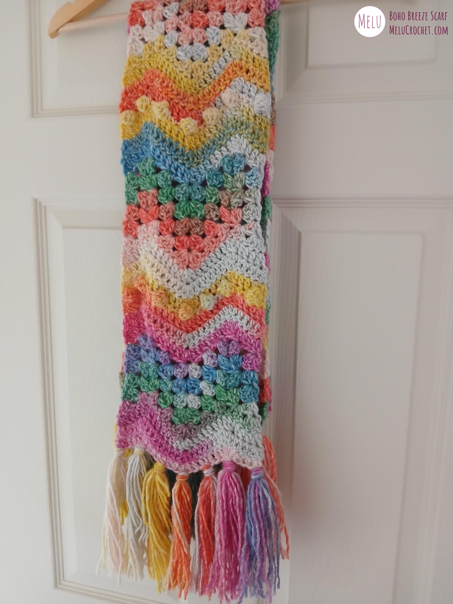 The Boho Breeze Scarf pattern is now available in English in my Etsy, Ravelry , Lovecrafts, and Payhip and in English and German on Hobbii