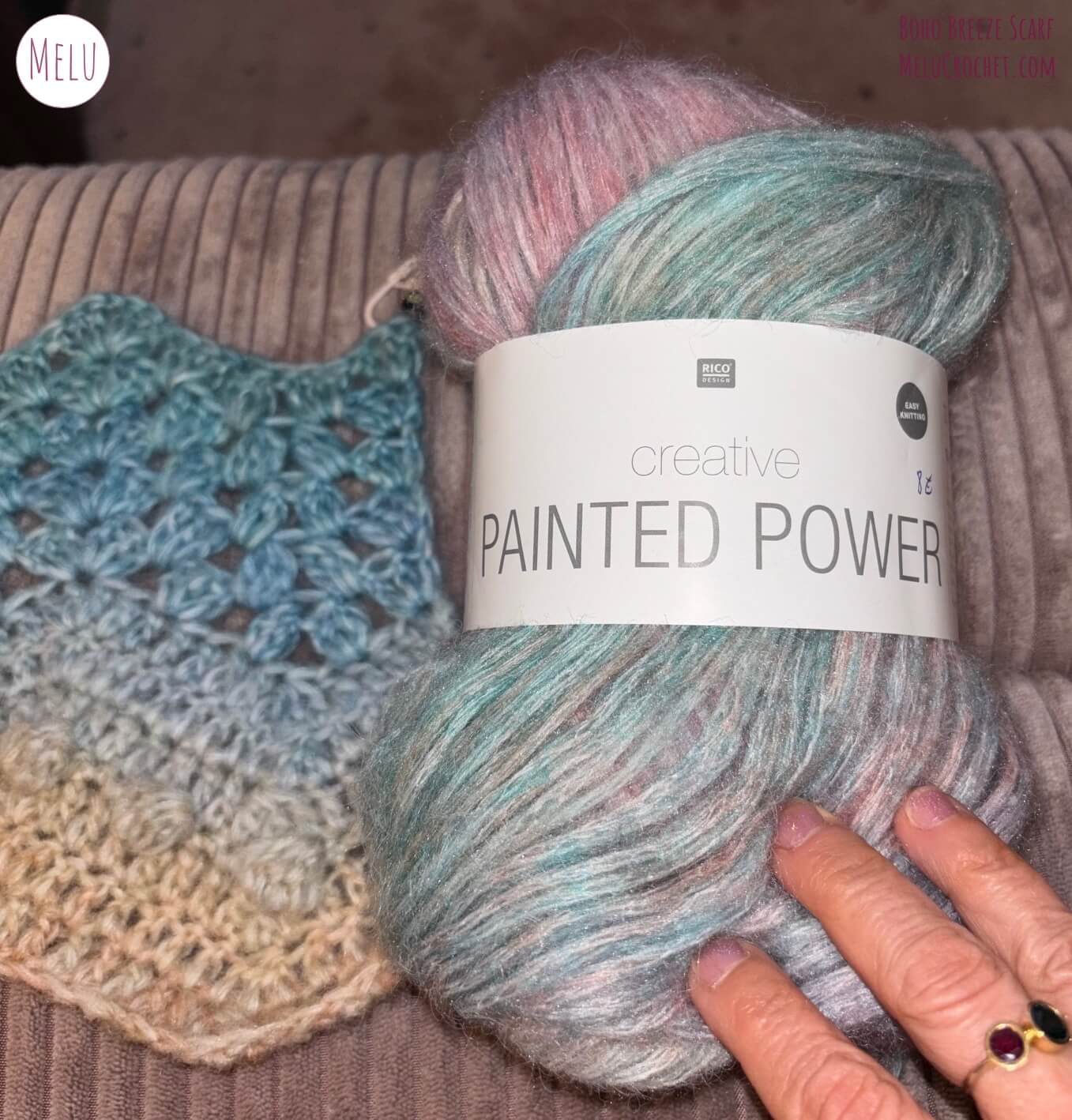 Di @CoolCrochetbyDi/ Used a Temu yarn called Scenery, 160 metres, 1 and half balls. A mix of wool, cotton & acrylic.