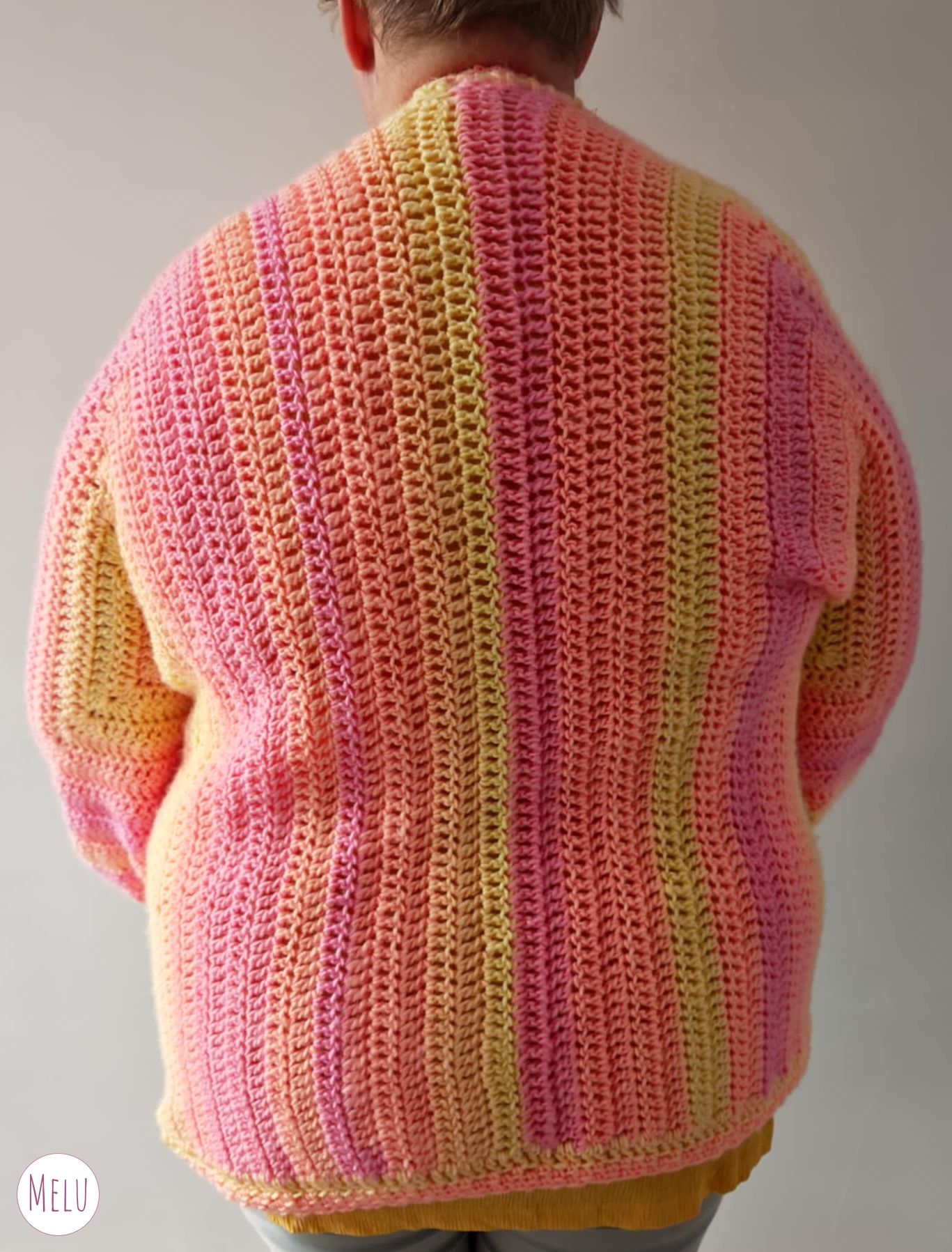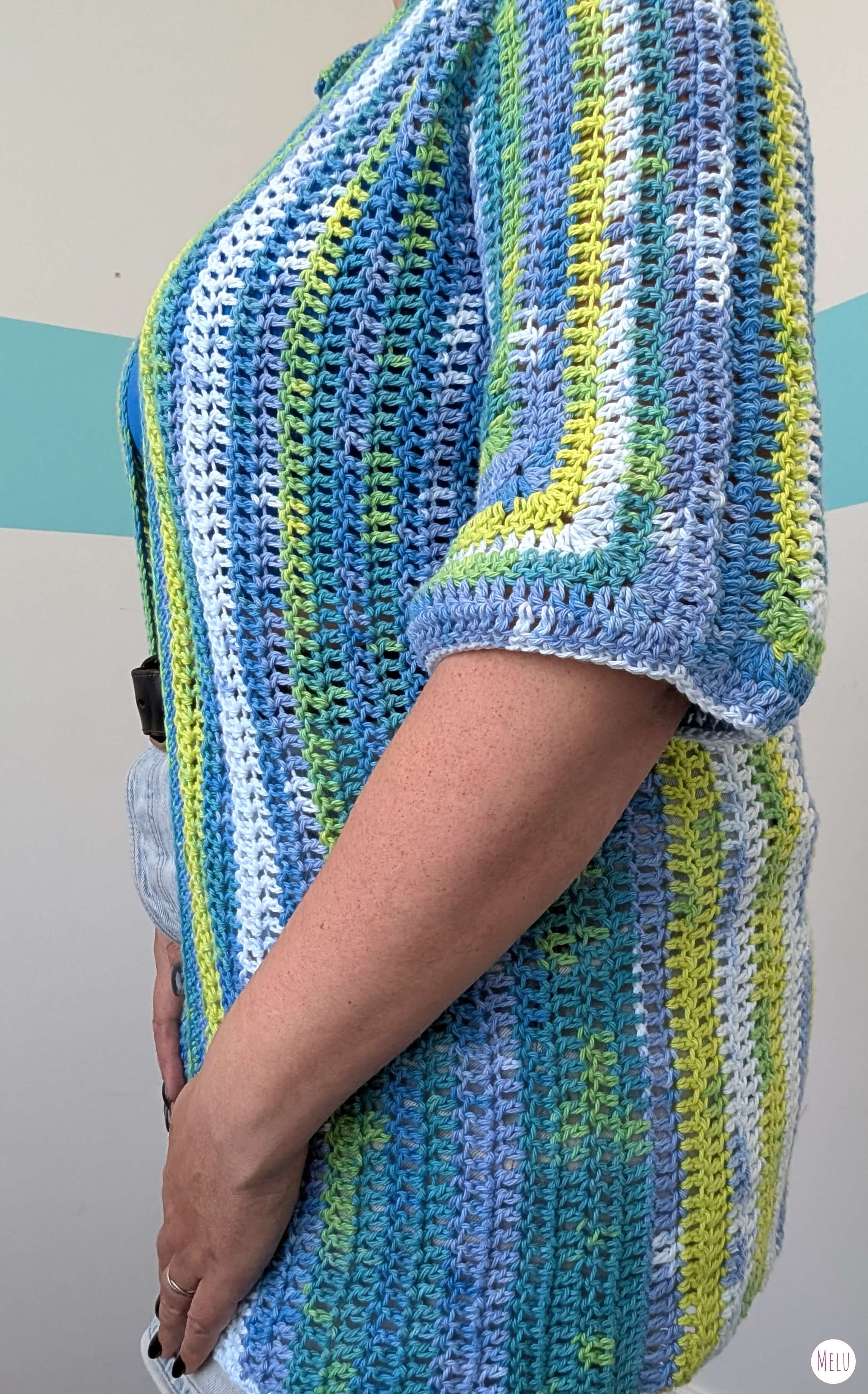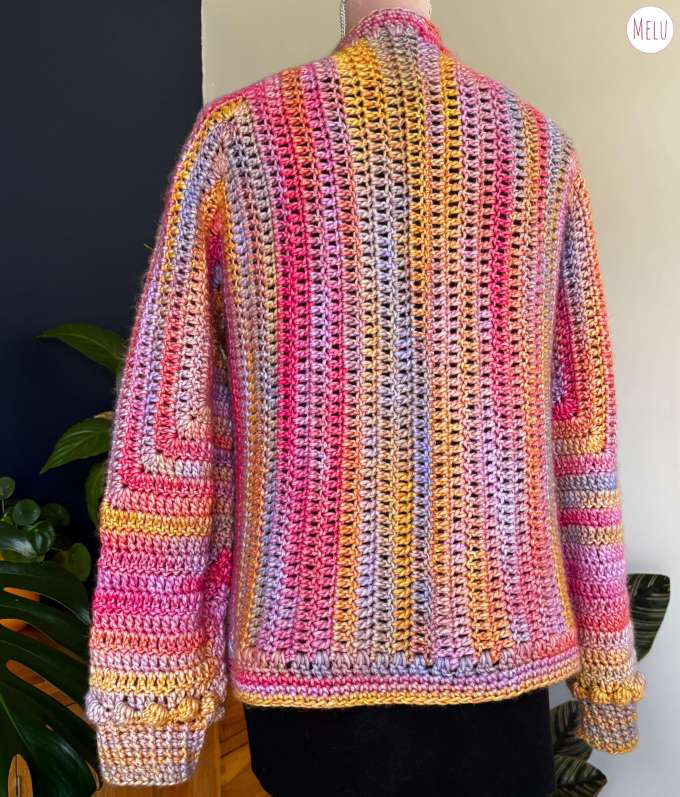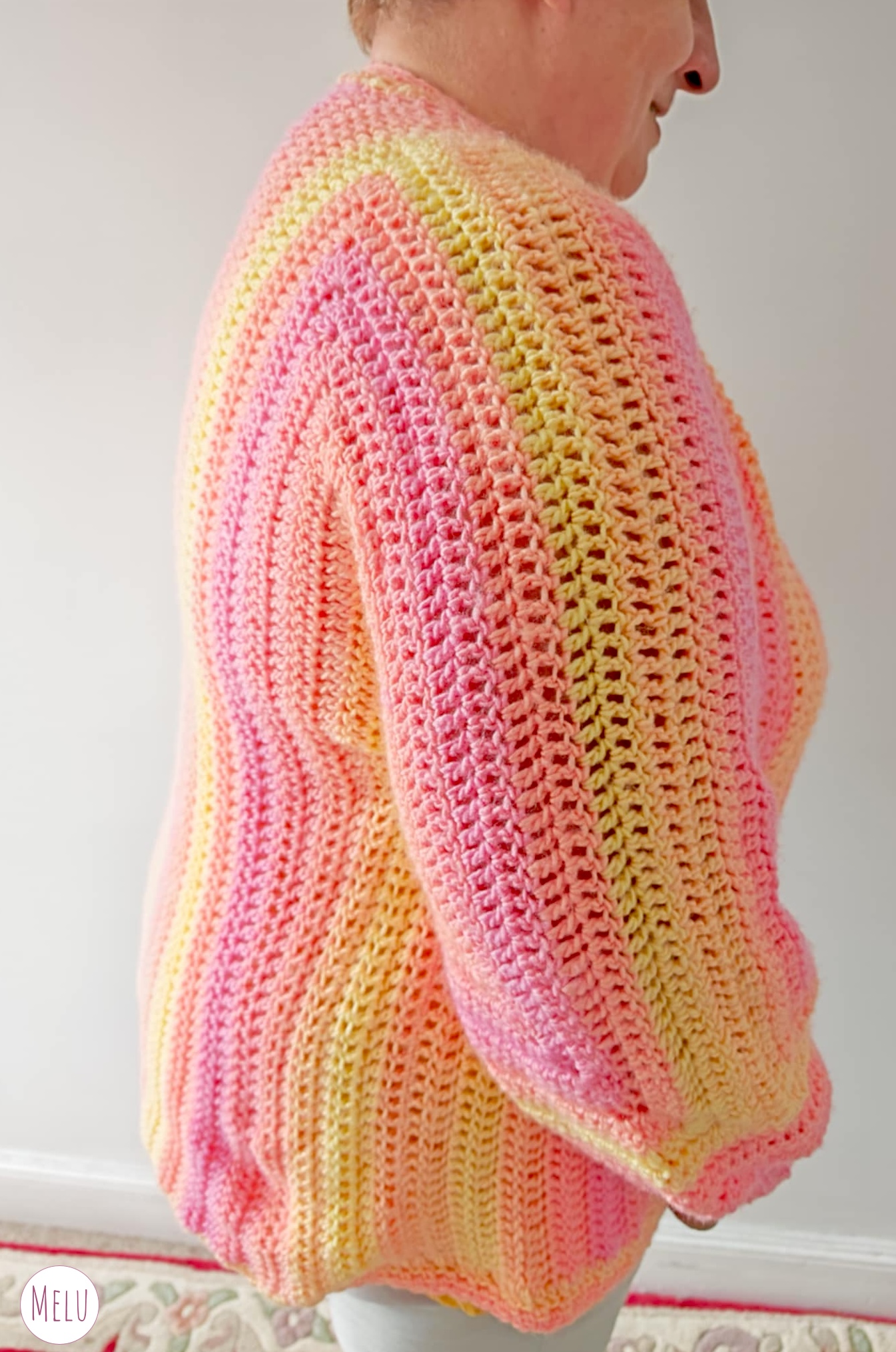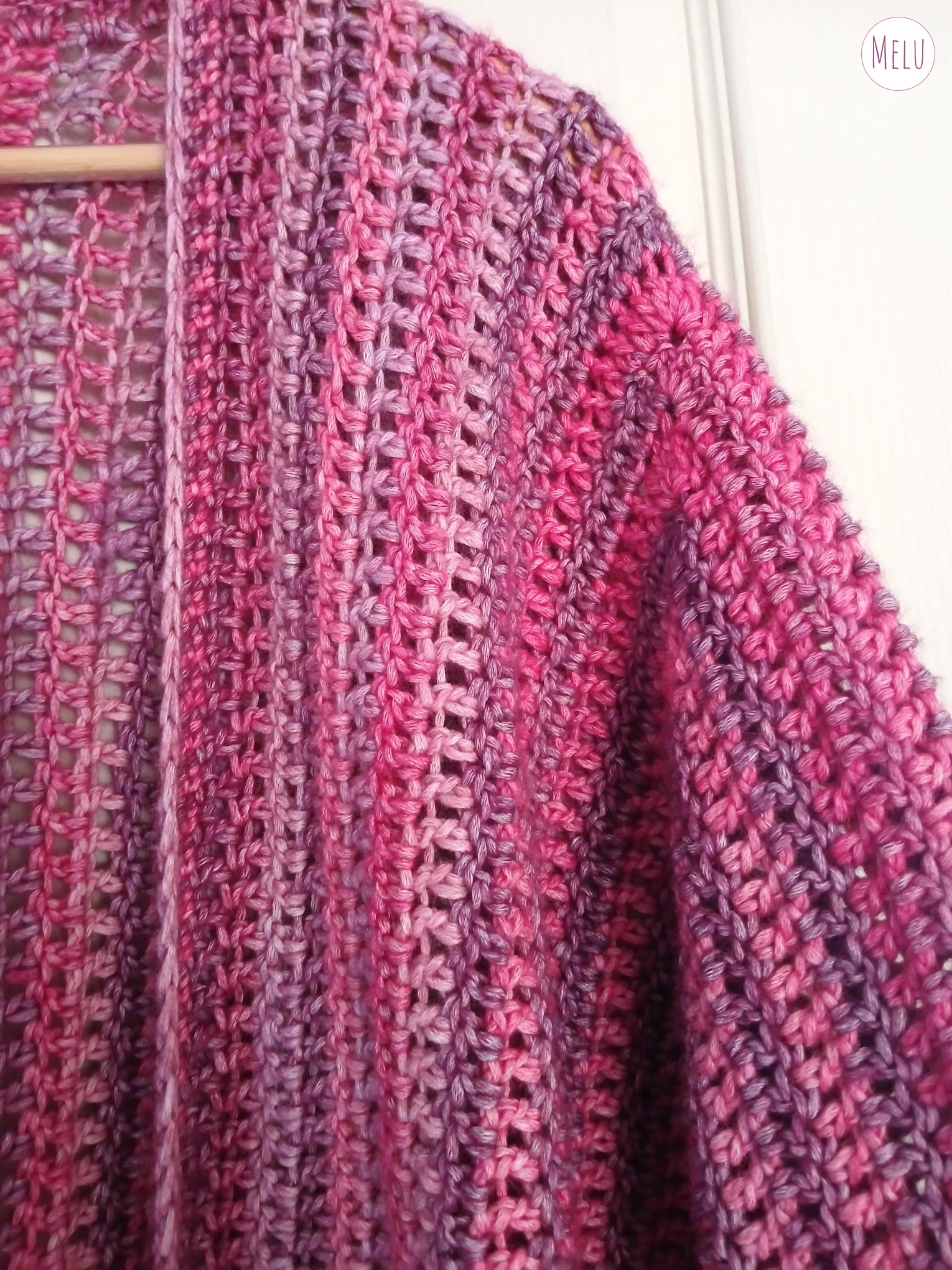 I wanted to design a cardi that felt approachable for everyone, whether you’ve made lots of garments or are picking up your hook for your very first one. The elongated hexagon construction keeps things simple while giving you plenty of room to customise, from cropped to floor-length, in your favourite yarns and colours.