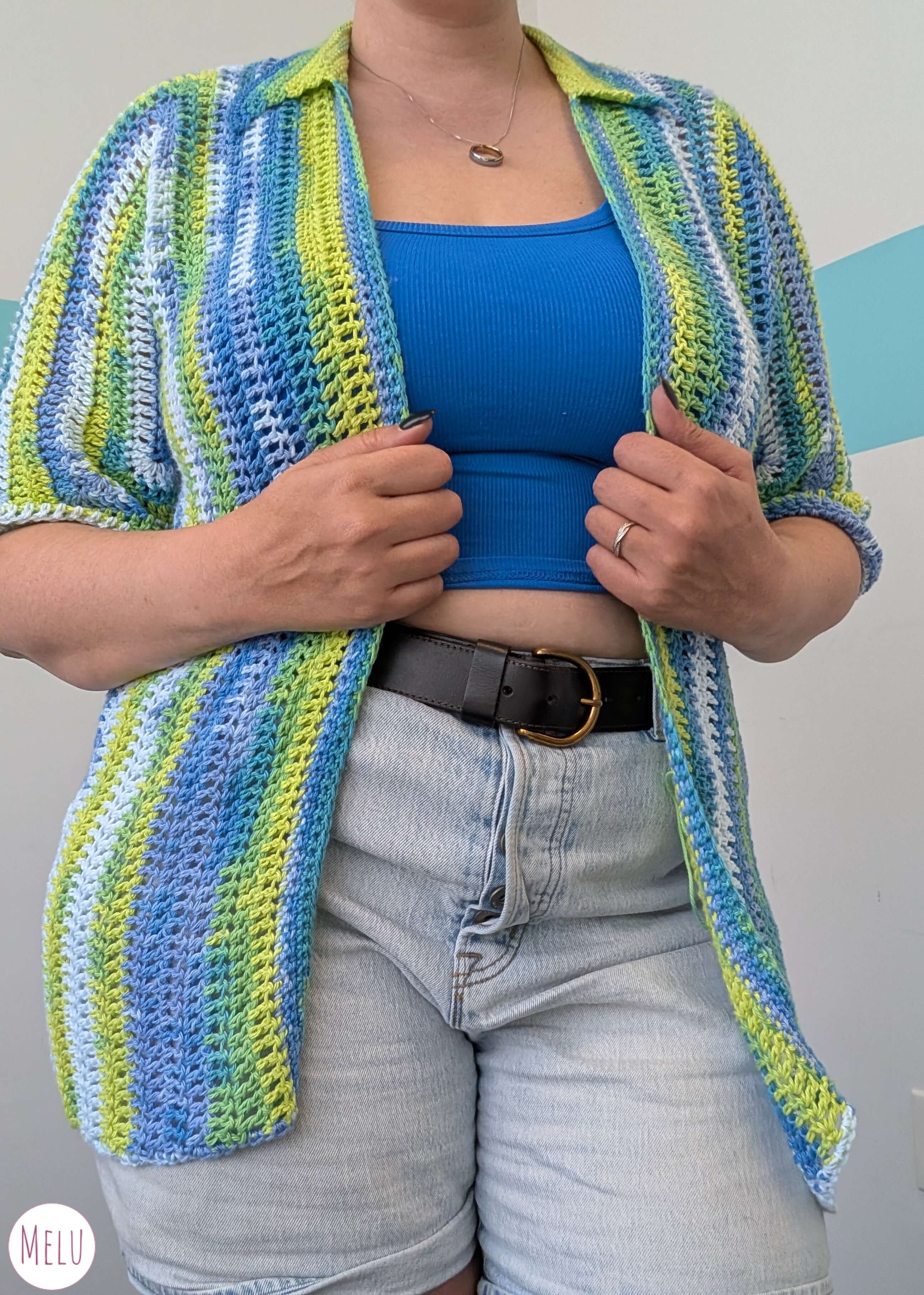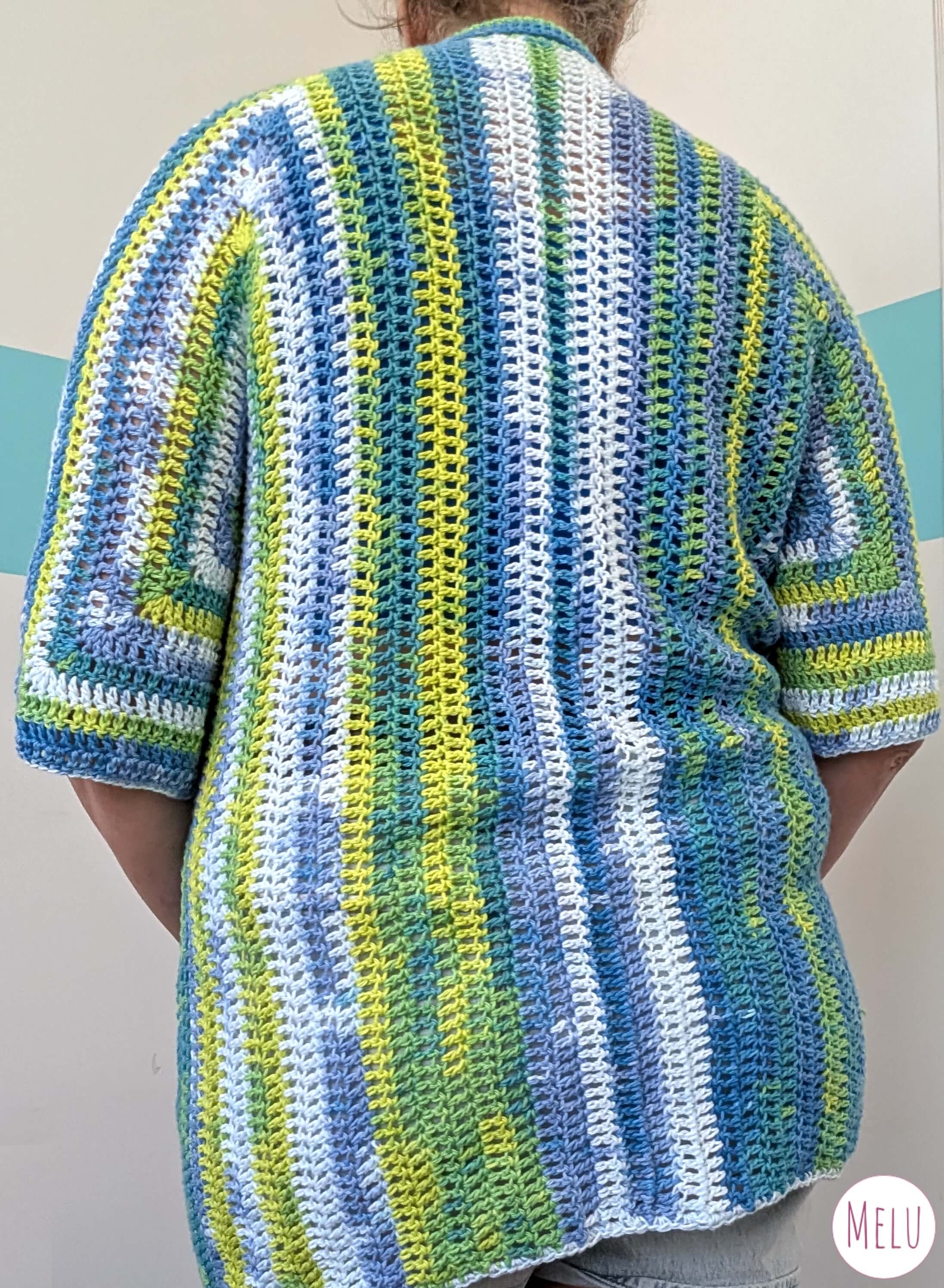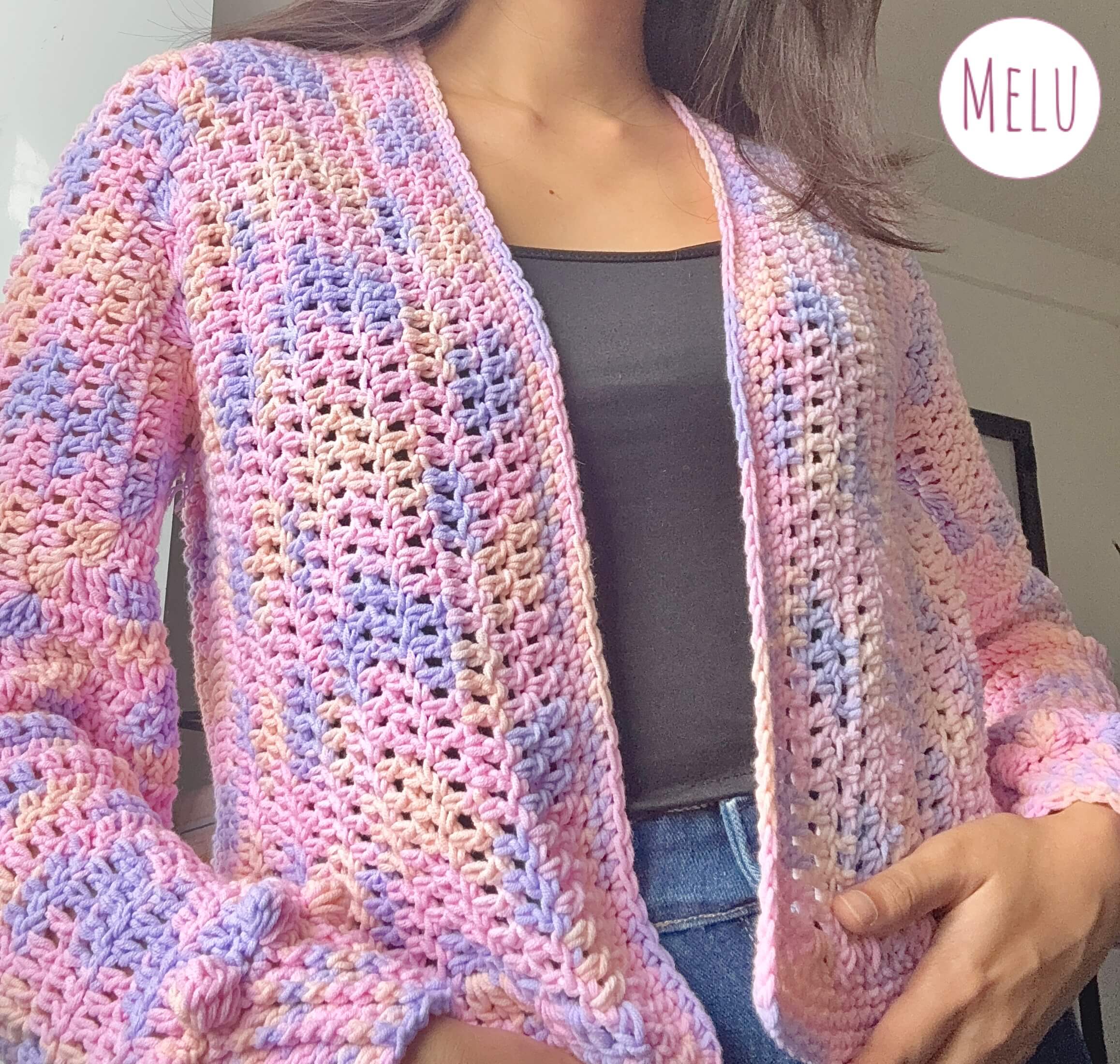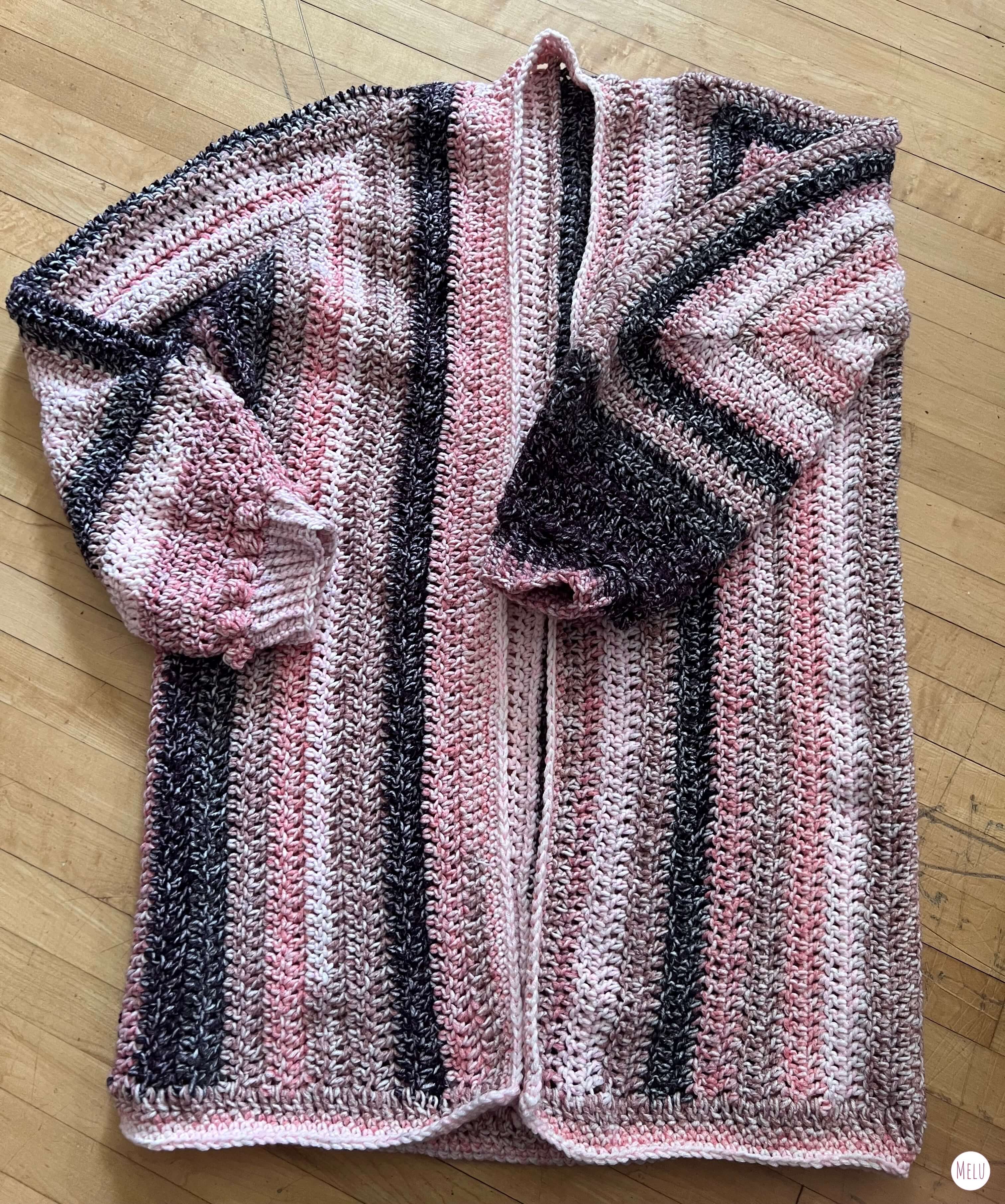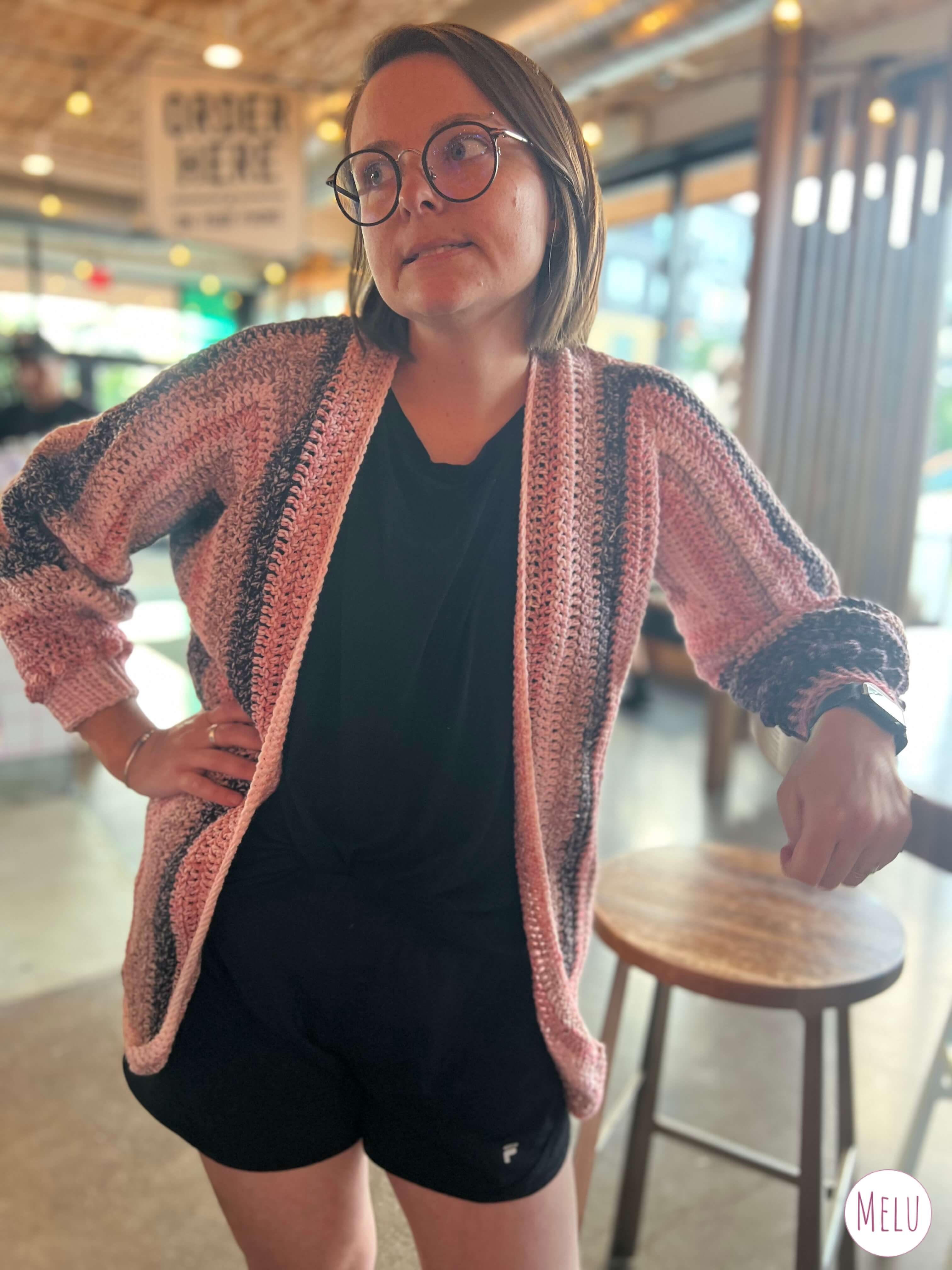 I wanted to design a cardi that felt approachable for everyone, whether you’ve made lots of garments or are picking up your hook for your very first one. The elongated hexagon construction keeps things simple while giving you plenty of room to customise, from cropped to floor-length, in your favourite yarns and colours.