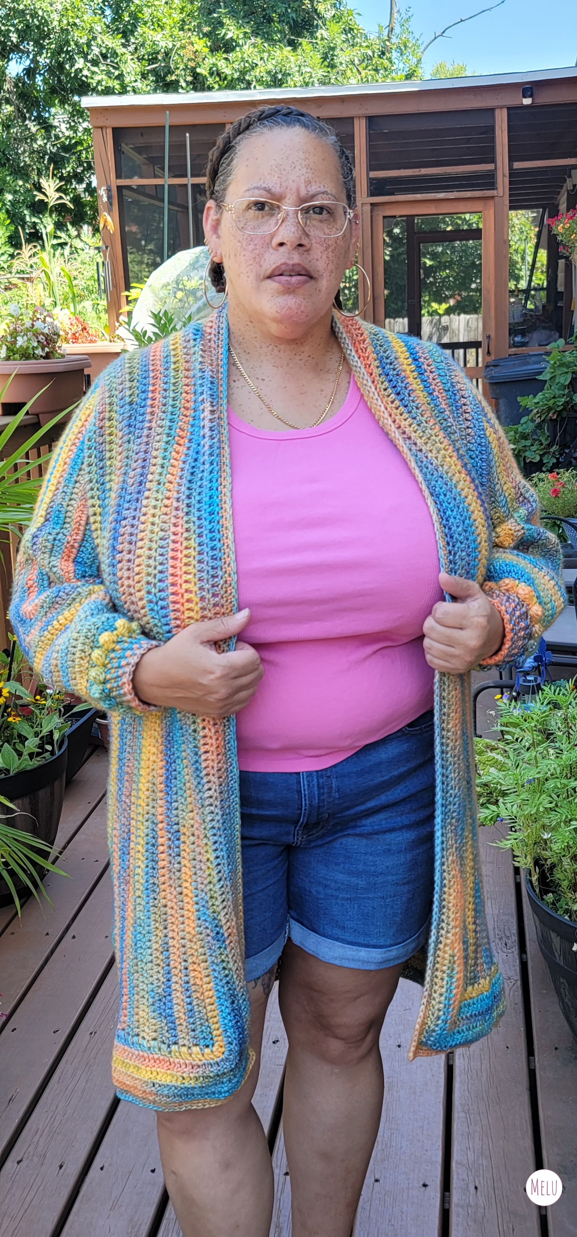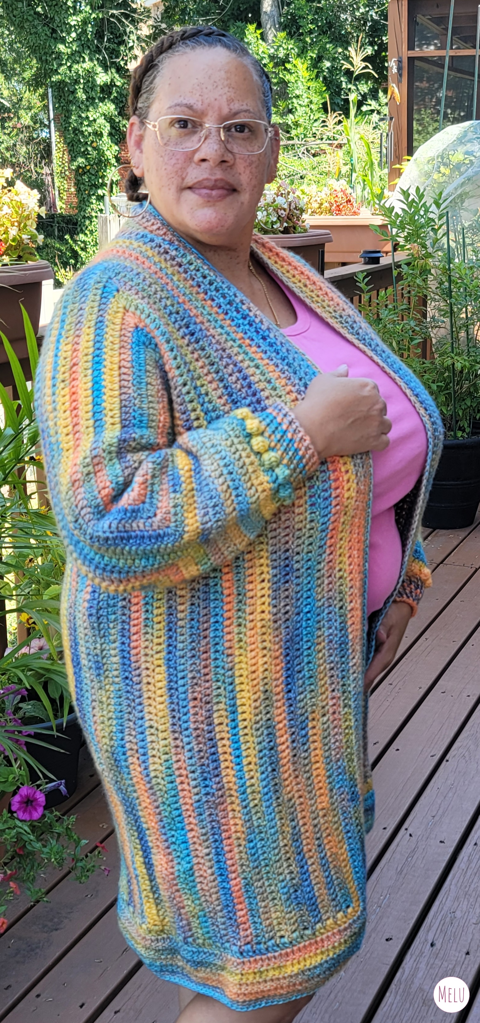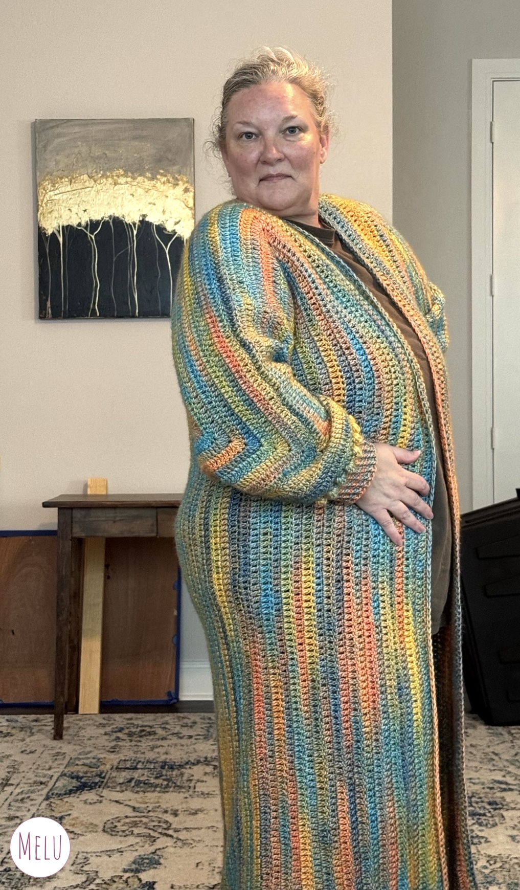 Solid Flexi Hexi Longline Cardi by Melu Crochet