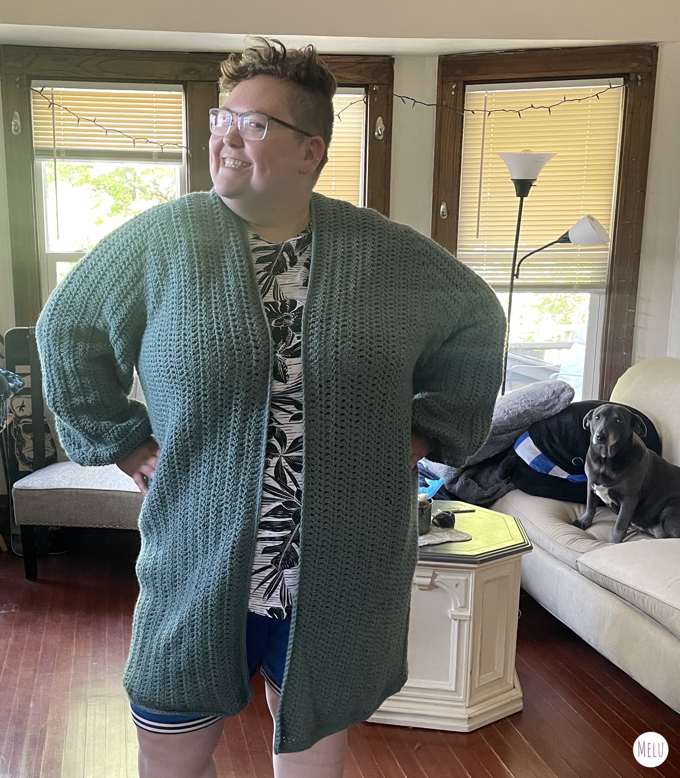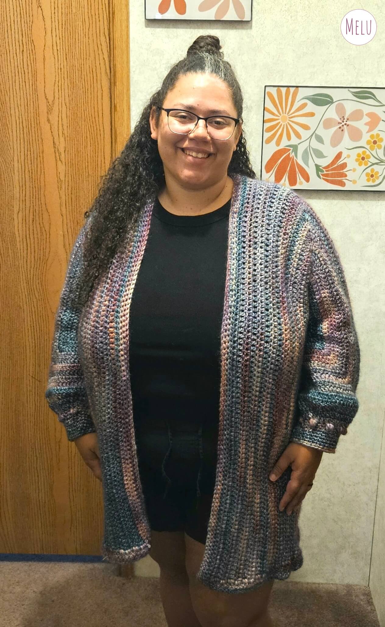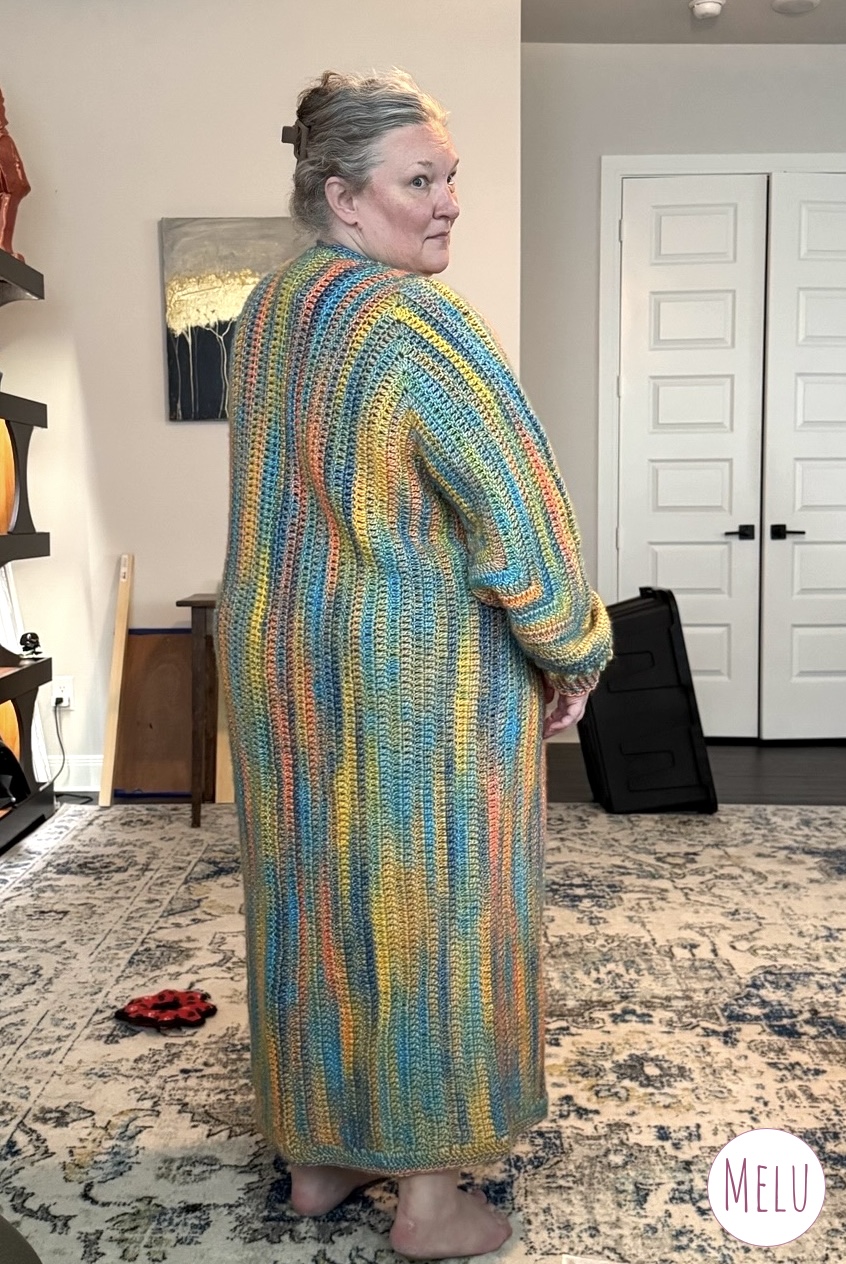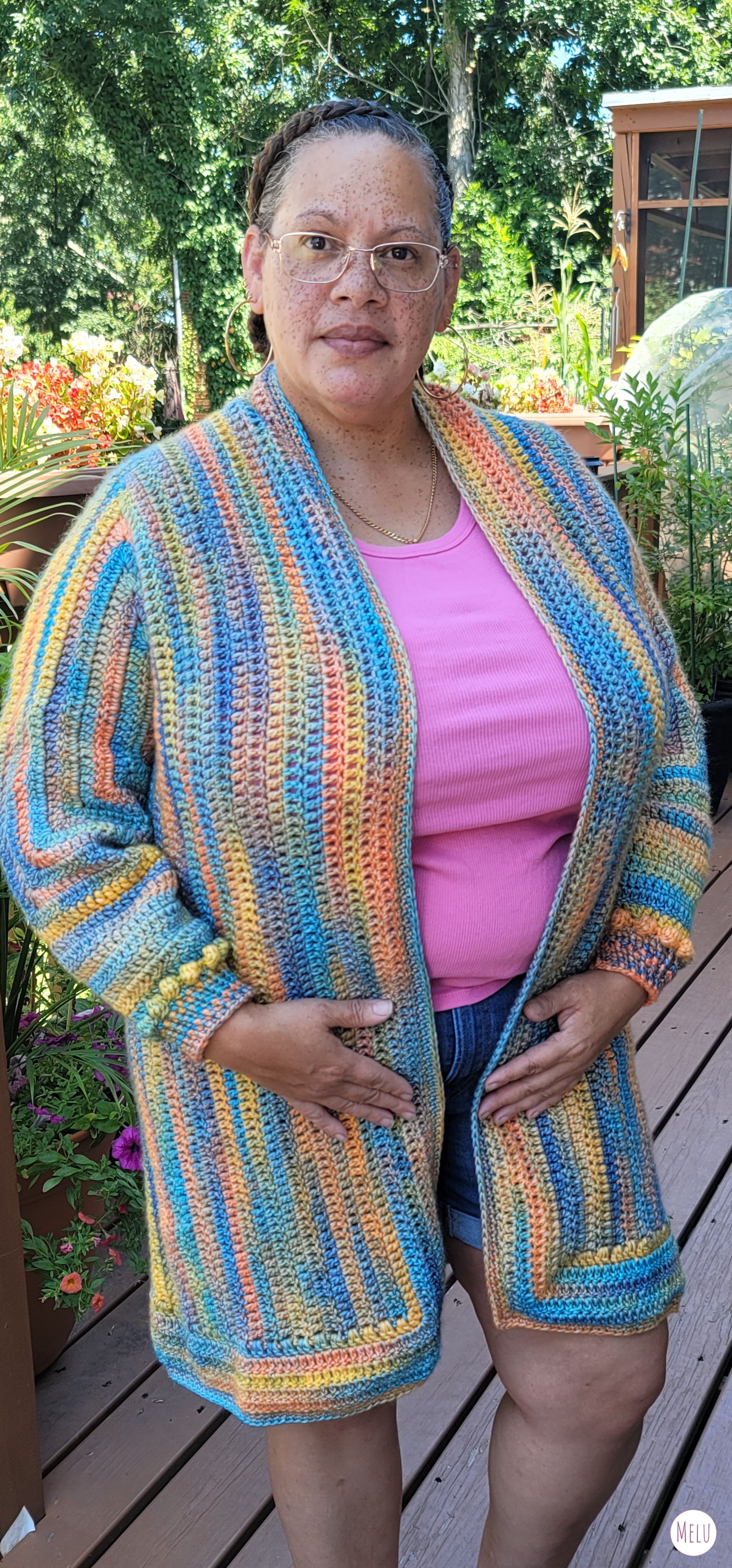 Solid Flexi Hexi Longline Cardi by Melu Crochet