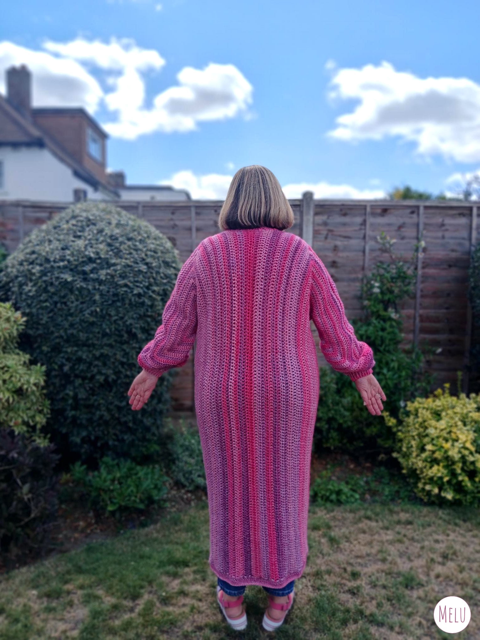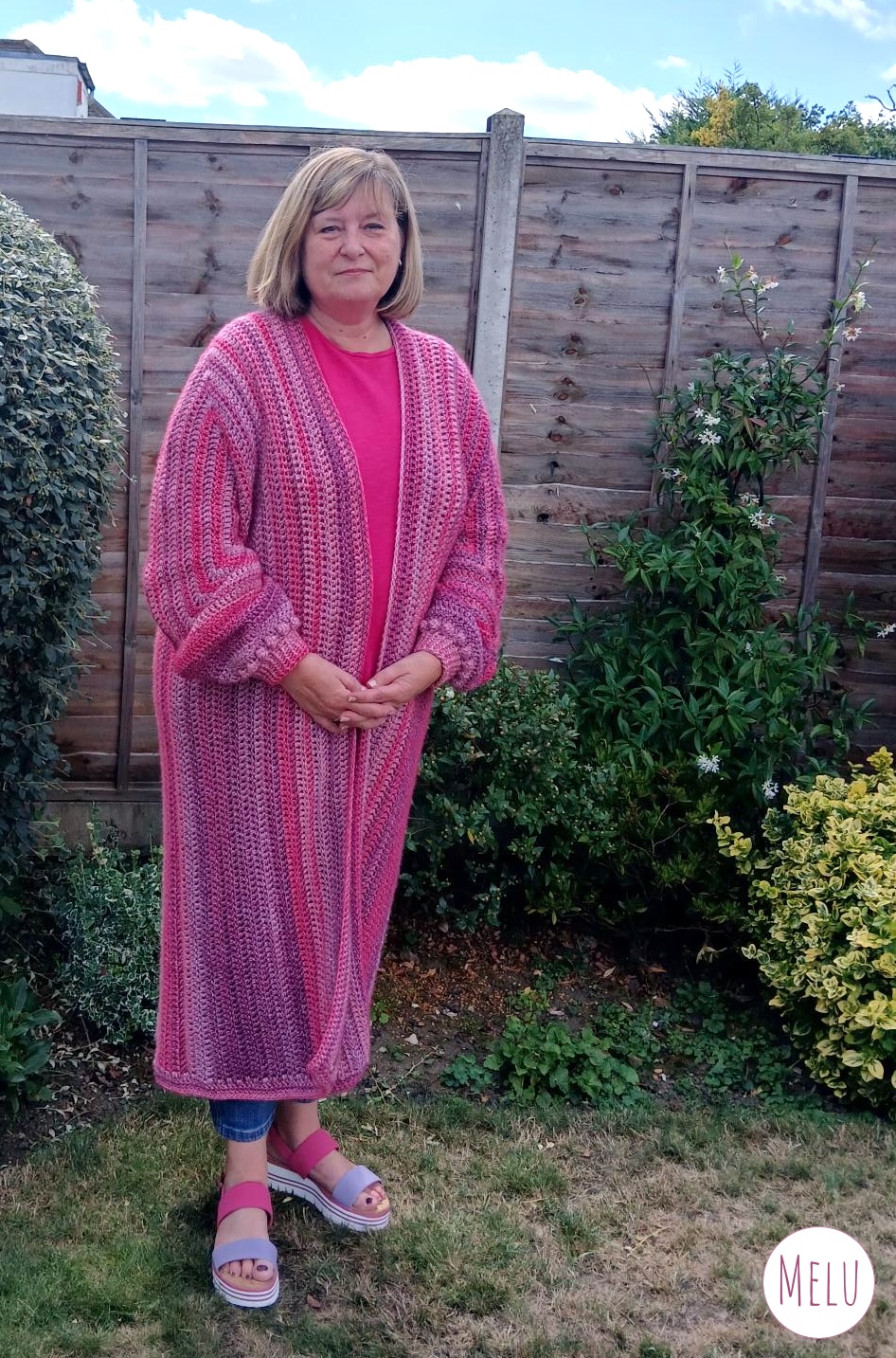 The pattern includes 11 lengths and five sizes, so you can make the perfect fit for yourself. Whether you fancy a cropped cardi, something mid-length, or a dramatic floor-skimming version, there’s an option to suit every height and shape.