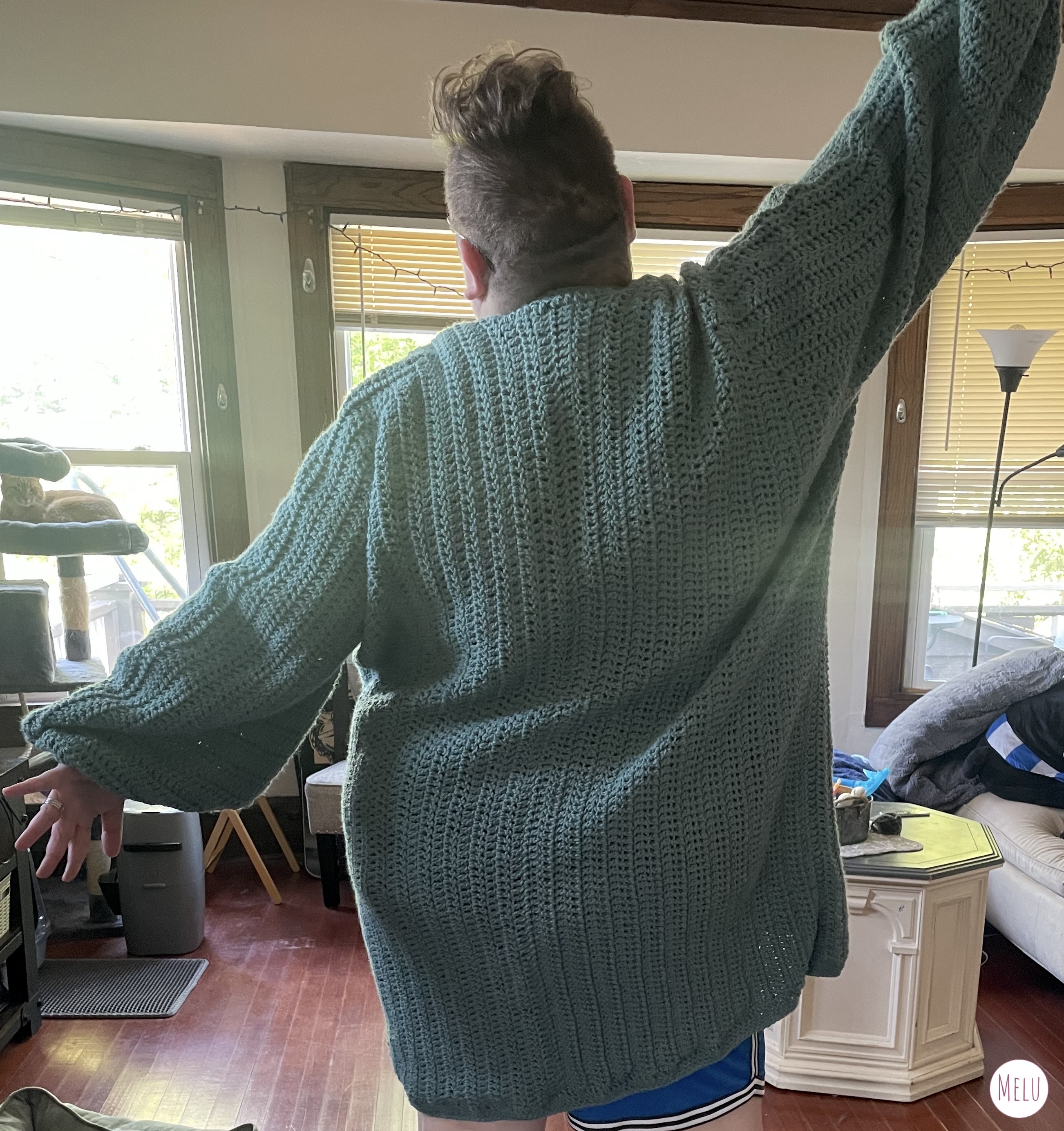 Kianna @Kianna_webb made size XL/2X and length D using Lion Brand Yarn Landscapes Breeze in Rainforest