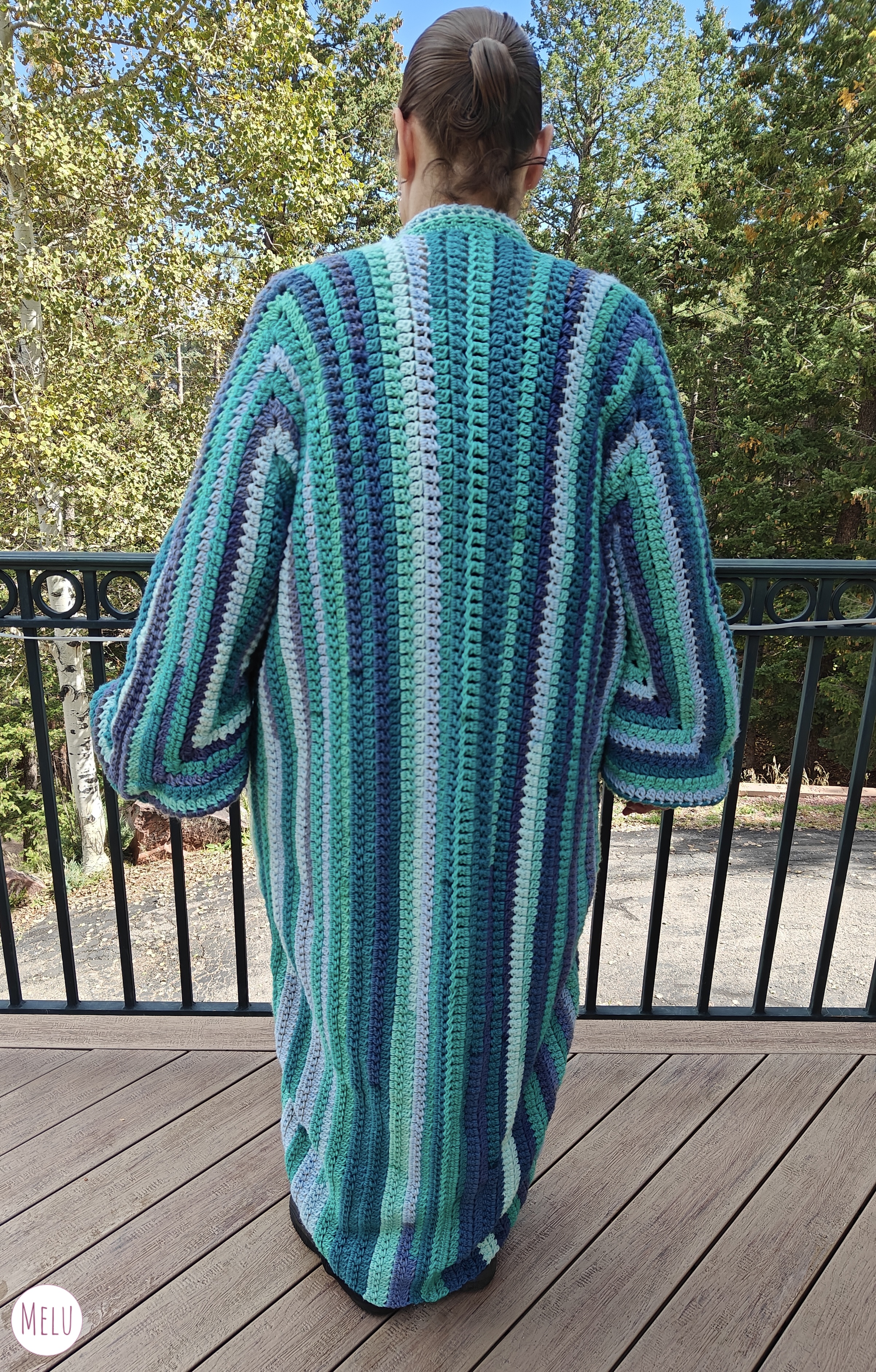 This design puts a fresh twist on the classic hexi cardi, starting with an elongated hexagon so you can crochet both halves continuously—no extra rows needed!
