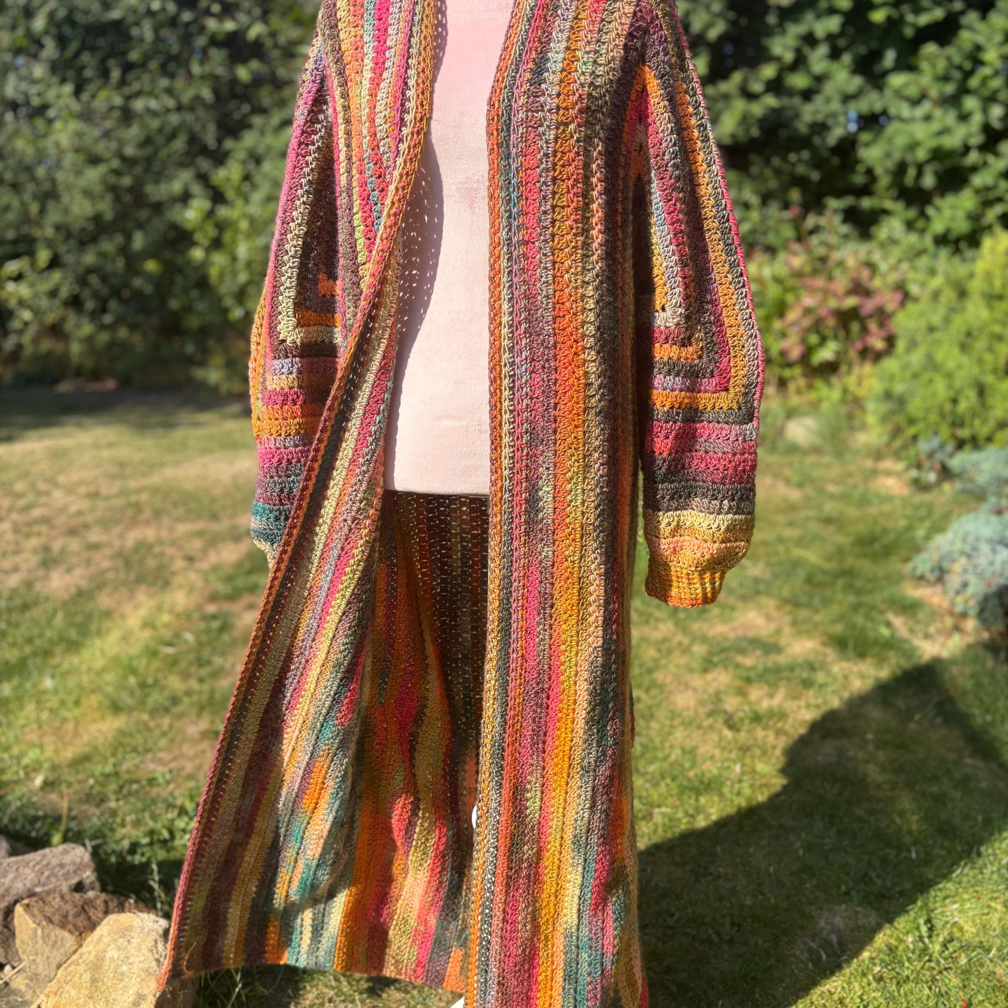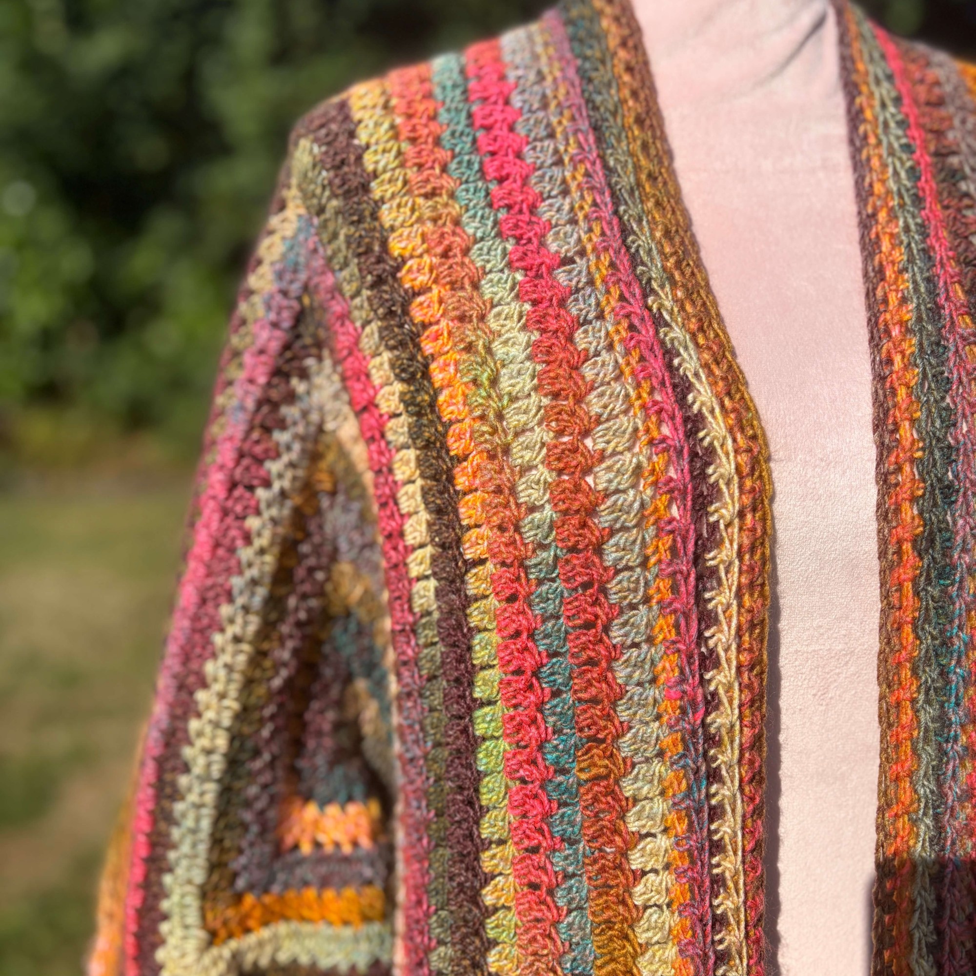 Wrap yourself in warmth with The Winterbrew Cardigan: a cozy, hexagon-based crochet pattern made with Tea Time aran weight yarn. Designed for chilly days and tea-filled afternoons, it features soft vertical stripes from colour-changing yarn, and a thick, squishy texture perfect for winter layering. With multiple sizes and lengths, this cardigan is as comforting and customisable as your favourite brew.