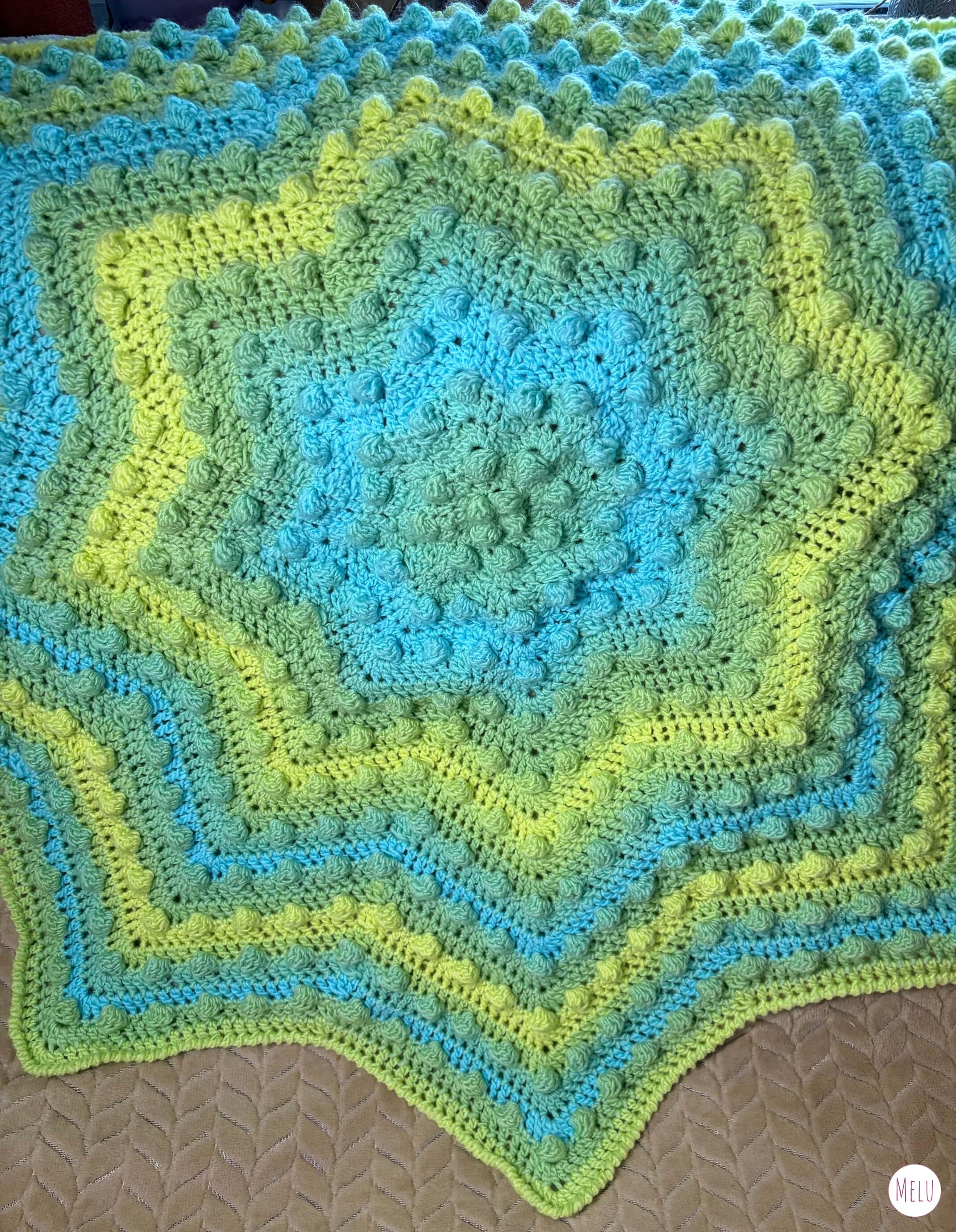The finished blanket is generously sized and works beautifully as a baby blanket, a nursery blanket, or a cosy statement throw for your home. It also makes a thoughtful and special handmade gift, whether for a new baby or for someone who appreciates bold texture and beautiful crochet.