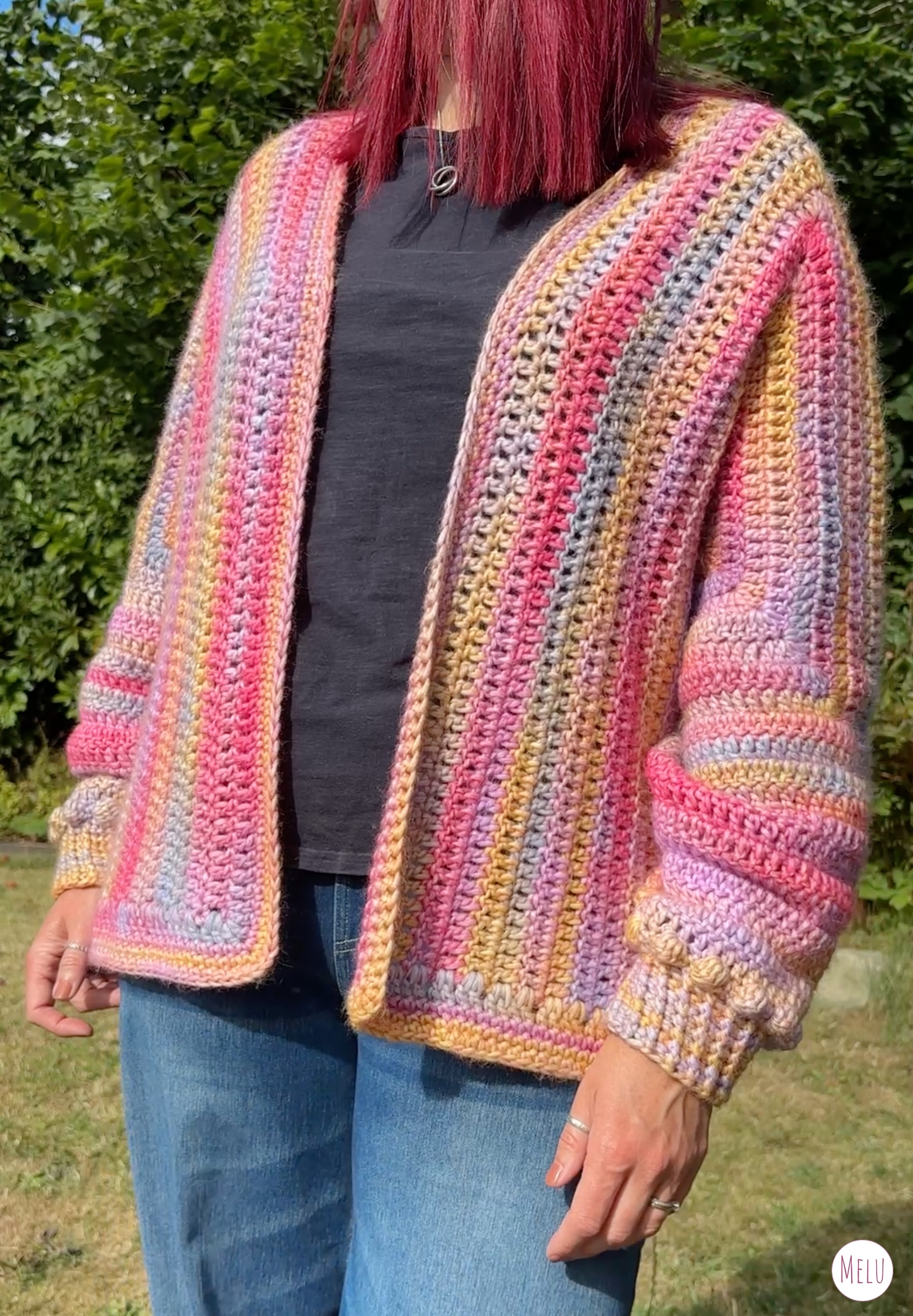 I’m looking for testers for my brand-new Granny Stripes Flexi Hexi Longline Cardi! This design puts a fresh twist on the classic hexi cardi, starting with an elongated hexagon so you can crochet both halves continuously with no extra rows needed!